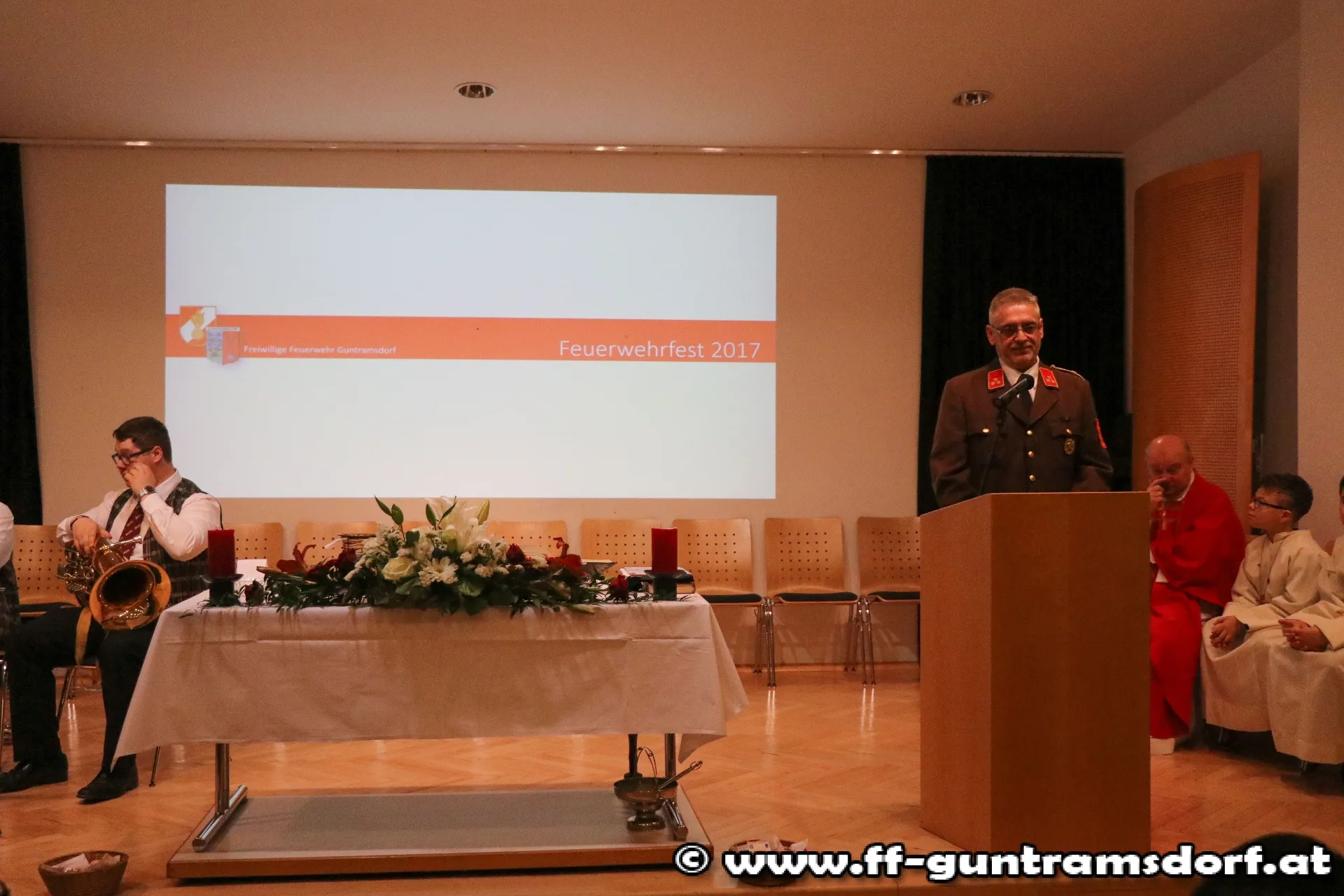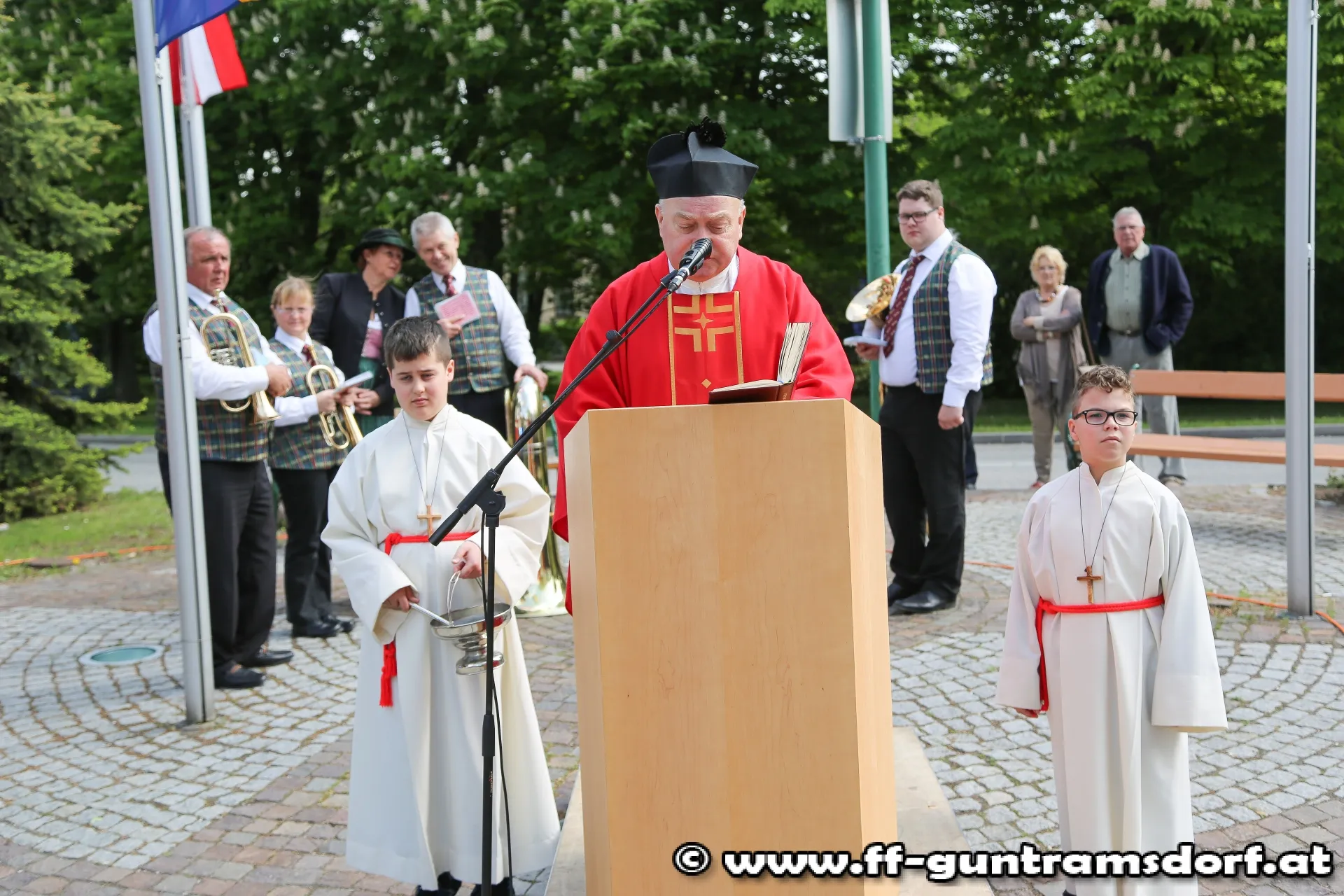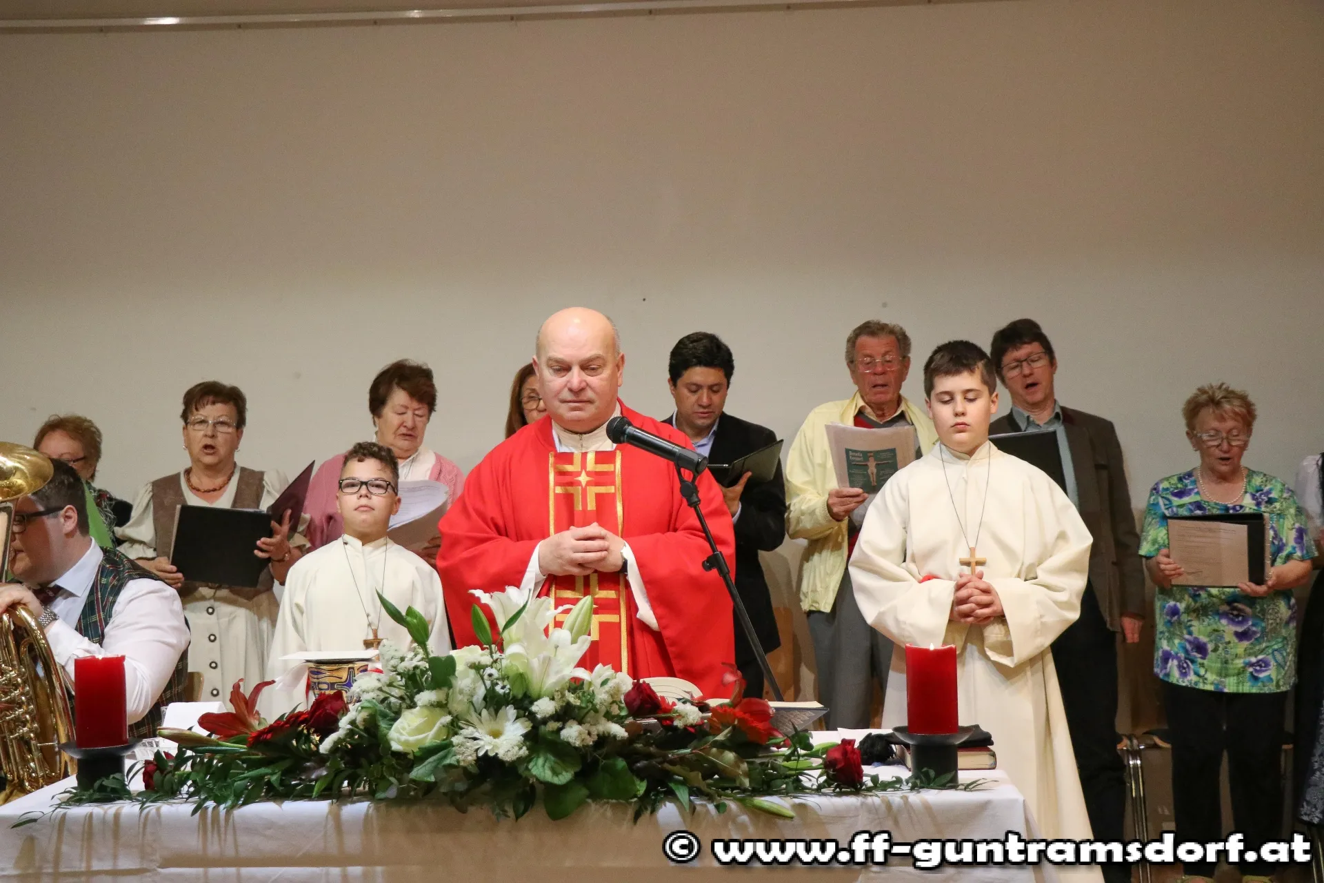 Festlich begann schließlich der Sonntag mit der heiligen Messe im Musikheim, durchgeführt von Ortspfarrer Dr. Josef Wilk, unterstützt durch den Guntramsdorfer Kirchenchor und dem Blasorchester Guntramsdorf.