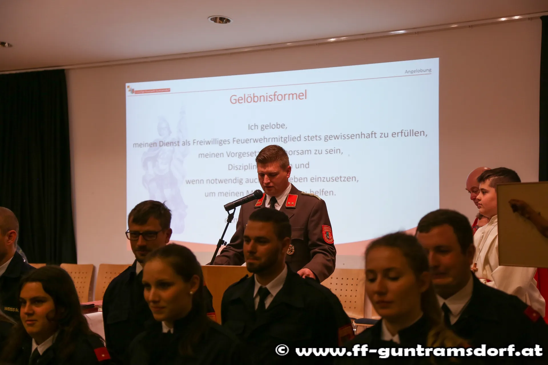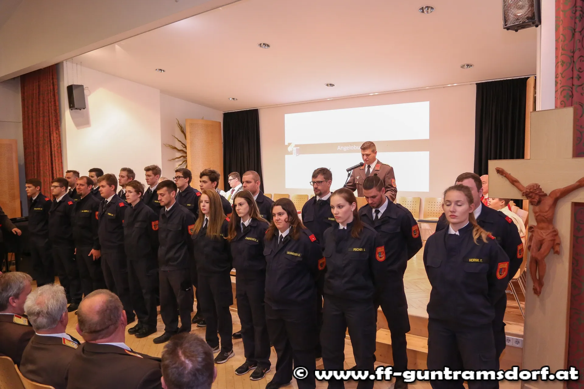 AngelobungNach der Begrüßung der Ehrengäste durch Kommandant HBI Roman Janisch übernahm KDTSTV OBI Michael Schinko zur Angelobung von nicht weniger als 21 Mitgliedern.
