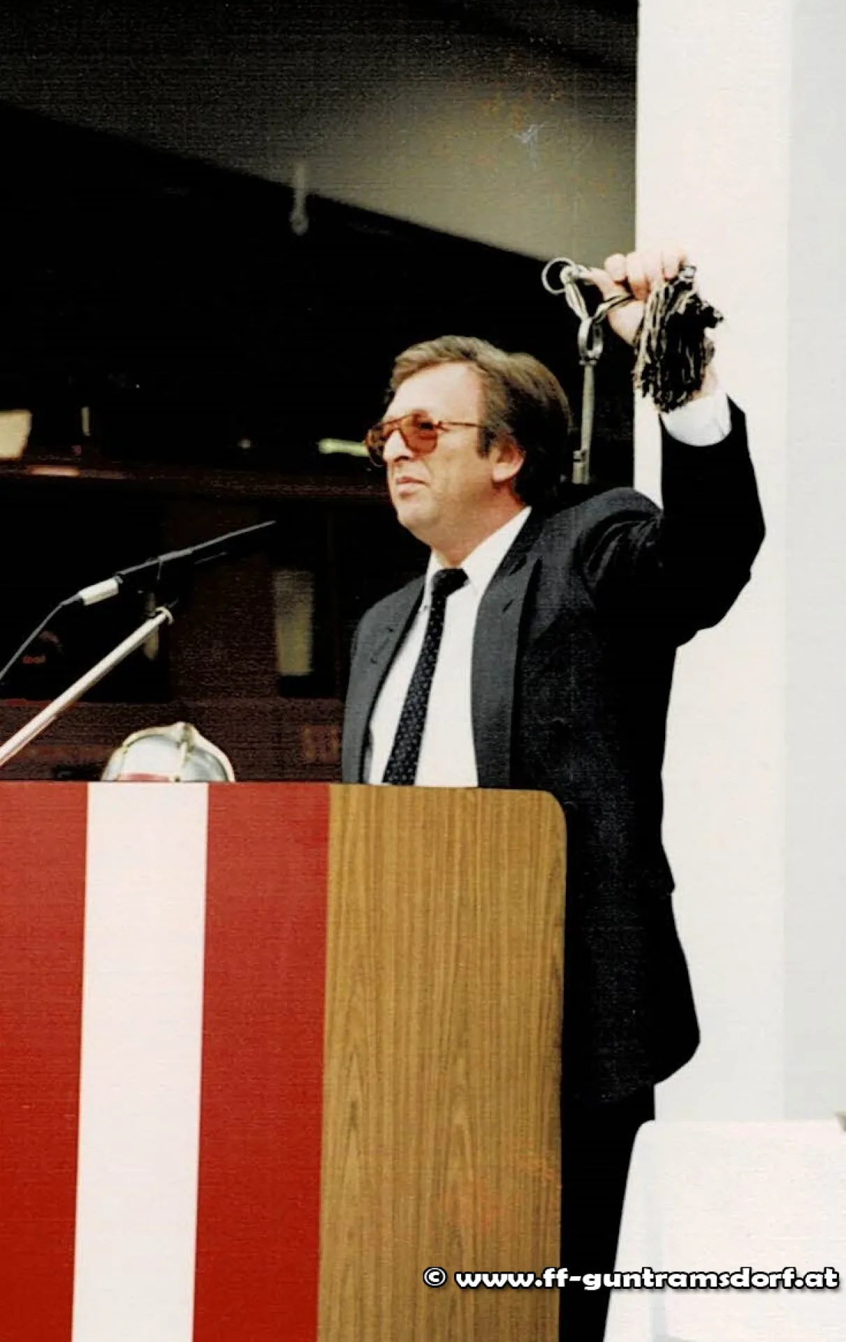 – Bürgermeister Josef Staudinger mit dem (symbolischen) Schlüssel für das Feuerwehrhaus