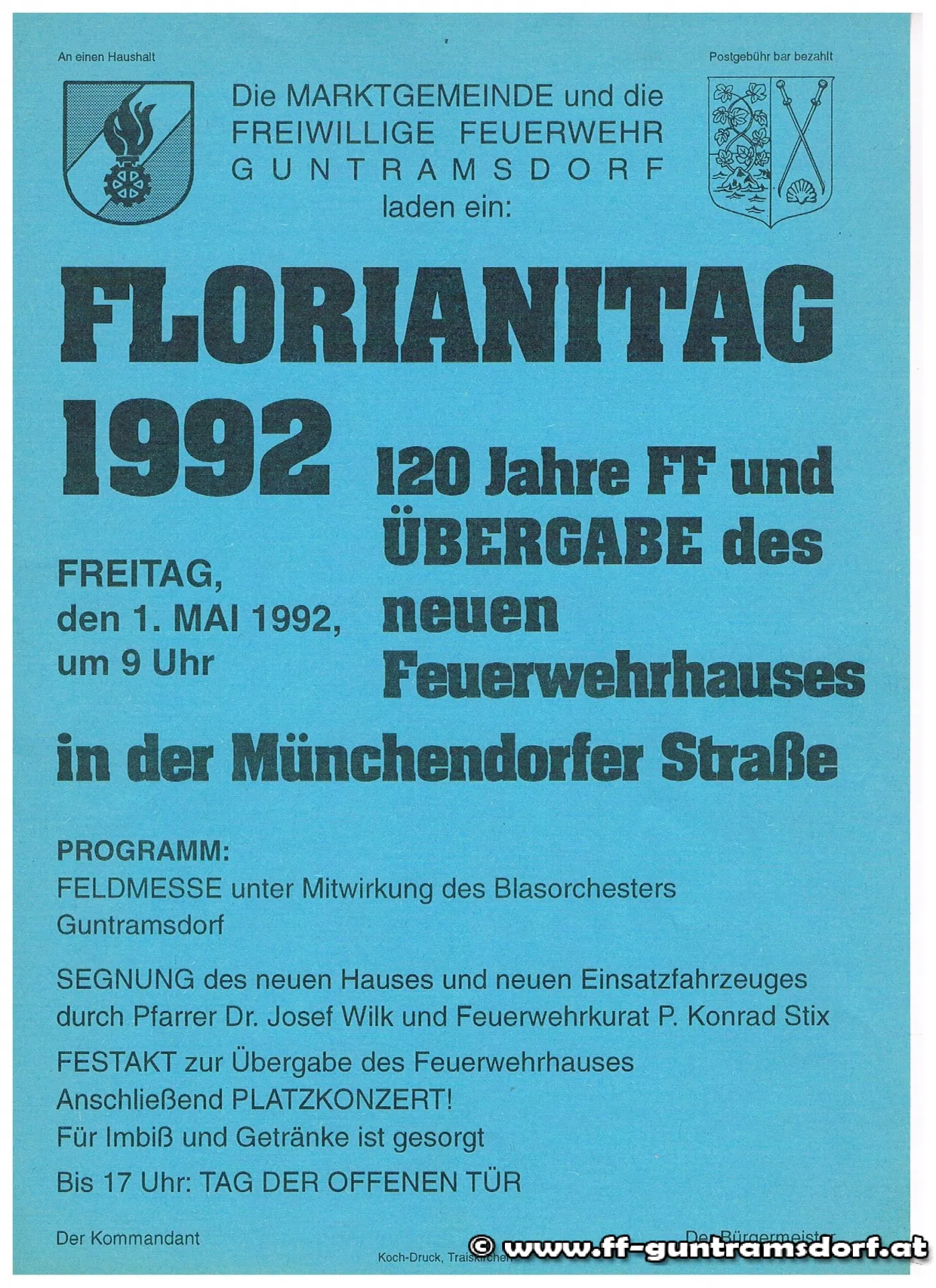 Sensationelle 83 Jahre lang (!) diente das alte Feuerwehrhaus in der Rudolf Heintschel-Straße der Feuerwehr als Unterkunft, bis am Sonntag, dem 8. März 1992 das neue Haus in der Münchendorferstraße bezogen werden konnte. Beim Florianitag am 1. Mai 1992 wurde das neue Feuerwehrhaus im Rahmen eines Festaktes offiziell seiner Bestimmung übergeben.