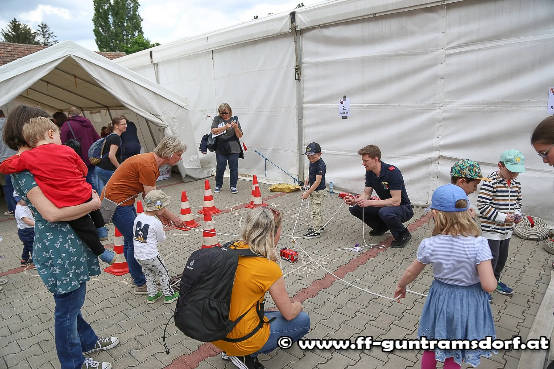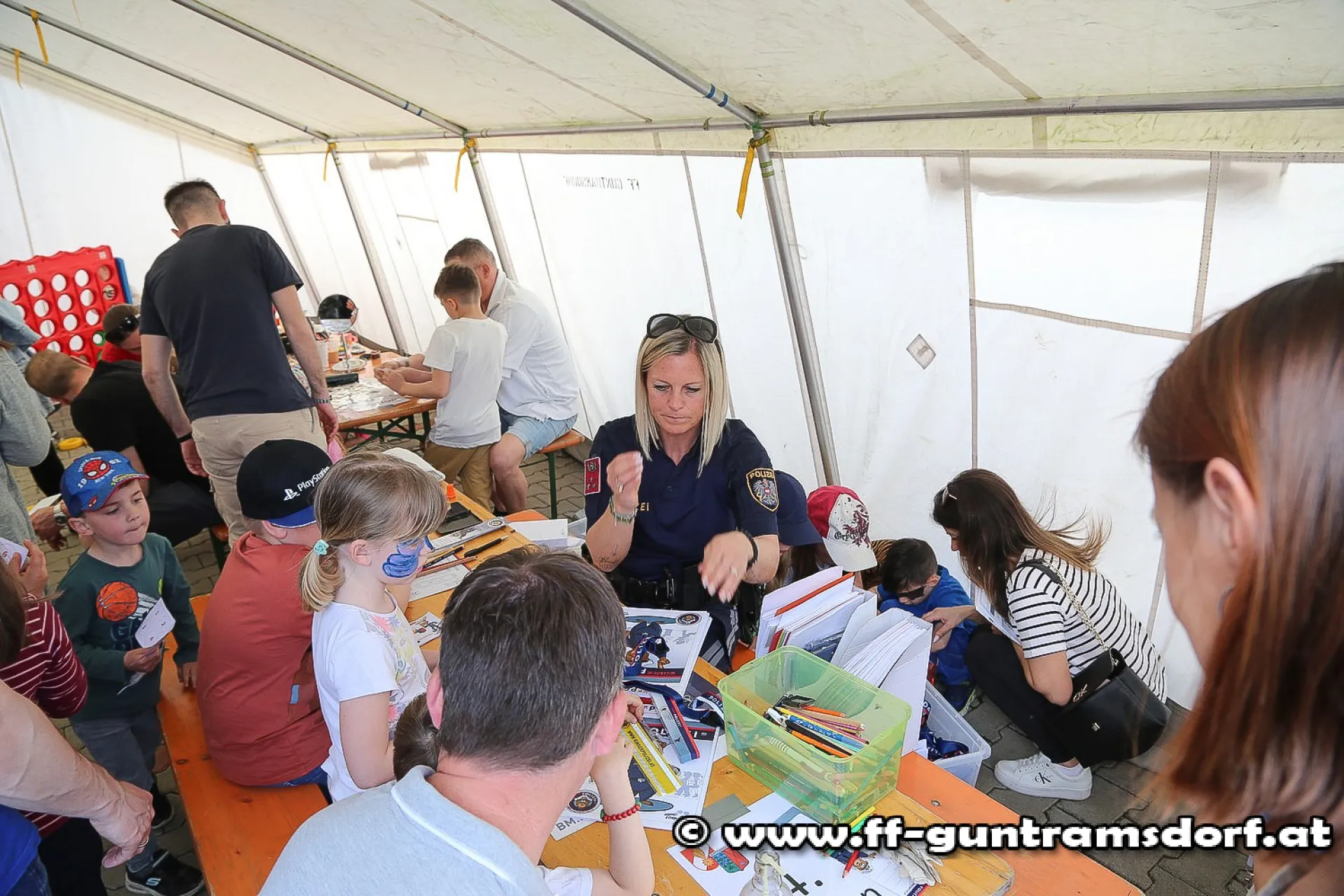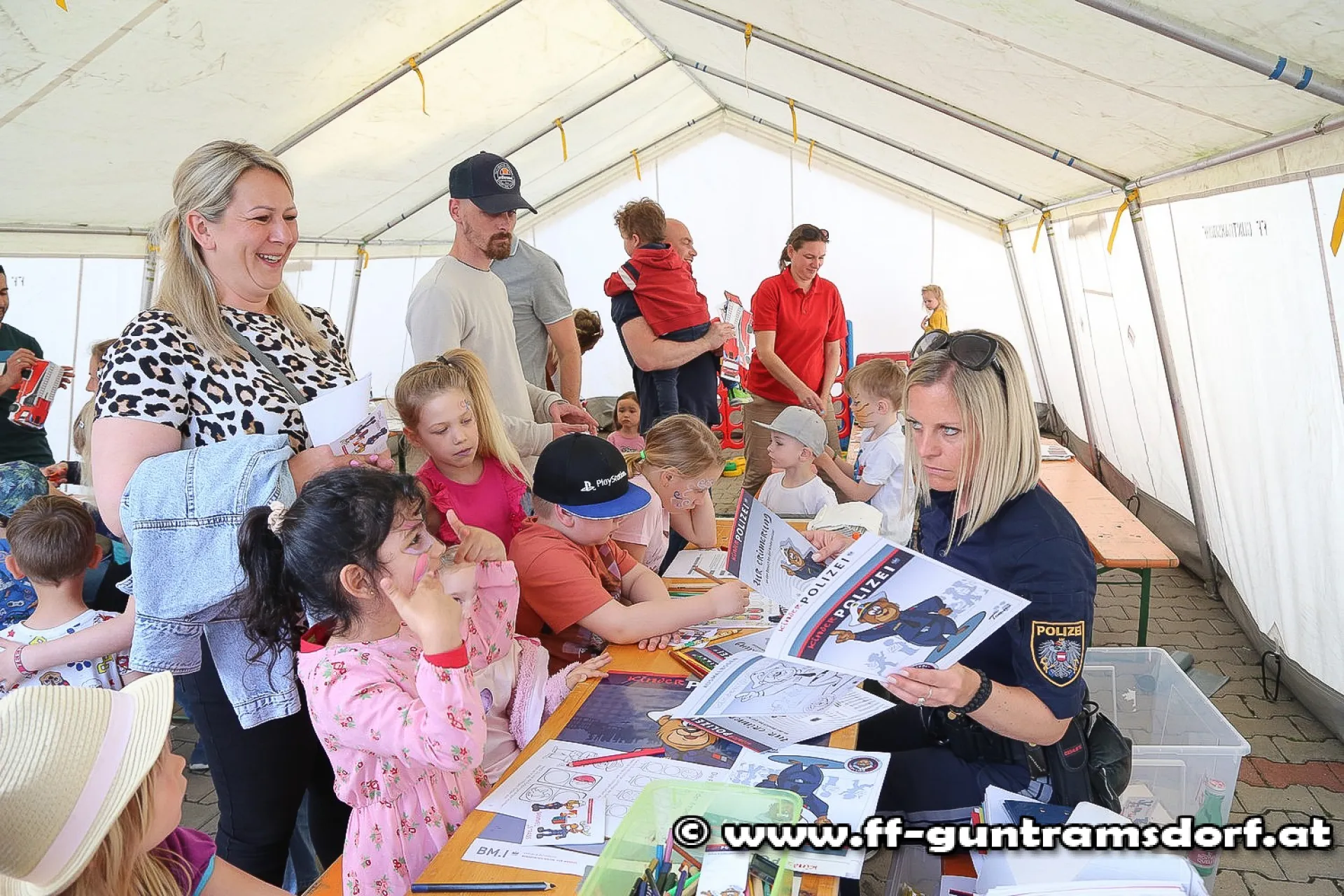 Am Samstagnachmittag fand das Fest zunächst mit einer Kinderveranstaltung seine Fortsetzung: Bei insgesamt acht Stationen stellten die Kinder ihre Kreativität und Geschicklichkeit unter Beweis. Außerdem konnten sie sich ein Polizeiauto und -motorrad aus nächster Nähe ansehen. Highlight war natürlich das HLF (Hilfeleistungsfahrzeug, „Tank2“) der FF Guntramsdorf.