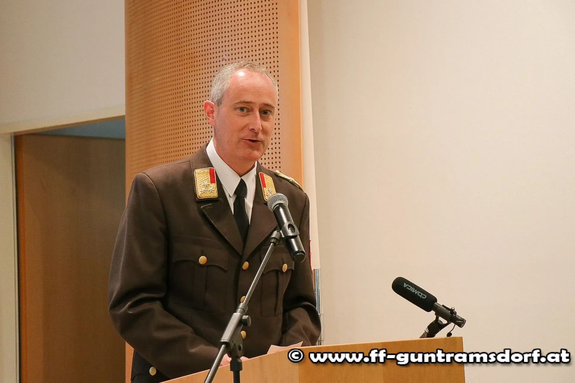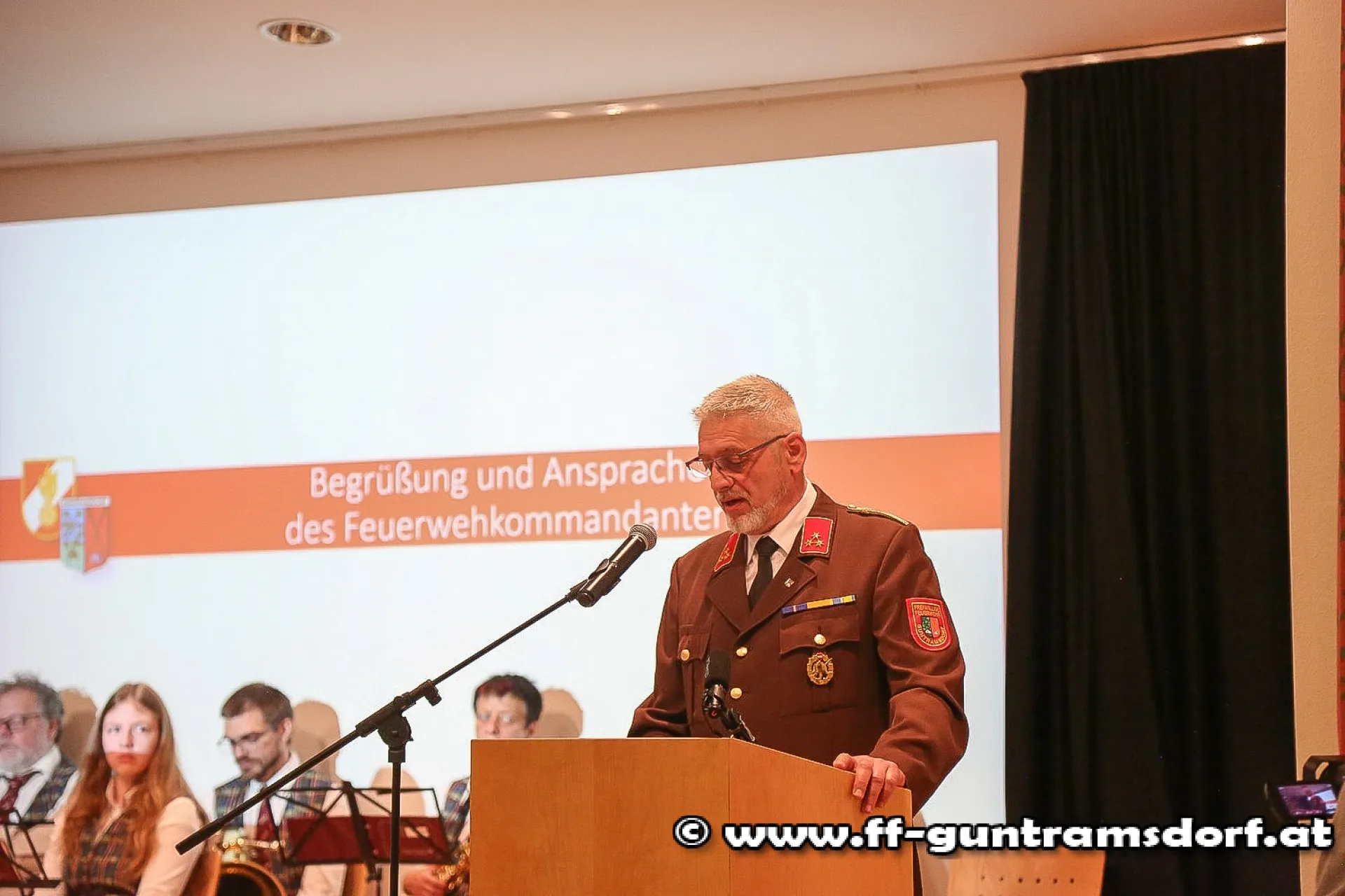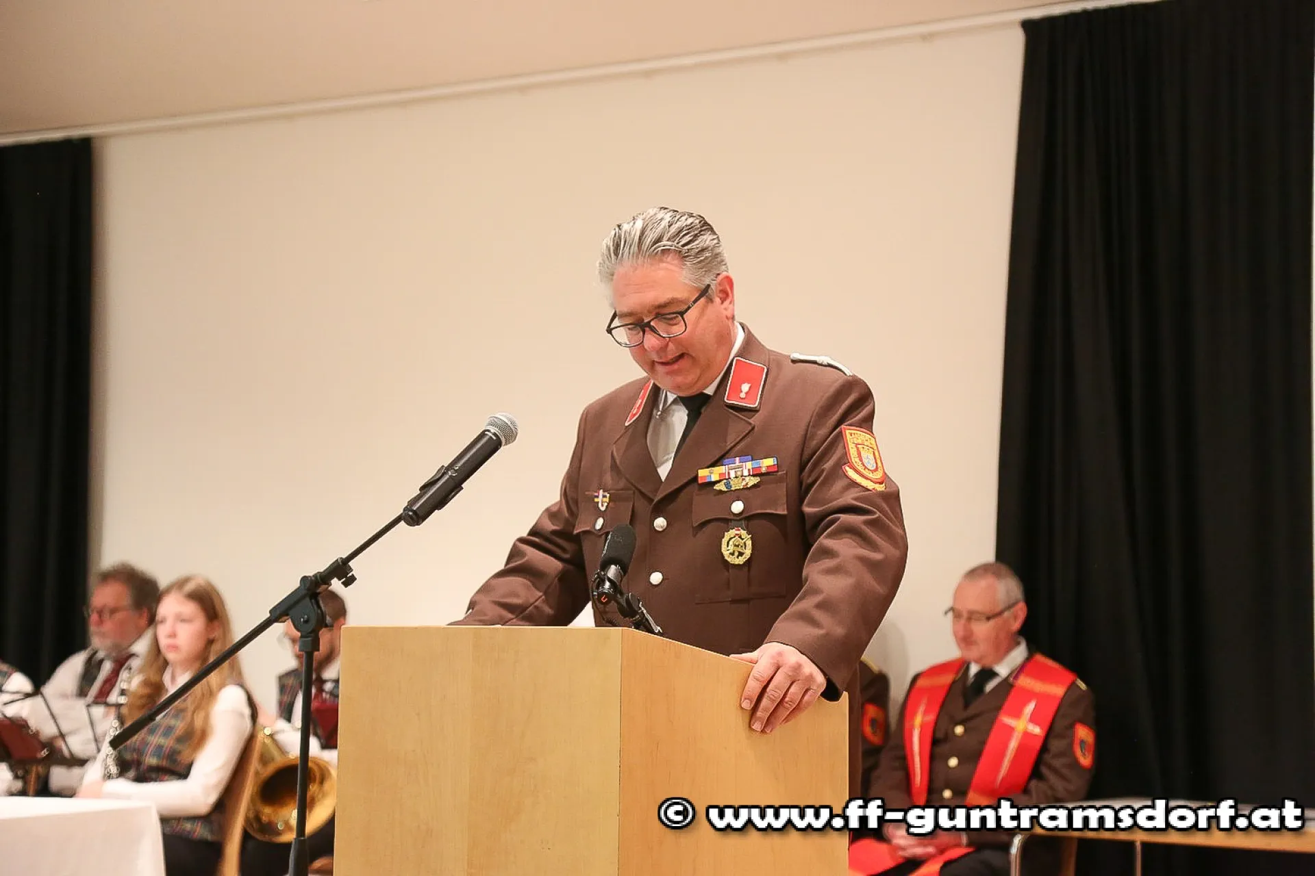 Nach der Messe hielt Kommandant Roman Janisch eine kurze Rede, in der er u.a. den Mitgliedern für ihre permanente Einsatzbereitschaft – insbesondere in den vergangenen Pandemiejahren – dankte und dabei die rund 14.000(!) Einsätze, welche die FF Guntramsdorf seit 1872 geleistet hatte, nicht unerwähnt ließ.