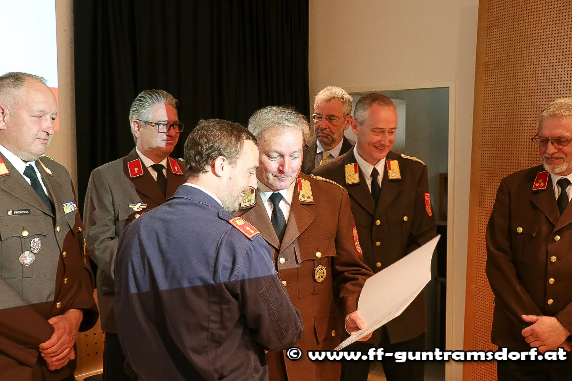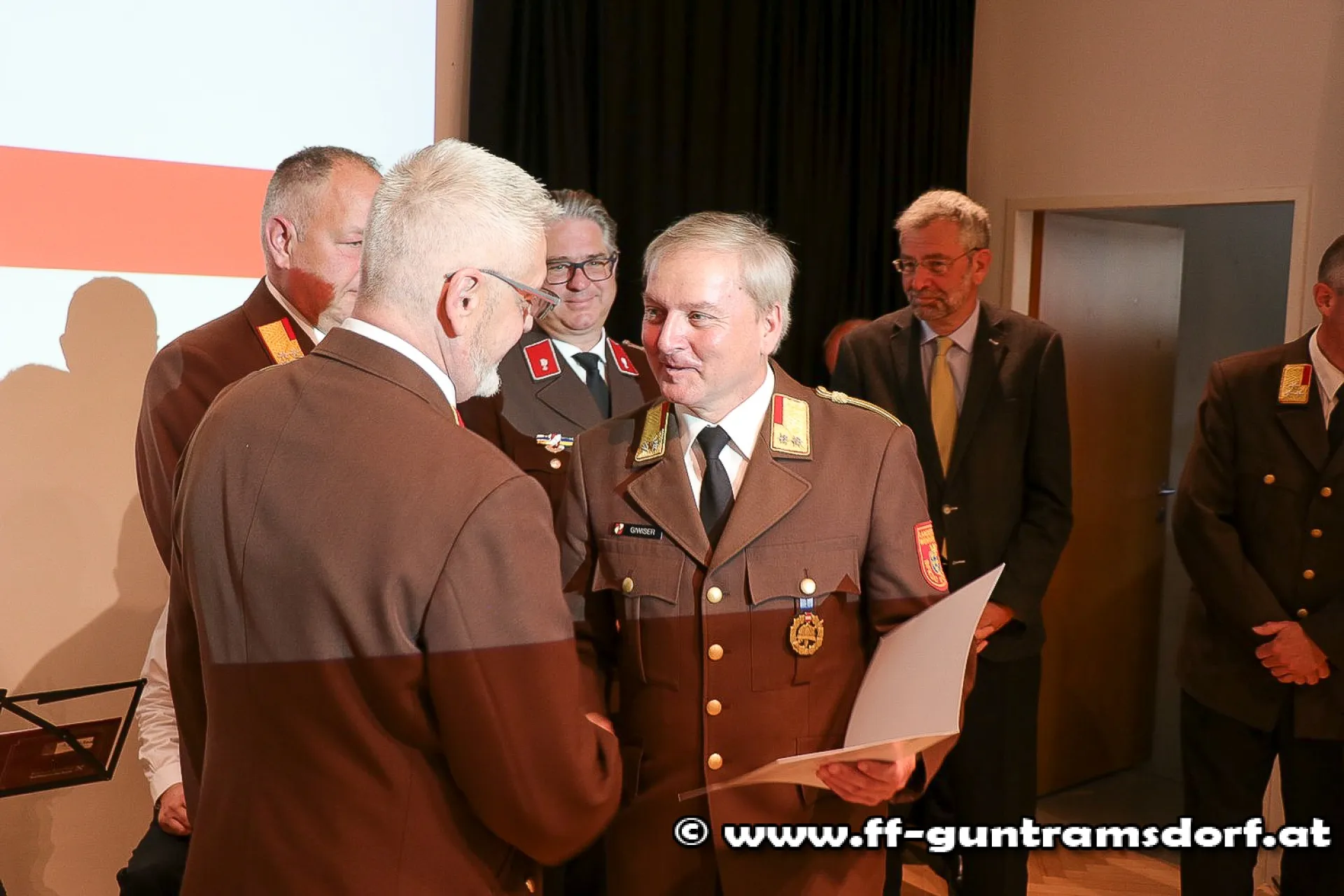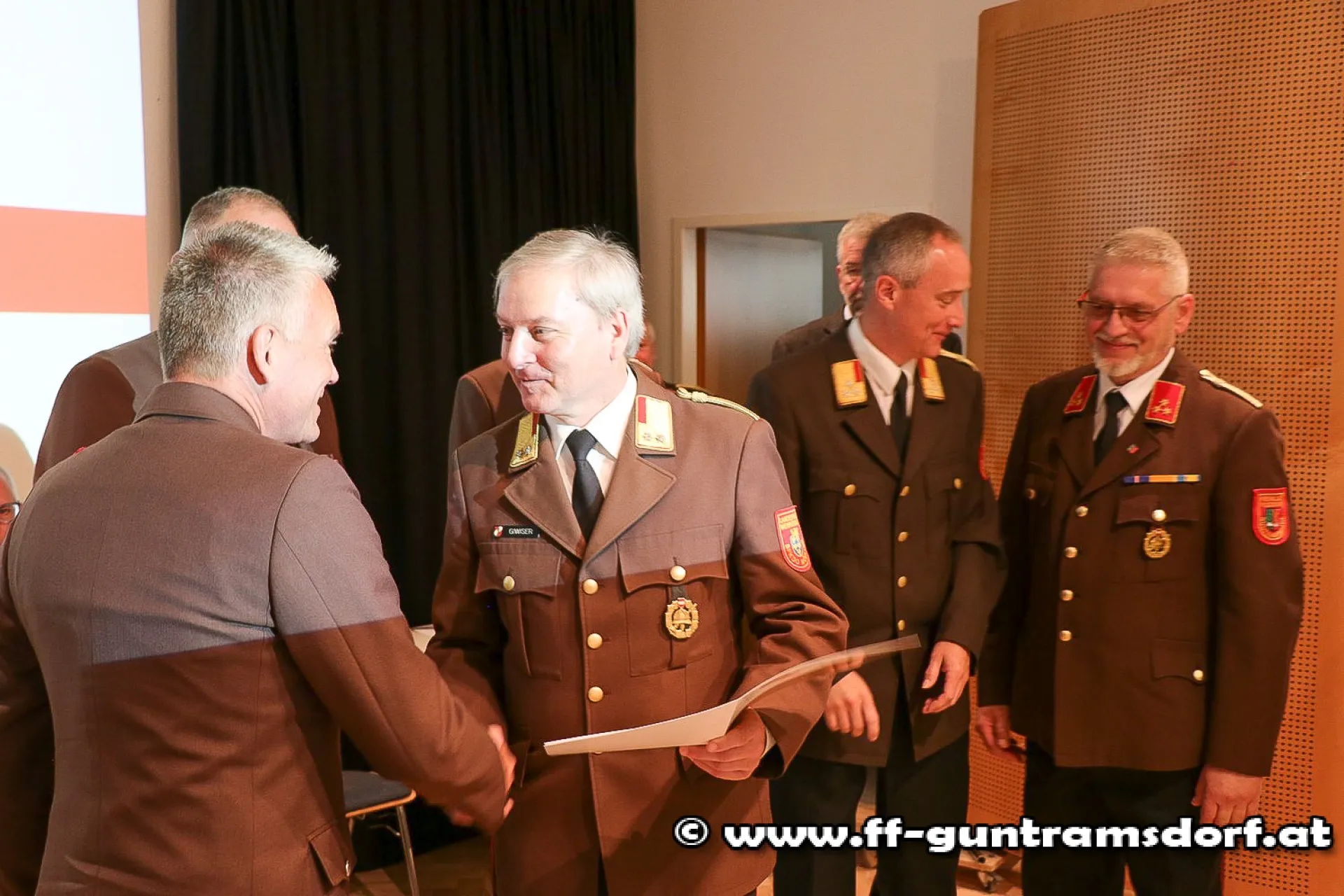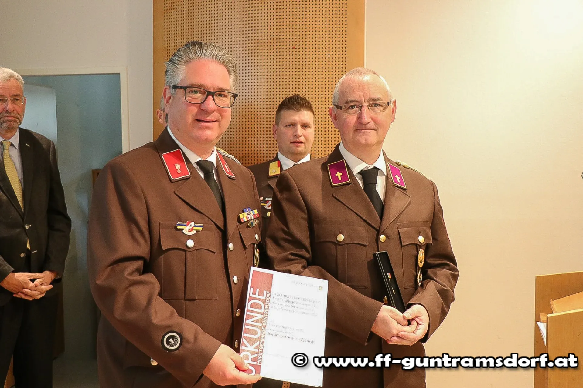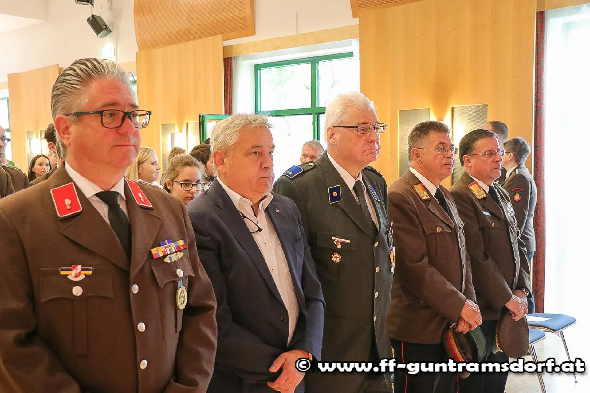 Auch einige Ehrungen bzw. Auszeichnungen, welche von der FF Guntramsdorf traditionellerweise sehr sorgsam initiiert werden, standen auf der Tagesordnung. So erhielten das Verdienstzeichen des NÖ Landesfeuerwehrverbandes Klasse 3 in Bronze Günter Drauch, Stefan Galda, Alexander Hornik sowie Martin Stundner und Klasse 2 in Silber Roman Janisch für ihre Verdienste für die Feuerwehr Guntramsdorf.