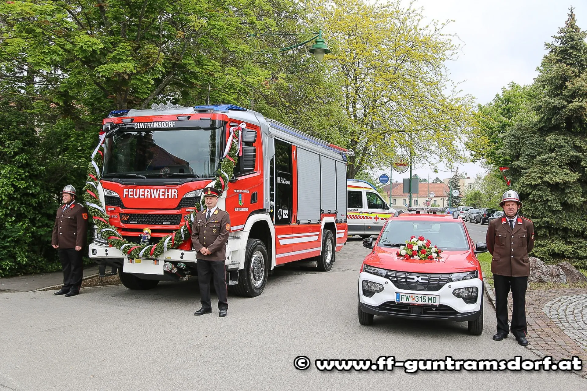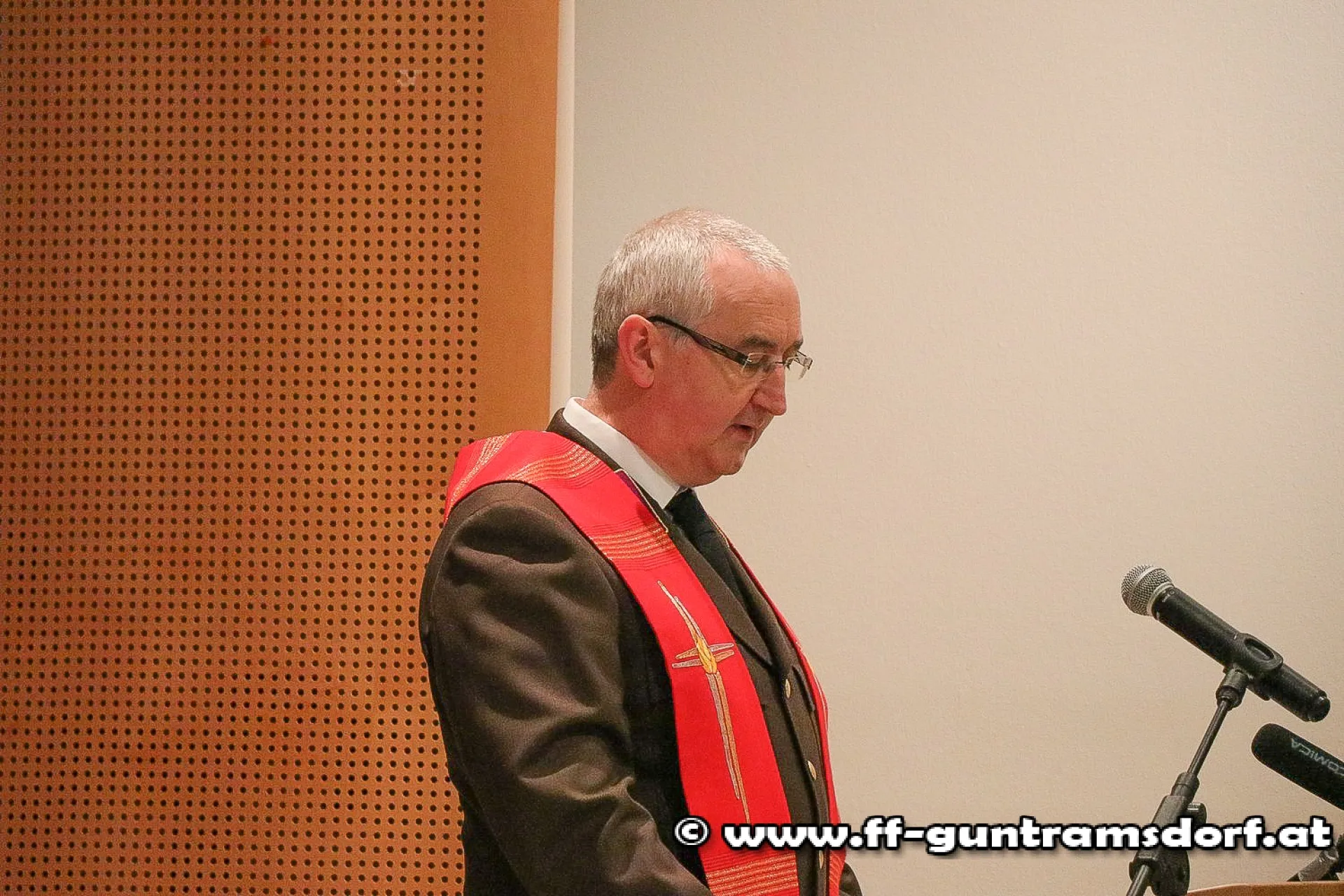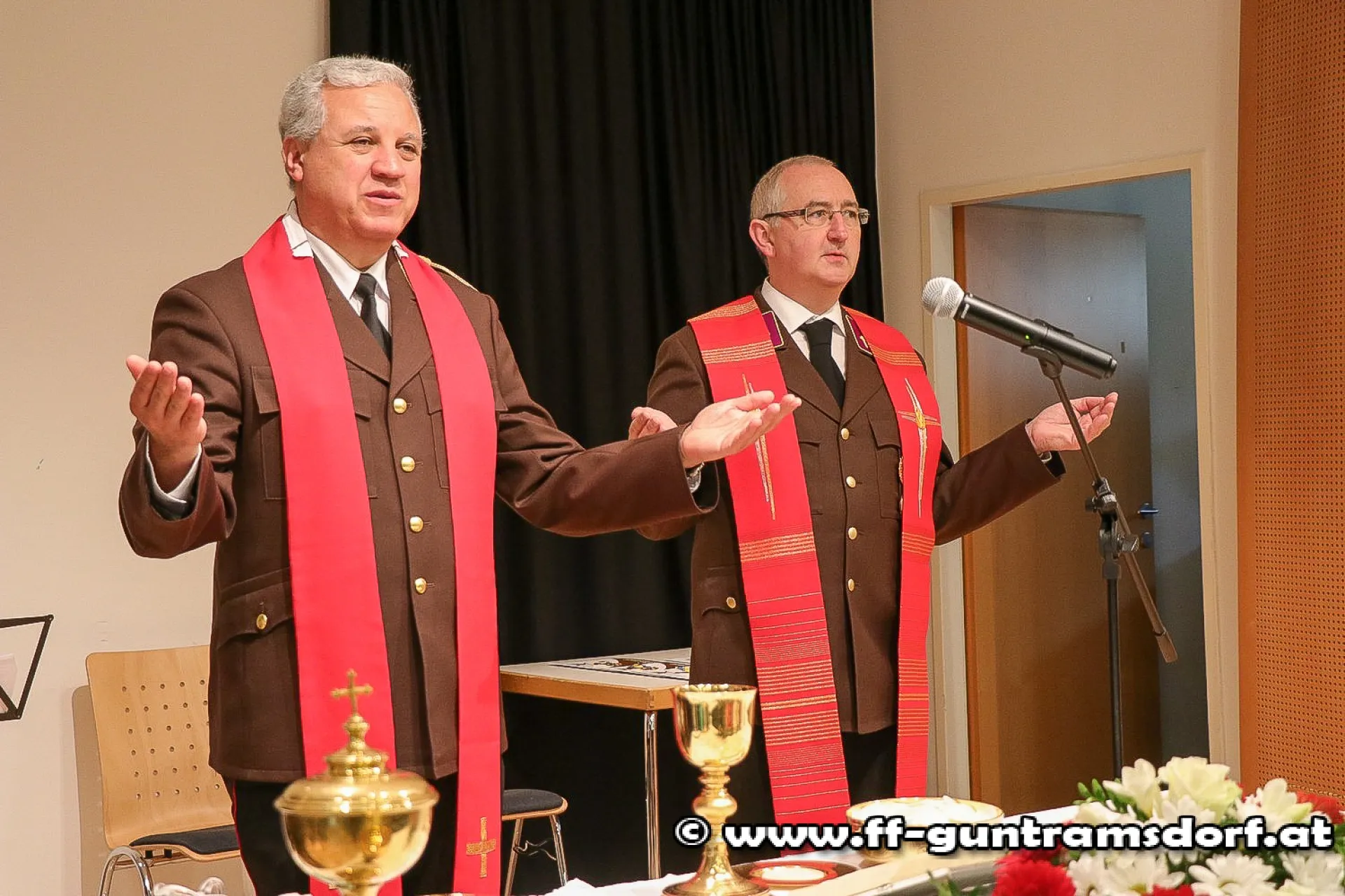 Der Sonntag begann zunächst um 09.00 Uhr mit einem Festgottesdienst unter der Leitung von Pfarrer Hudson Lima Duarte, seit geraumer Zeit auch Mitglied der Feuerwehr. Konzelebrant war Feuerwehrkurat Friedrich Vystrcil (bereits seit Jahrzehnten Mitglied der FF Guntramsdorf), der nach seiner Priesterweihe nach Würzburg „ausgewandert“ war, aber sich das denkwürdige Jubiläum „seiner“ Feuerwehr nicht entgehen lassen wollte.
