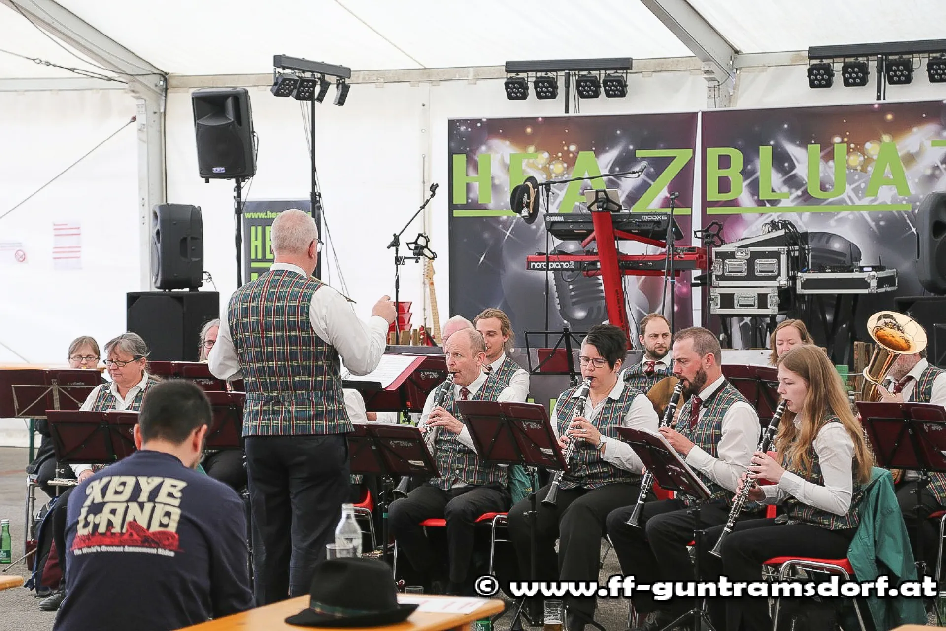 Den Frühschoppen eröffnete das Blasorchester Guntramsdorf (BOG), das zuvor auch schon den Gottesdienst musikalisch begleitet hatte, in bewährter Form mit bekannten Melodien von Walzer über Polka bis hin zu Big Band-Sound. Später setzte „Heazbluat“ mit Schlagern, Rock’n Roll u.ä. fort.