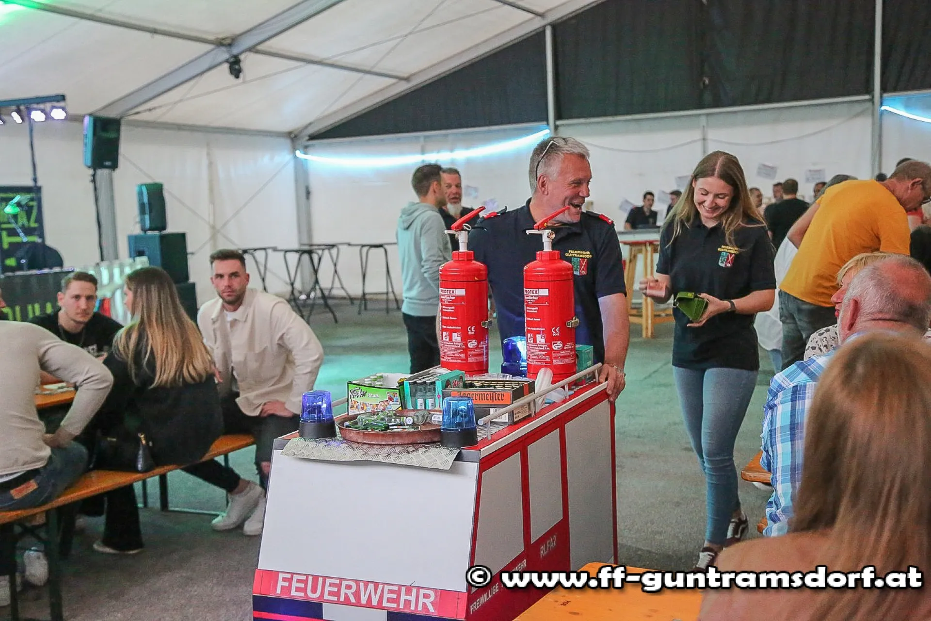 Nun war es aber so weit: Nach wochenlanger Vorbereitung startete die Veranstaltung am Freitag mit der „Blaulichtparty“! Zahlreiche – vorwiegend „jüngere“ – Besucher stürmten das vor dem Feuerwehrhaus aufgebaute Zelt und feierten bei der von DJ Stefan (an dieser Stelle herzlichen Dank für deinen grandiosen Einsatz) handverlesenen Musik bis in die frühen Morgenstunden.