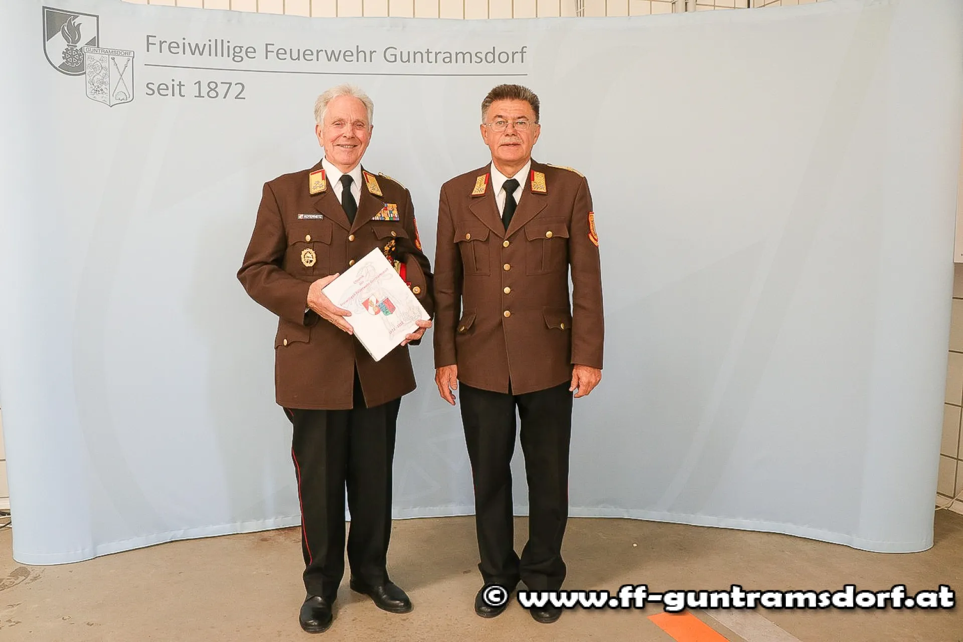 Dann stellte Ehrenbrandrat Robert Moser die erste Chronik über die FF Guntramsdorf (1872 – 2022) vor. In mehrjähriger akribischer Arbeit hatte er als Verfasser derselben Daten und Fakten gesammelt und zu einem 400 Seiten umfassenden Buch zusammengestellt.