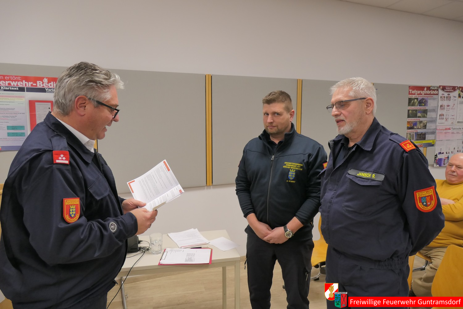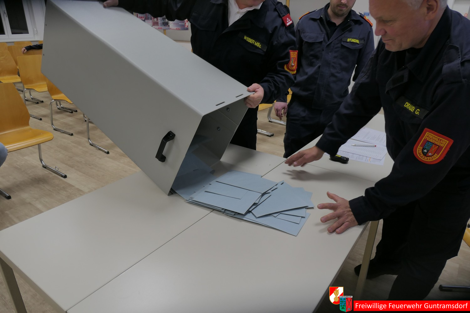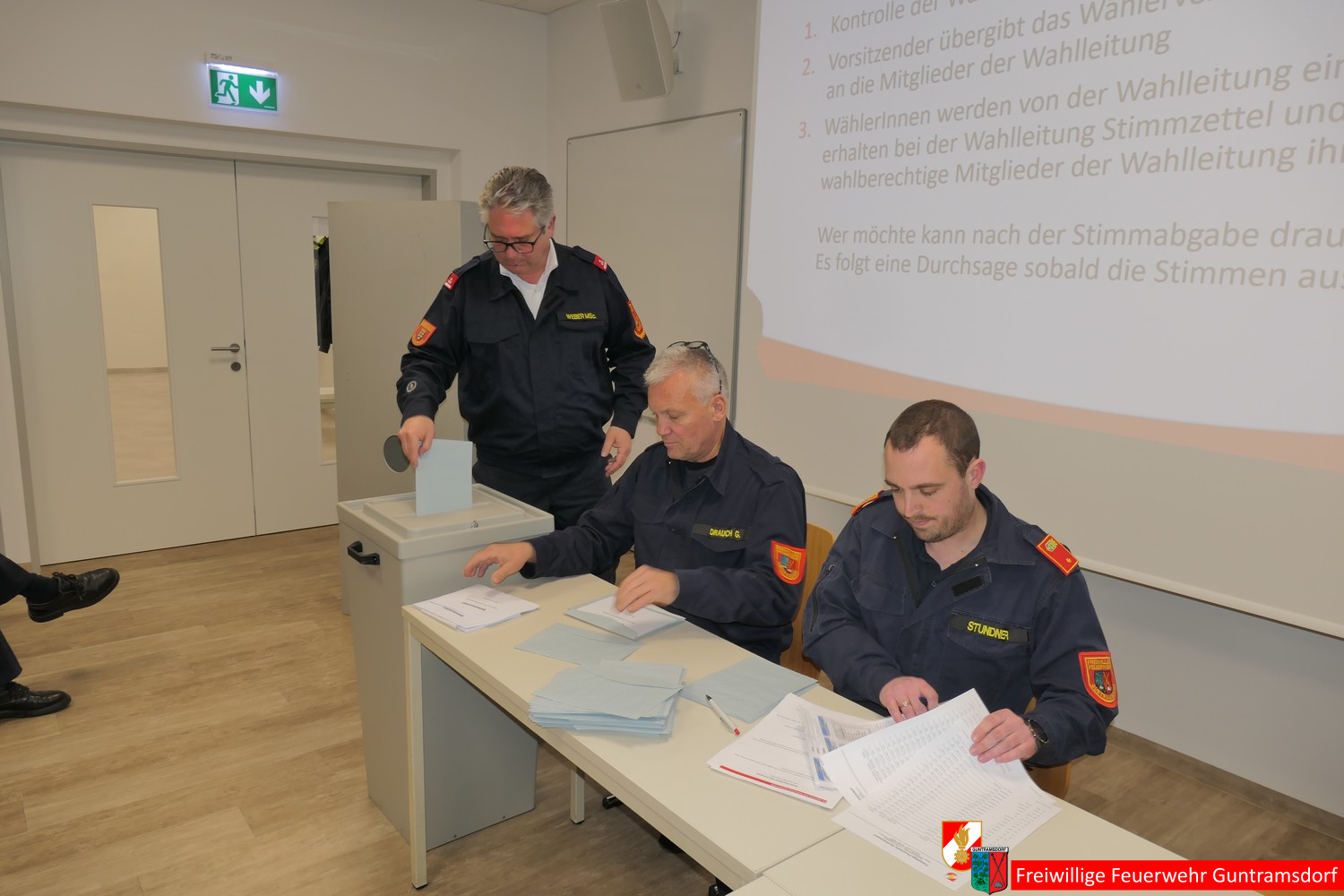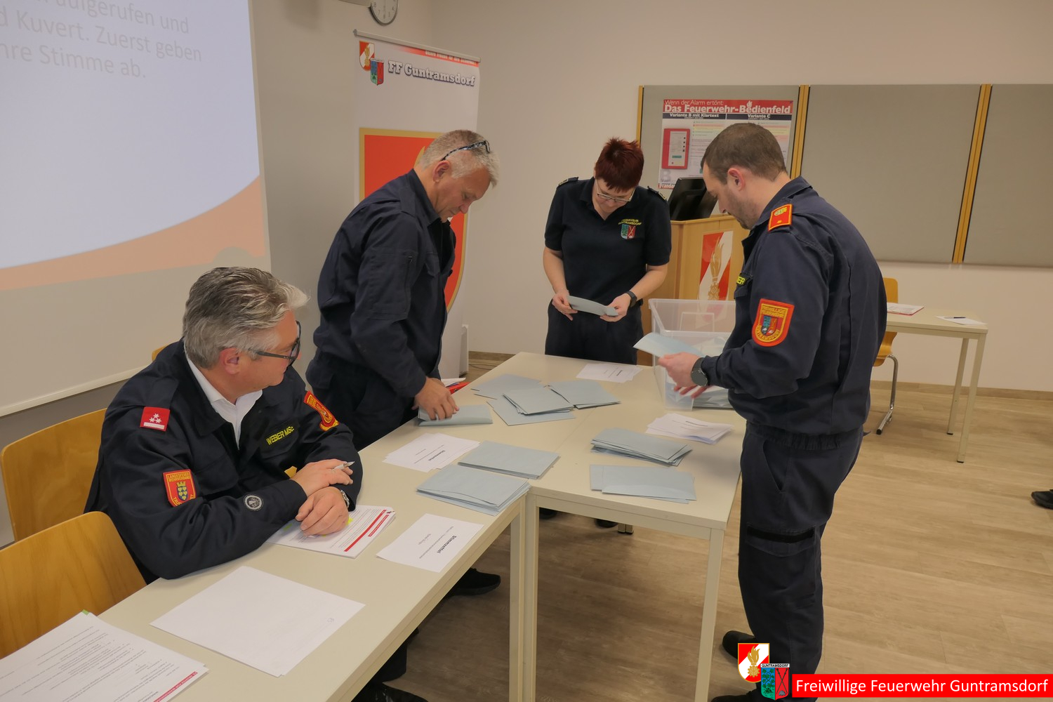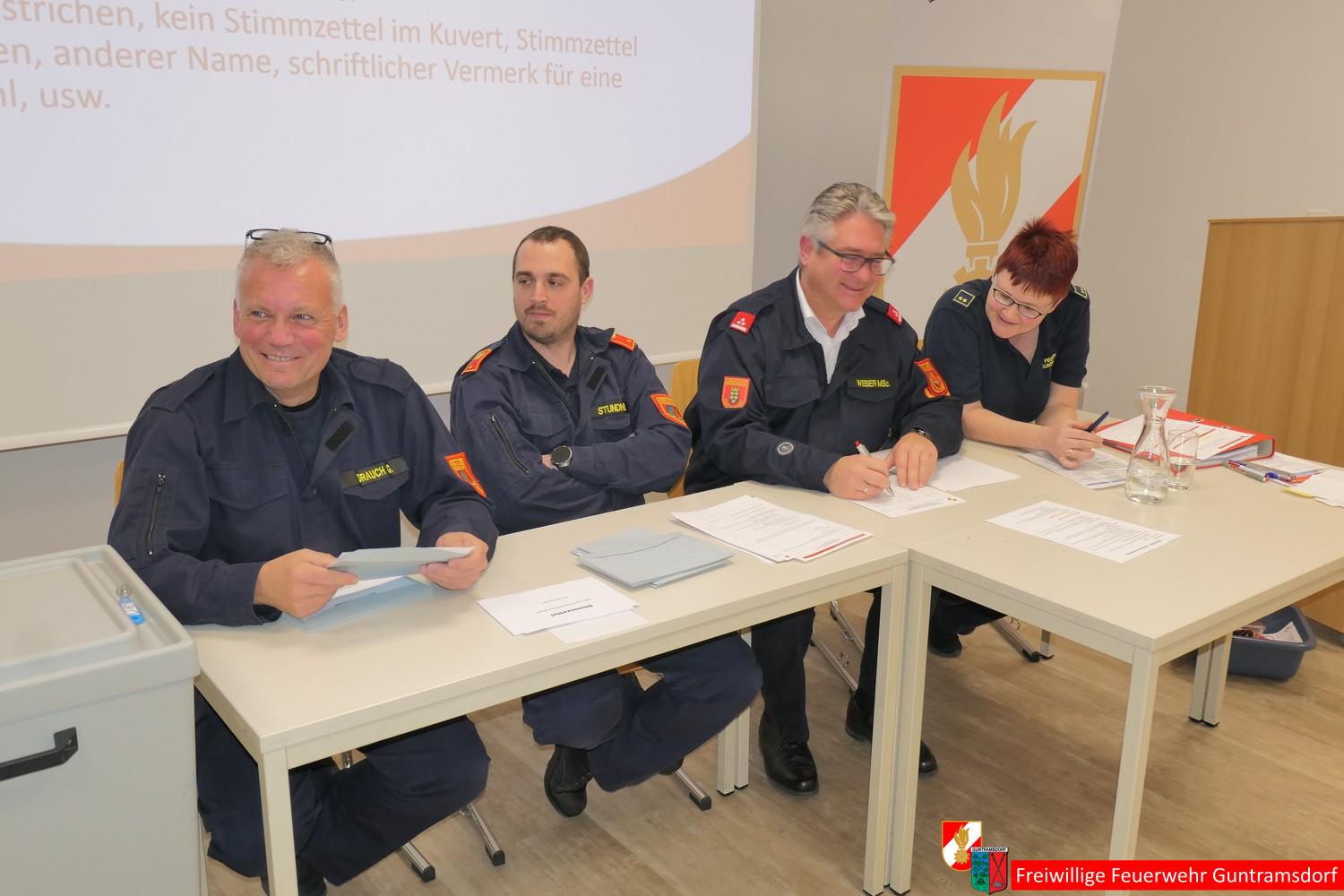 Danach rief Bürgermeister und damit Wahlleiter Weber gemeinsam mit OV Schiffner und zwei Wahlhelfern (BI Martin Stundner und LM Günter Drauch) zur Kommandantenwahl auf, für die es im Rahmen einer etwas geänderten Wahlordnung einen Wahlvorschlag gab, nämlich wie bisher Roman Janisch als Kommandant und Michael Schinko als dessen Stellvertreter.