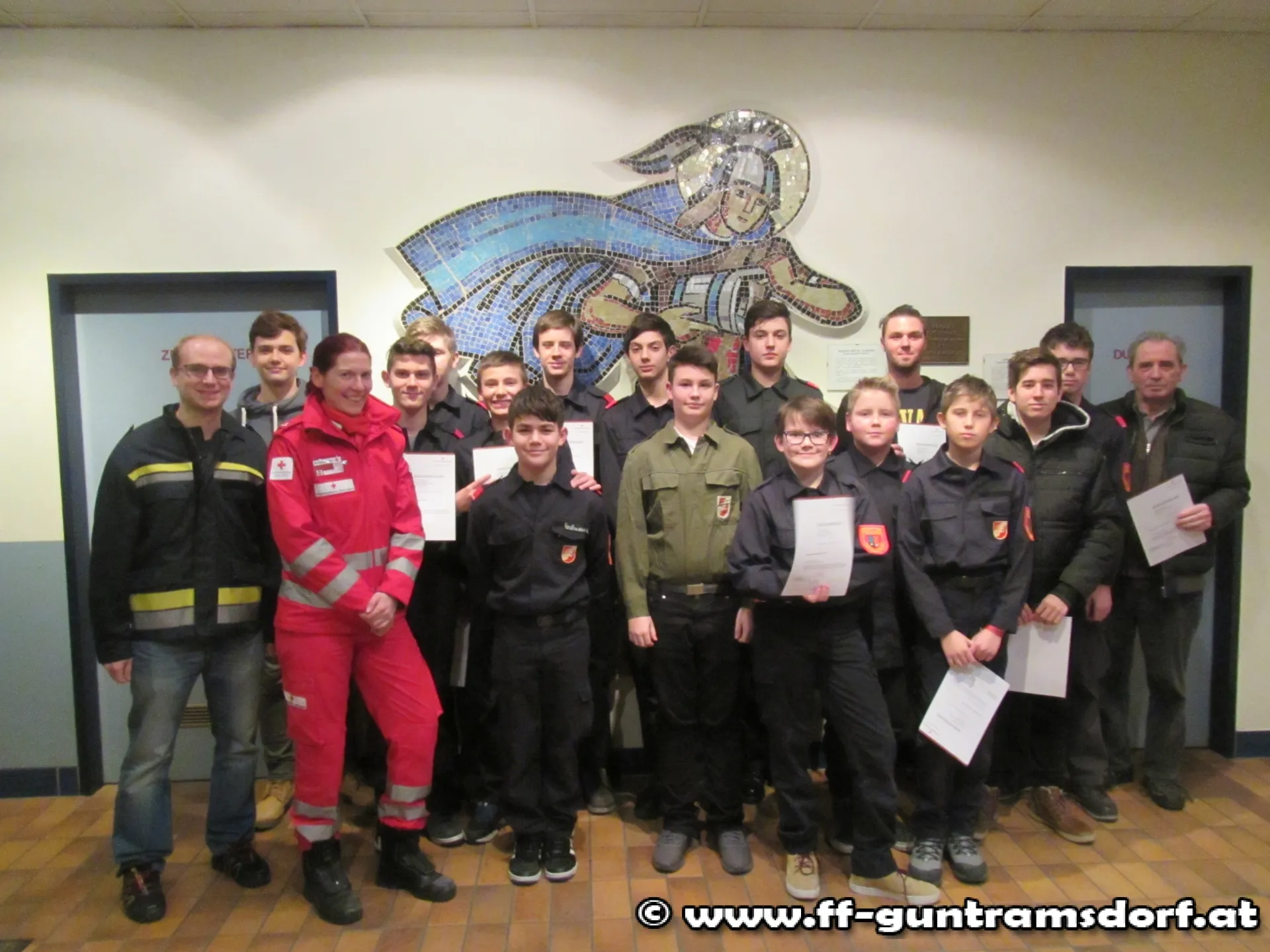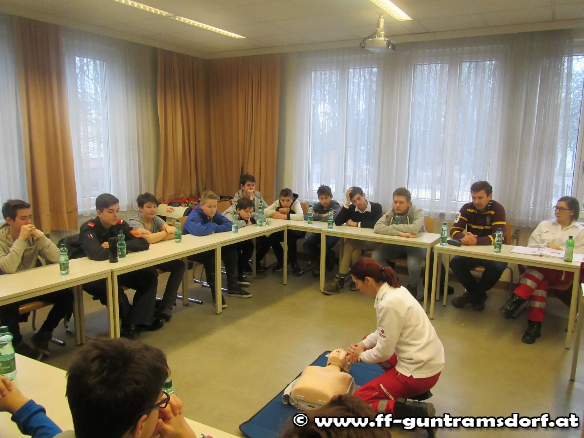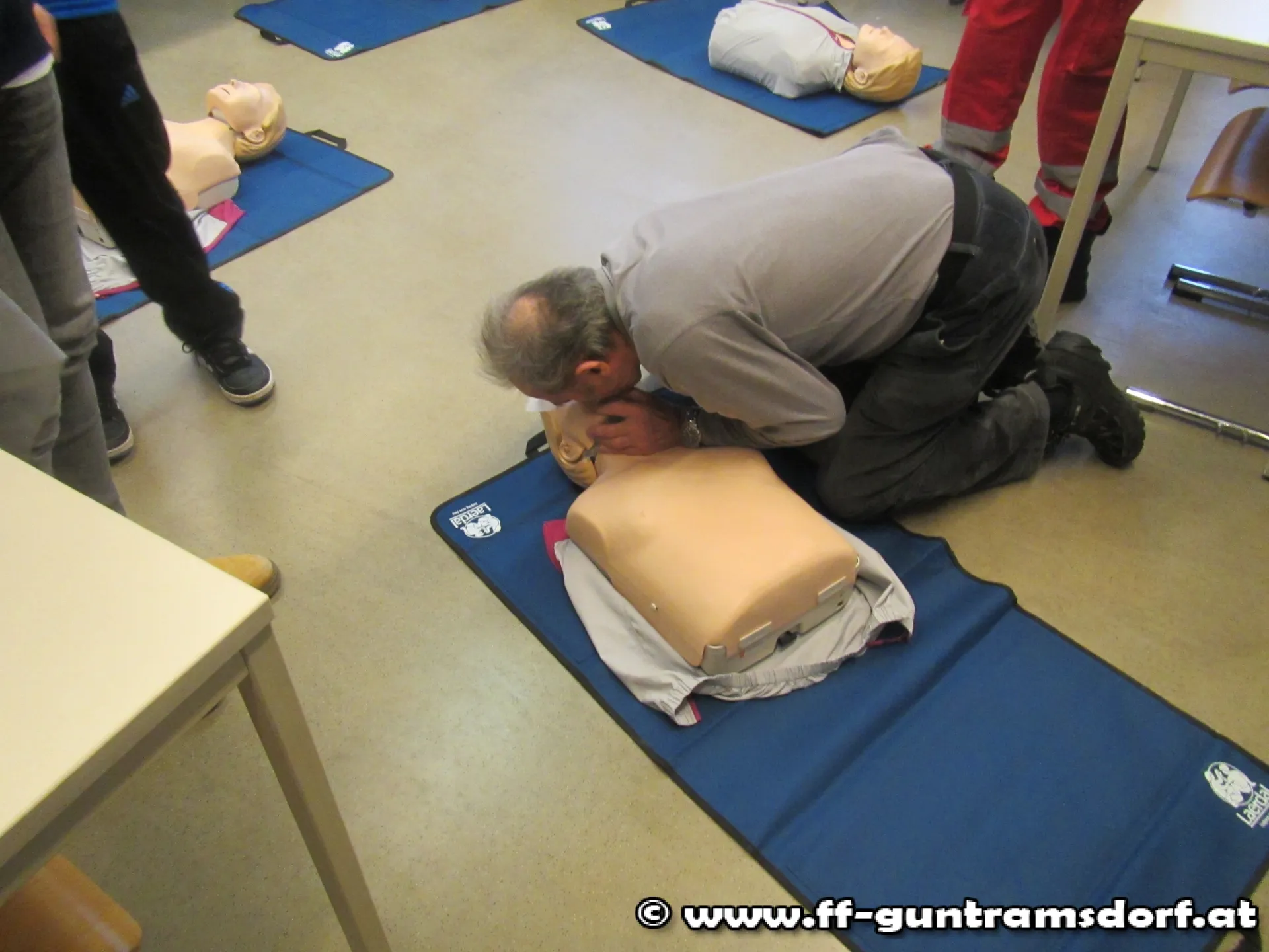 Alle 2 Jahre findet in der Feuerwehr Guntramsdorf ein 16 stündiger Erste Hilfe Kurs für die Jugend sowie Aktivmannschaft statt. An insgesamt 3 Tagen wurden die Ersthelfermaßnahmen zu den häufigsten/wichtigsten Notfällen näher gebracht. Da die FF Guntramsdorf seit 2015 im Kommandofahrzeug auch einen Defibrillator mitführt, wurde auch der Umgang mit diesem, mit einem Übungsgerät, praktisch geübt.