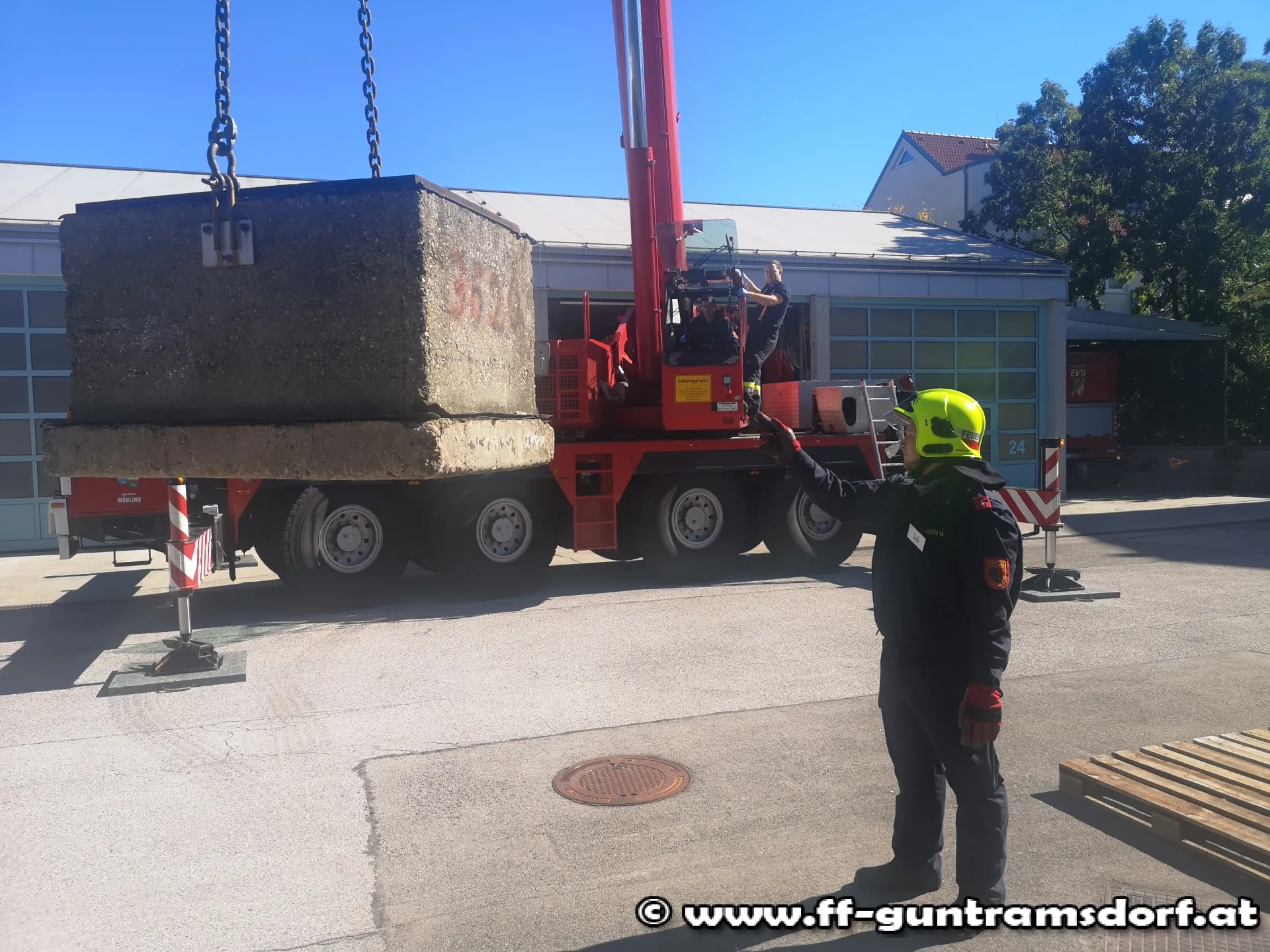 In den Unterrichtseinheiten am Gelände der FF Mödling wurde sowohl theoretisch, als auch praktisch der Umgang mit Fahrzeug- und Ladekranen erläutert.