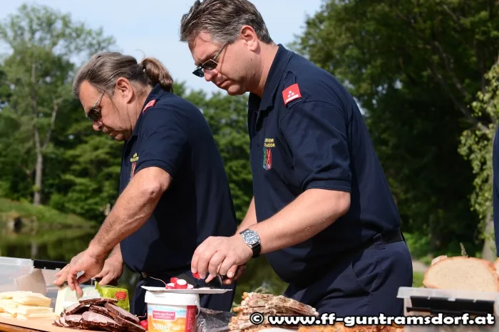 Nachdem der „Pflichtteil“ erledigt war ging es zum gemeinsamen Frühstück. Ein paar Kameraden hatten in einem idyllischen Waldstück an einem kleinen Teich Tische und Bänke aufgestellt und ein Frühstück vorbereitet – an dieser Stelle ein großes Dankeschön!