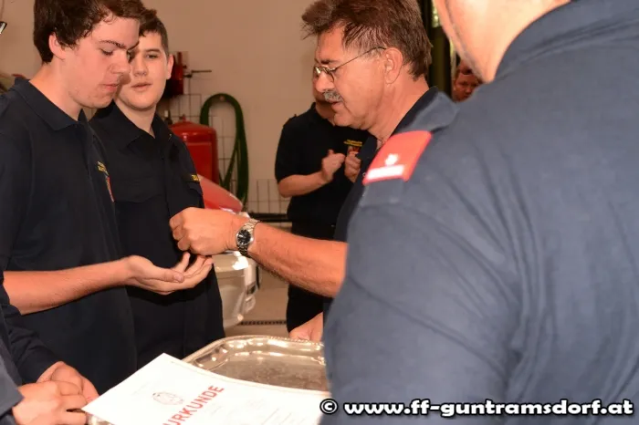 Im Feuerwehrhaus wurden noch von Feuerwehrkommandant Robert Moser und „Bewerbsdirektor“ Walter Schmuck jun. die Abzeichen übergeben und der Bewerbsabschluss durchgeführt.