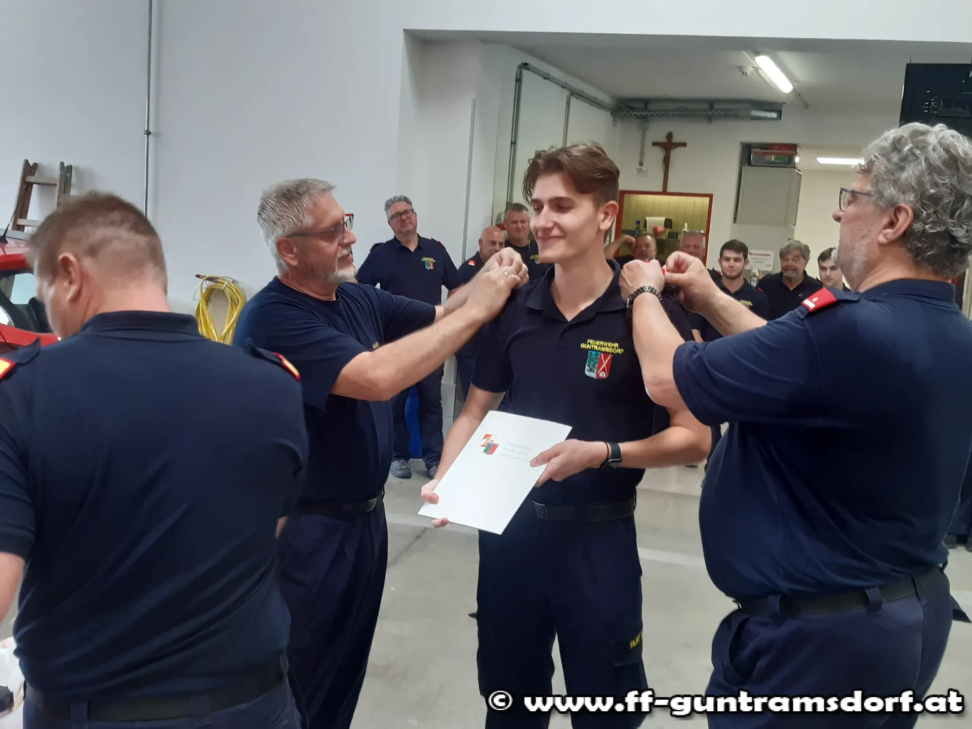 Marc Jelinek, Werner Knarr und Tizian Vajay der Dienstgrad „Feuerwehrmann“ verliehen.