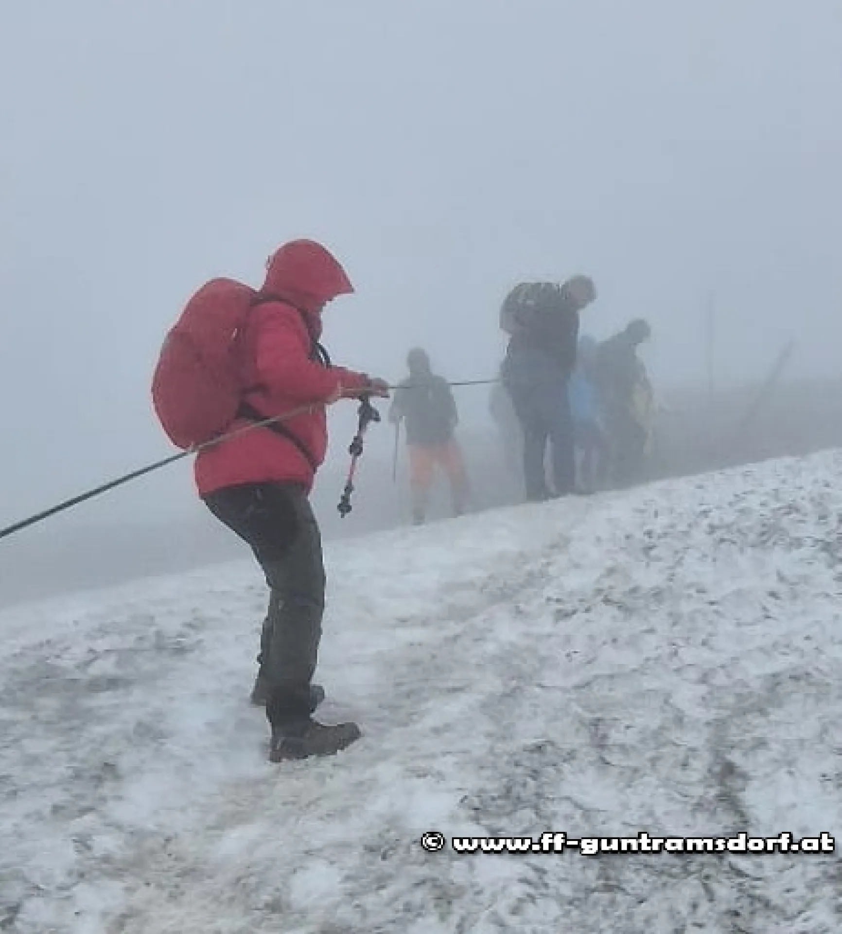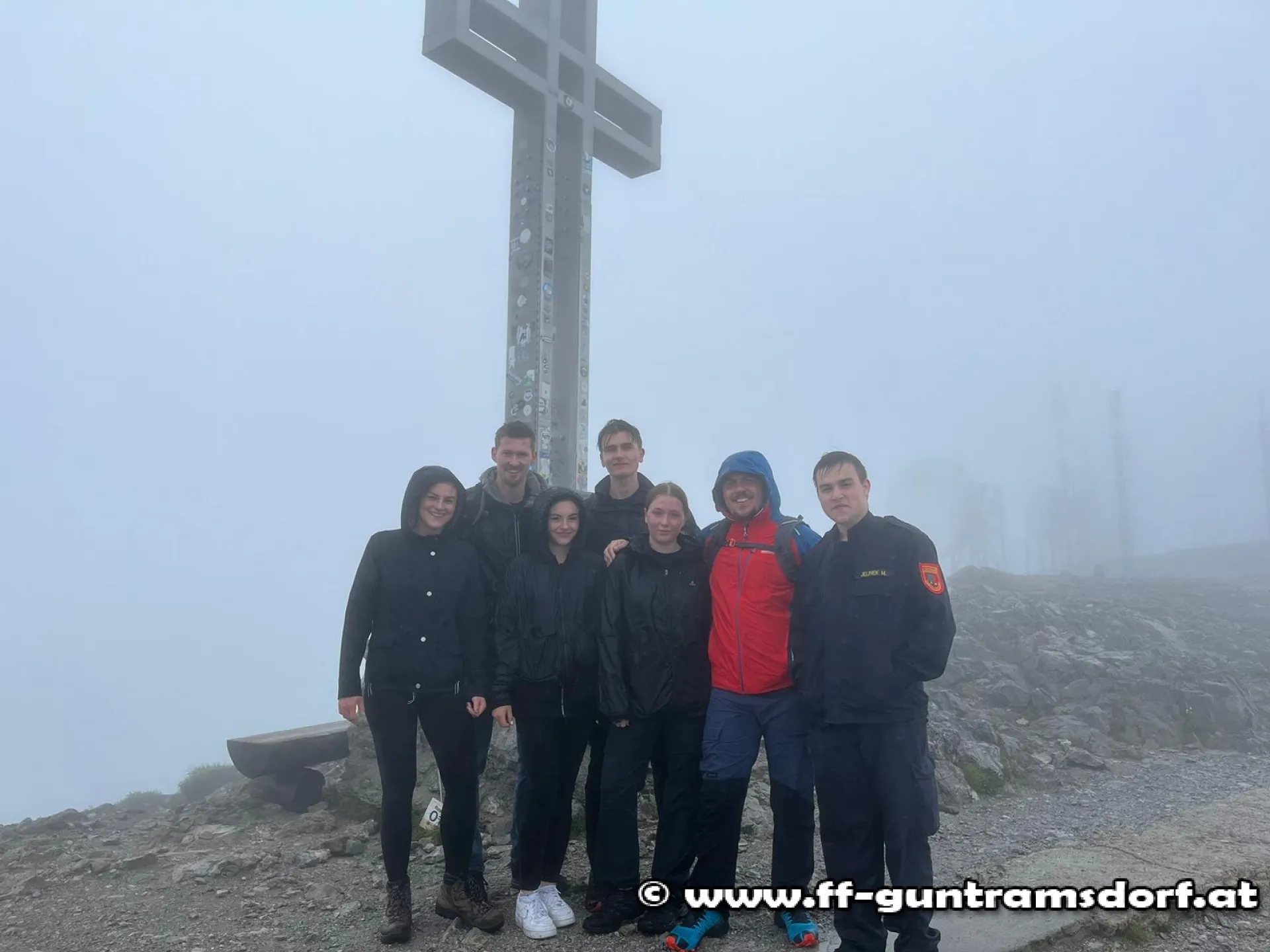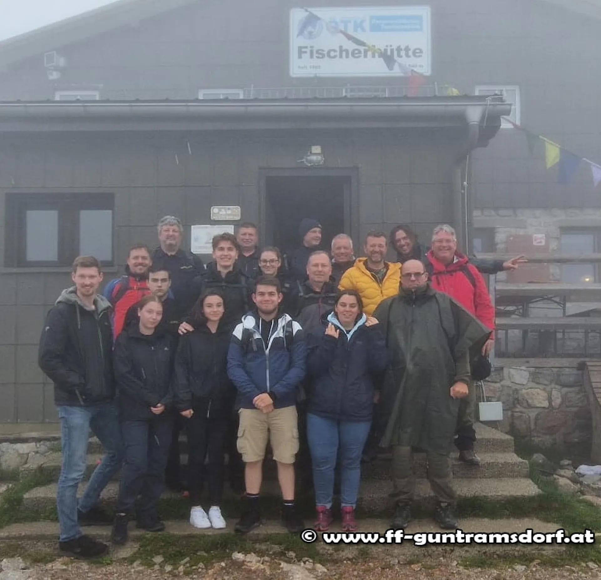Der Samstag stand dann im Zeichen einer Schneebergbesteigung. Nach Auffahrt mit dem „Salamanderzug“ ging es für eine Gruppe über das Damböckhaus zur Fischerhütte. Die etwas jüngere Gruppe erreichte die Fischerhütte über den Waxriegel und das Klosterwappen, wobei das letzte Stück vor der Fischerhütte bei Nebel und Nieselregen einem hochalpinen Unternehmen glich (siehe Fotos). Auch der „heimatkundliche Bildungsauftrag“ wurde erfüllt, war es doch für einige das erste Mal, dass sie auf dem höchsten Berg Niederösterreichs standen!
