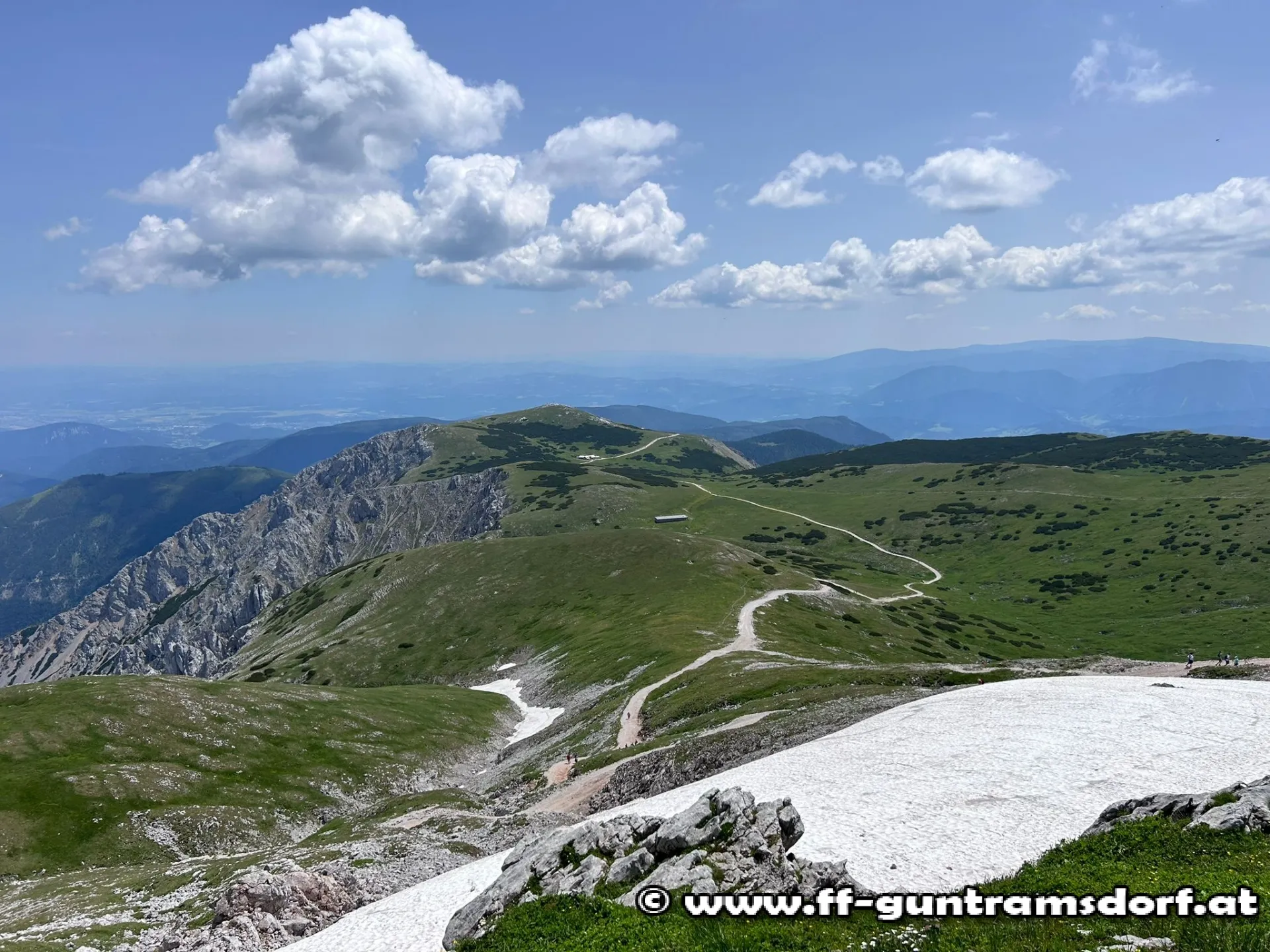 Am Samstag begab sich die bunt gemischte Truppe (jüngster Teilnehmer 15, ältester 64 Jahre!) vorerst mit der Zahnradbahn bis zum Bergbahnhof Hochschneeberg. Von dort aus startete dann die Wanderung über das Damböckhaus zur Fischhütte und wieder retour.