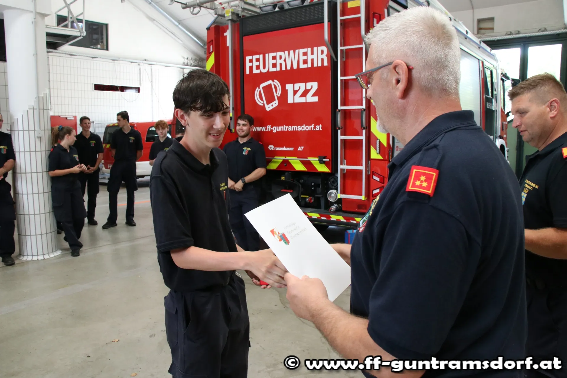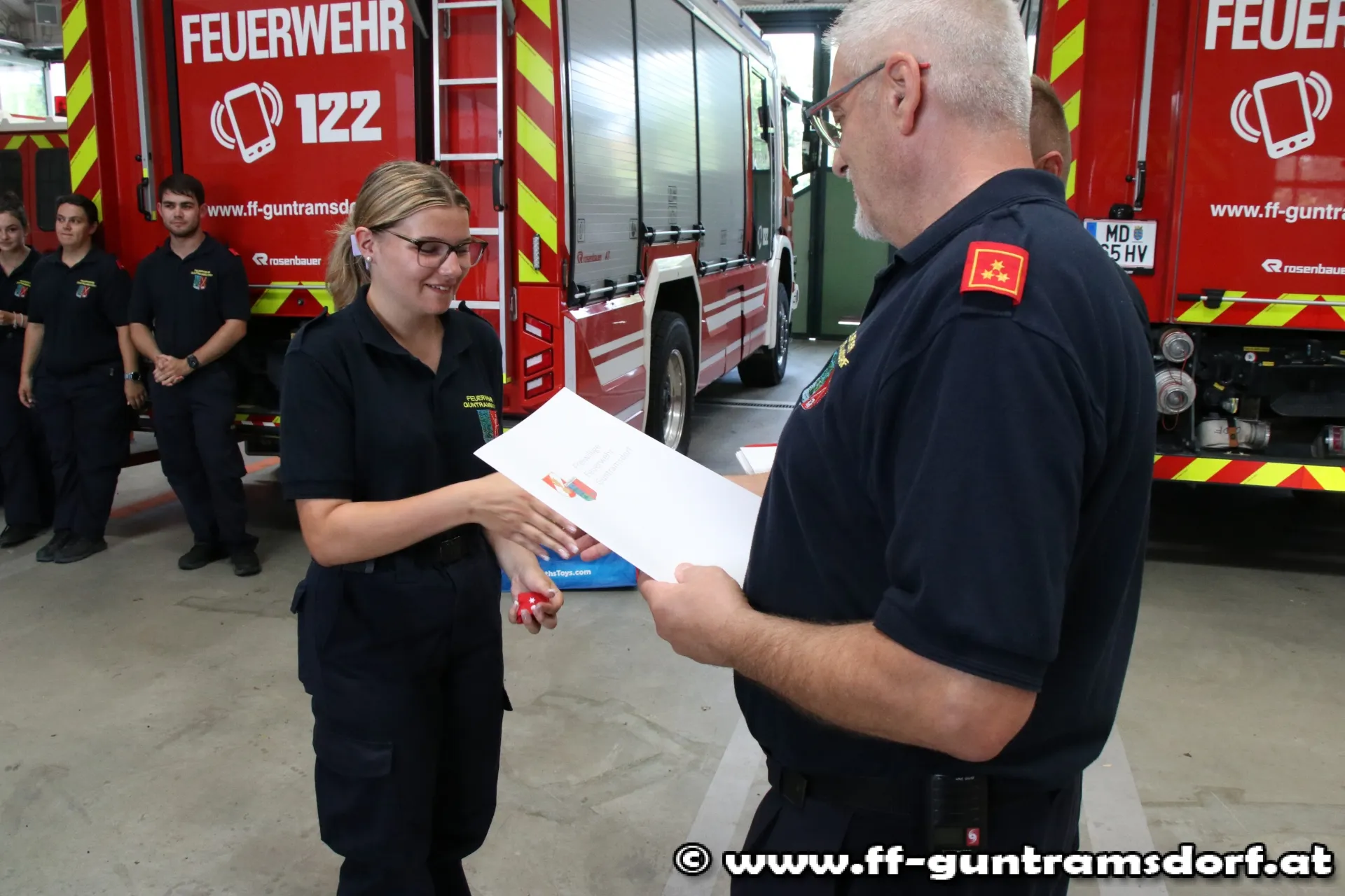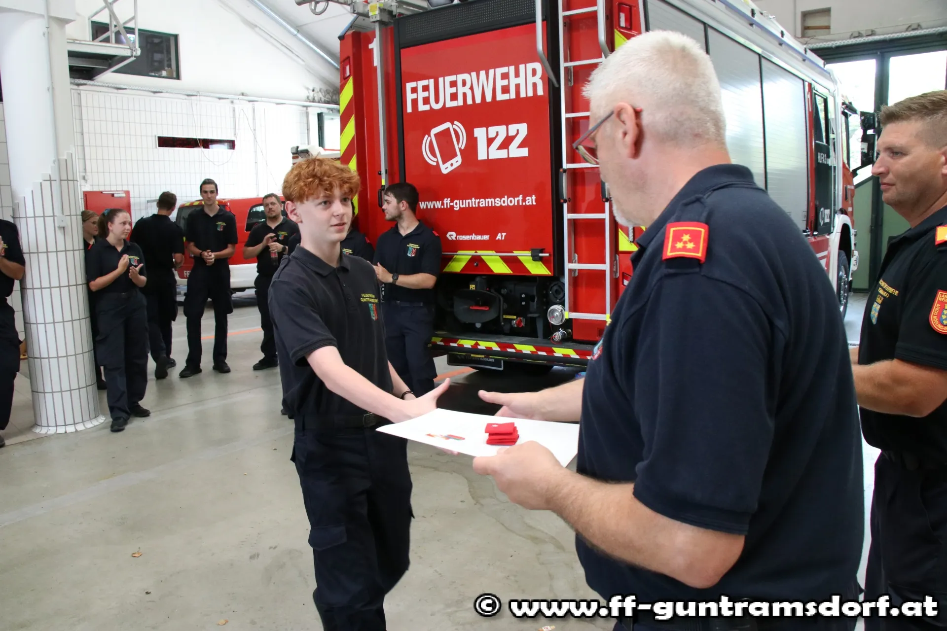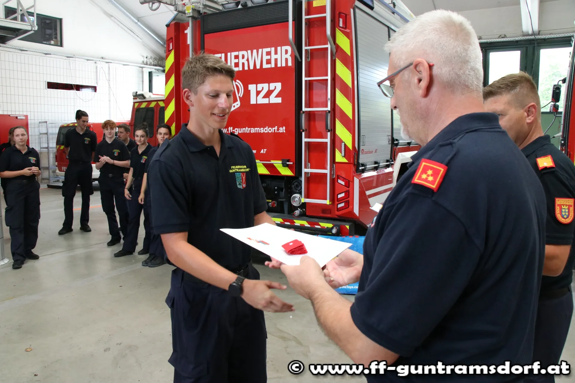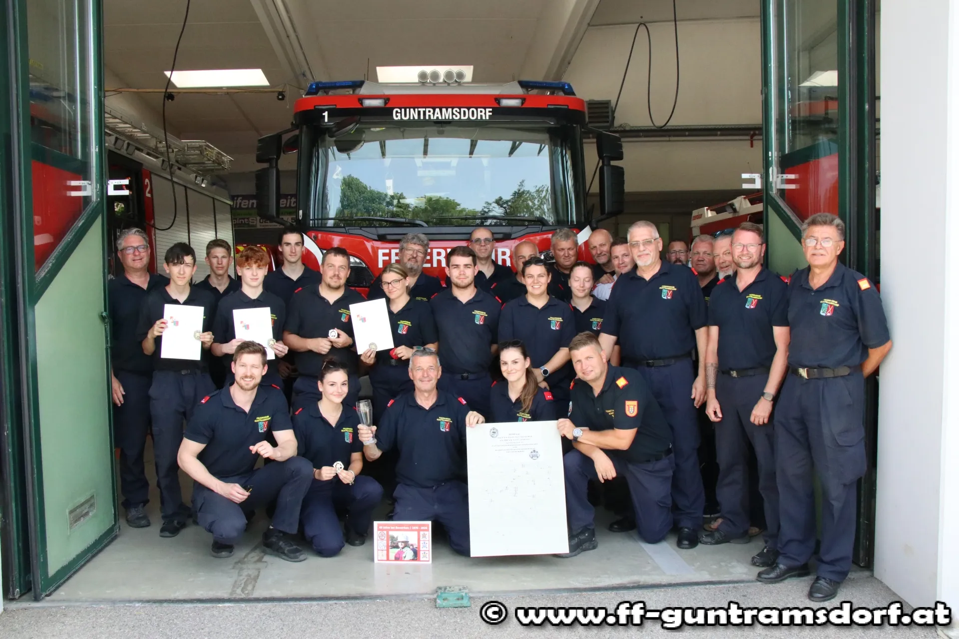 Es ist bereits lange Tradition, dass die neu erworbenen Leistungsabzeichen und damit einhergehende Beförderungen im Anschluss an die Siegerehrung im Feuerwehrhaus Guntramsdorf vom Kommando übergeben werden.
