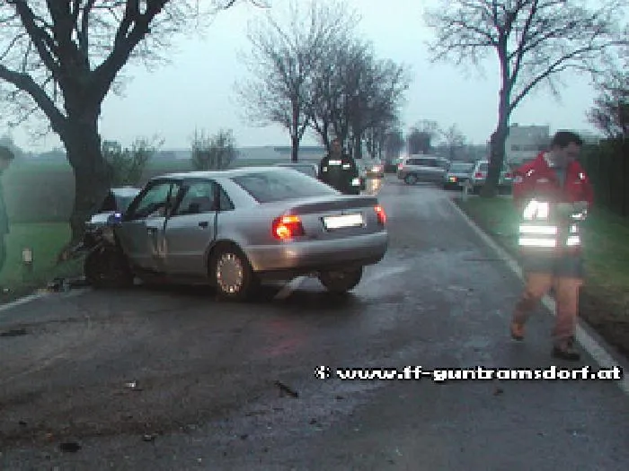 Innerhalb weniger Stunden ereignete sich in unserem Einsatzgebiet ein zweiter schwerer Verkehrsunfall: Wieder aus ungeklärter Ursache verlor ein Laxenburger in einer Rechtskurve die Herrschaft über sein Fahrzeug und prallte gegen einen Alleebaum.