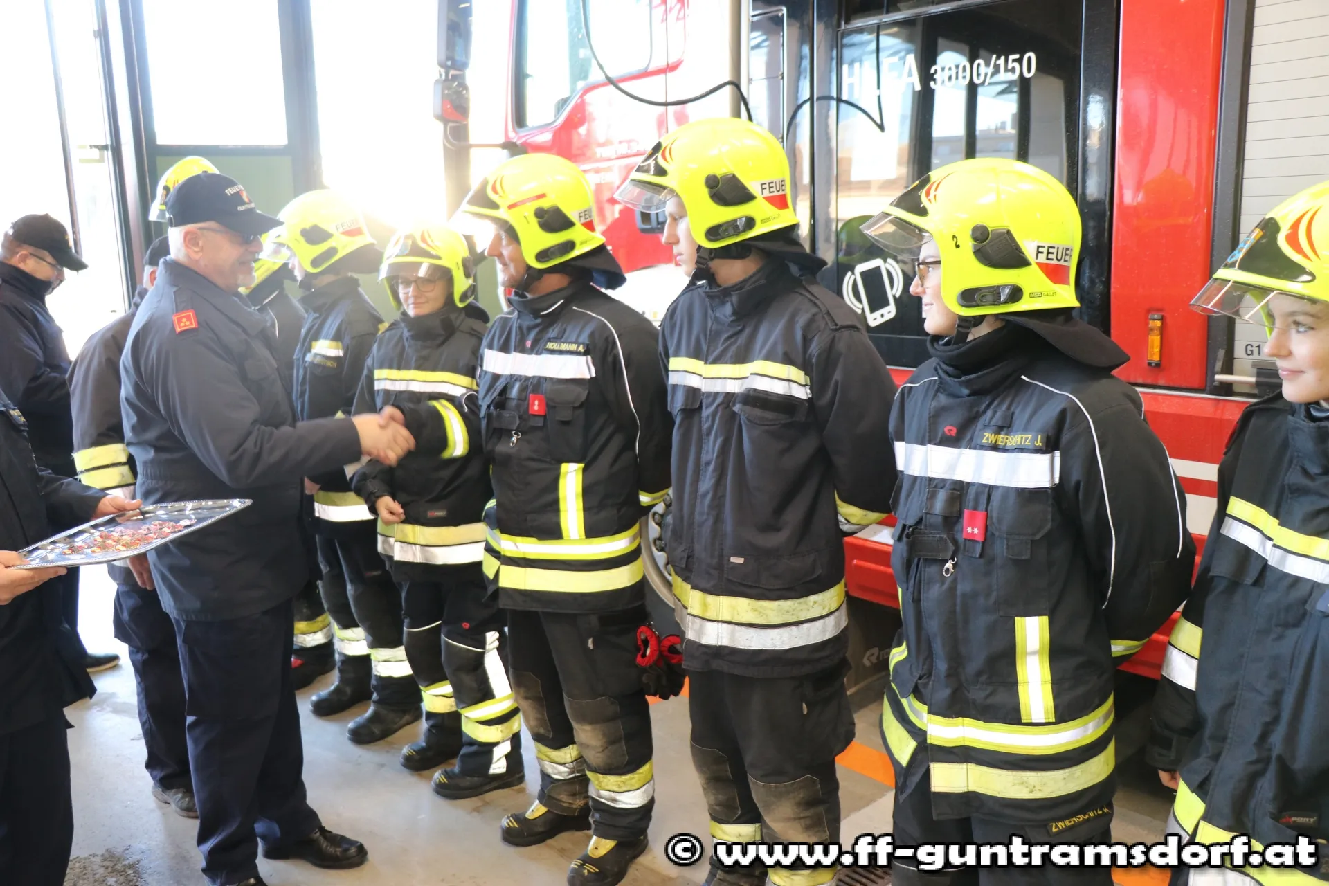 Bei seiner kurzen Ansprache bedankte sich Kommandant HBI Janisch nach Beendigung der Ausbildungsprüfung beim Ausbilderteam um HLM Dieter Rauch und dem Prüferteam für die erfolgreiche Durchführung. Anschließend erfolgte die Übergabe der Abzeichen.