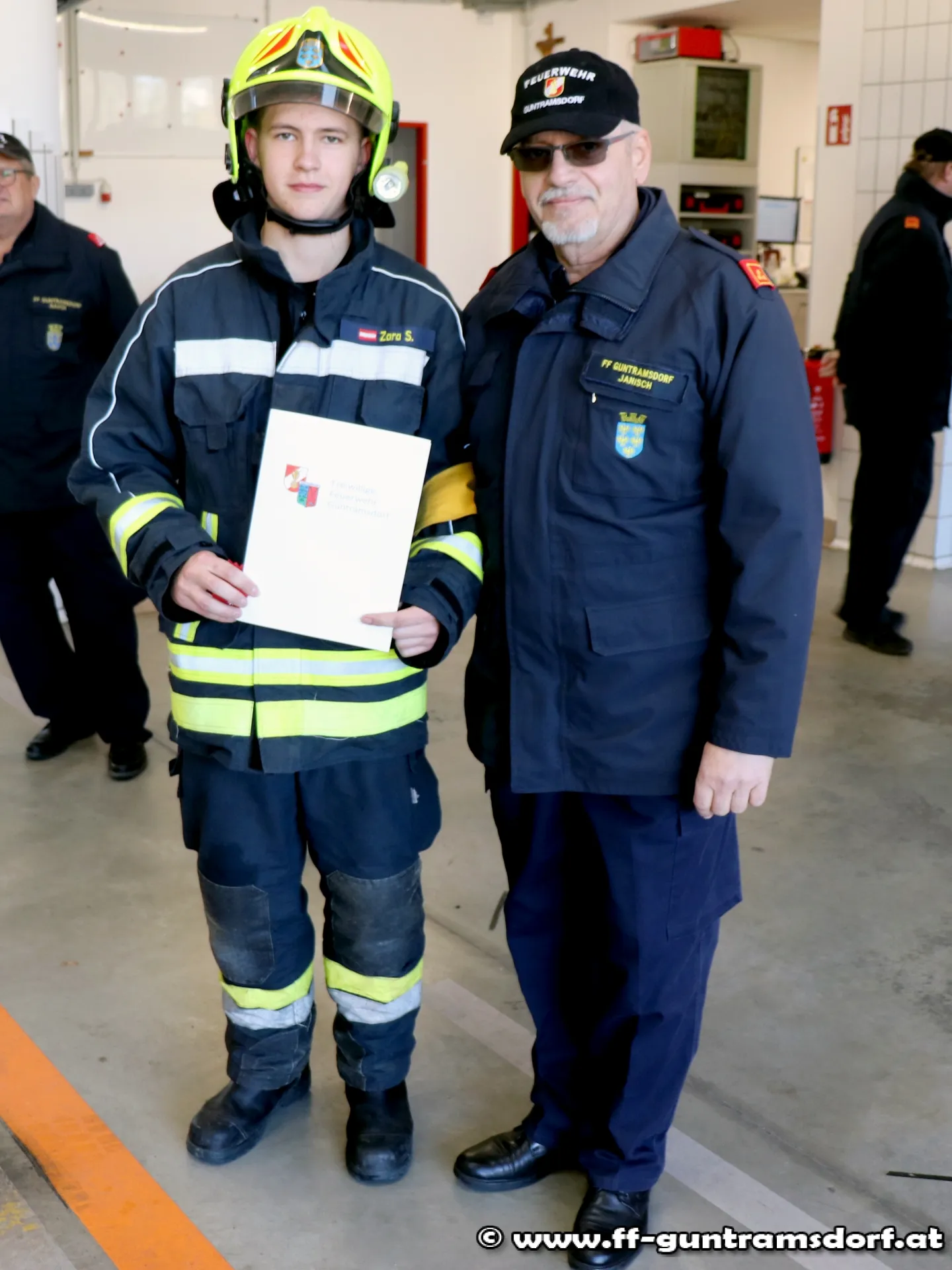 Zum Abschluss wurde Sebastian Zara nach Erreichen aller notwendigen Voraussetzungen zum Feuerwehrmann befördert.