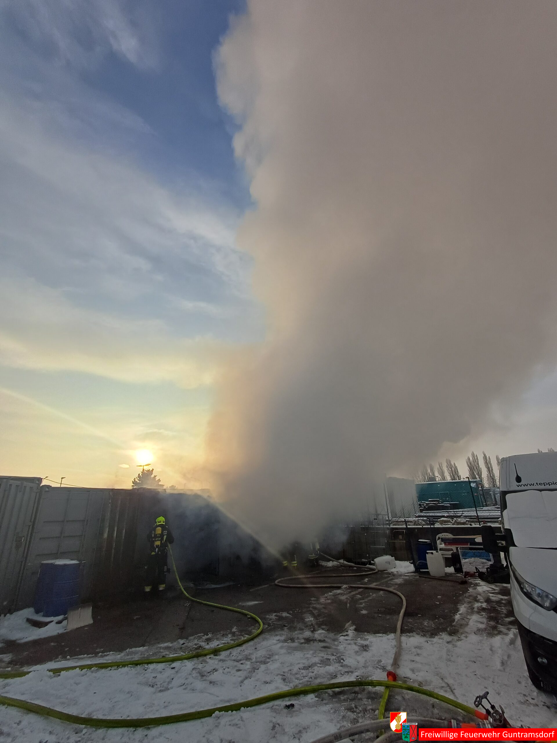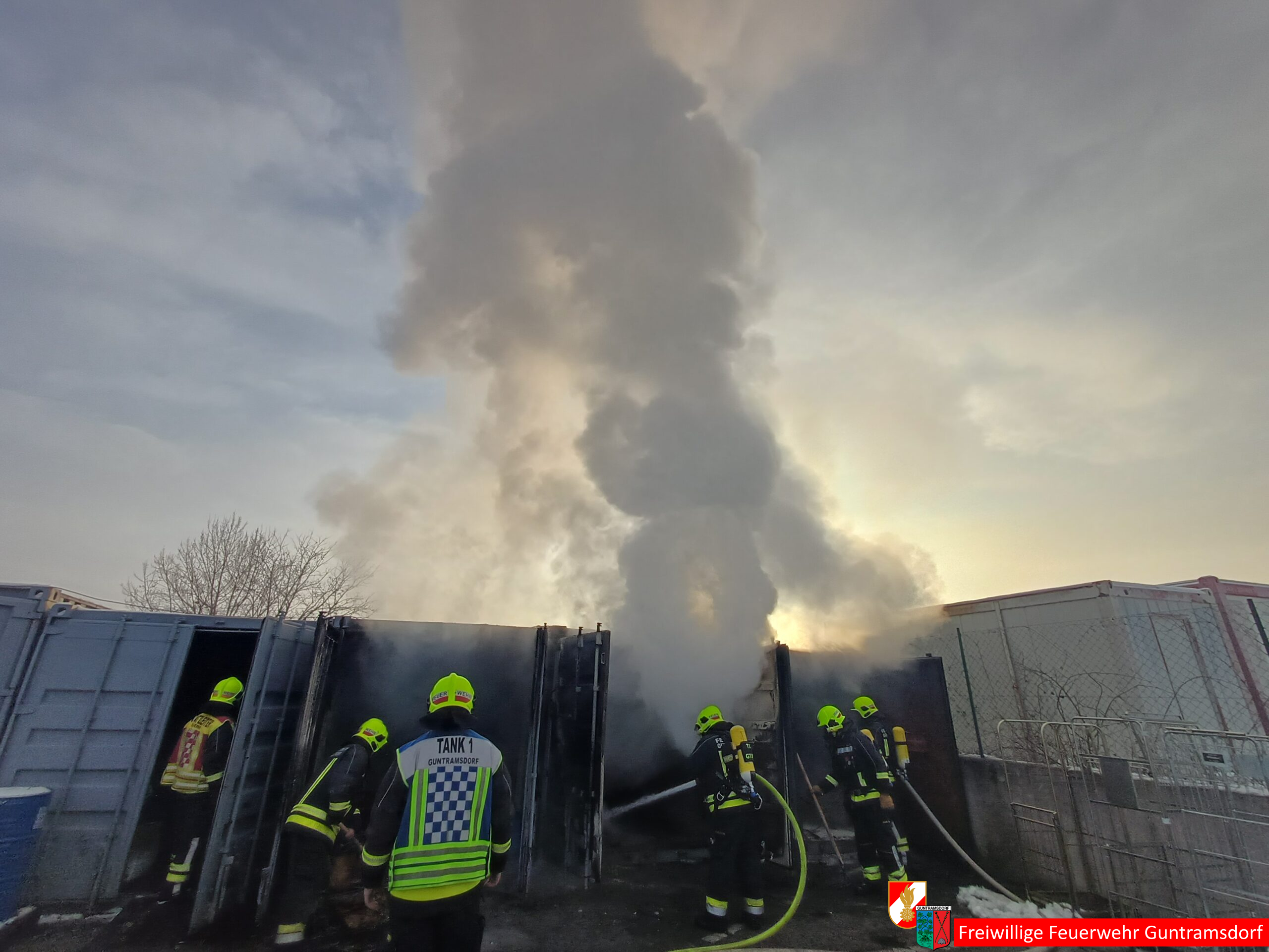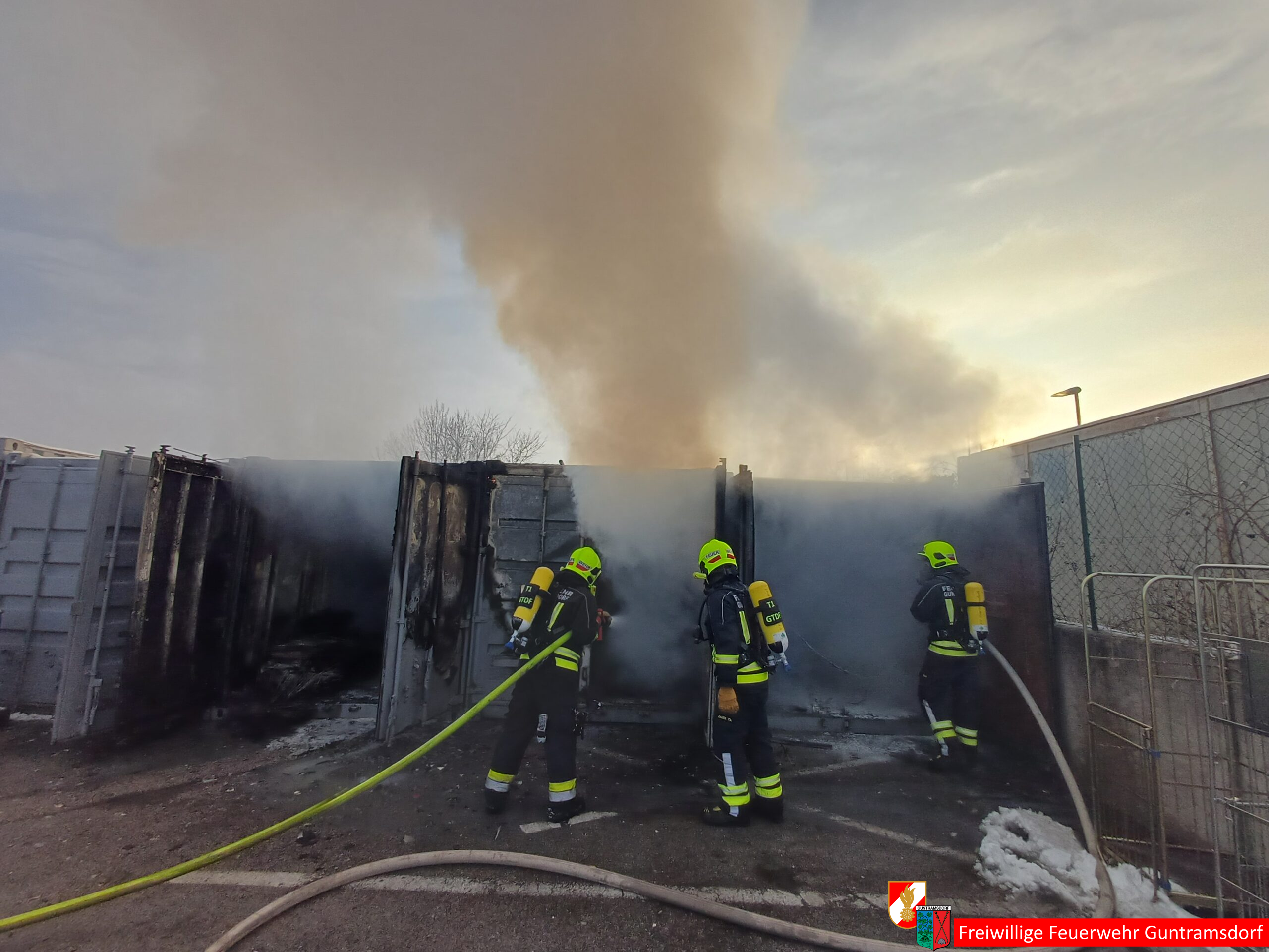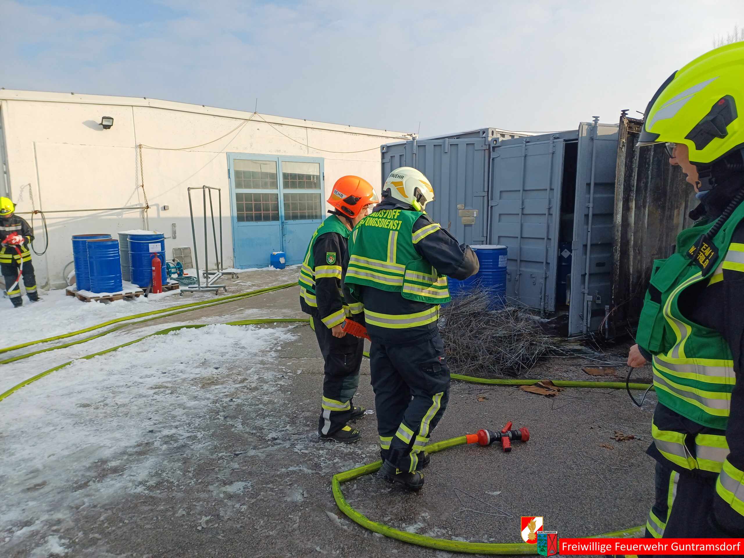 Zur Entsorgung der Stoffe und zum Räumen der Container wurde von der Gemeinde Guntramsdorf eine Schuttmulde und die Feuerwehr Gumpoldskirchen zur Unterstützung mit Atemschutzgeräteträger angefordert.