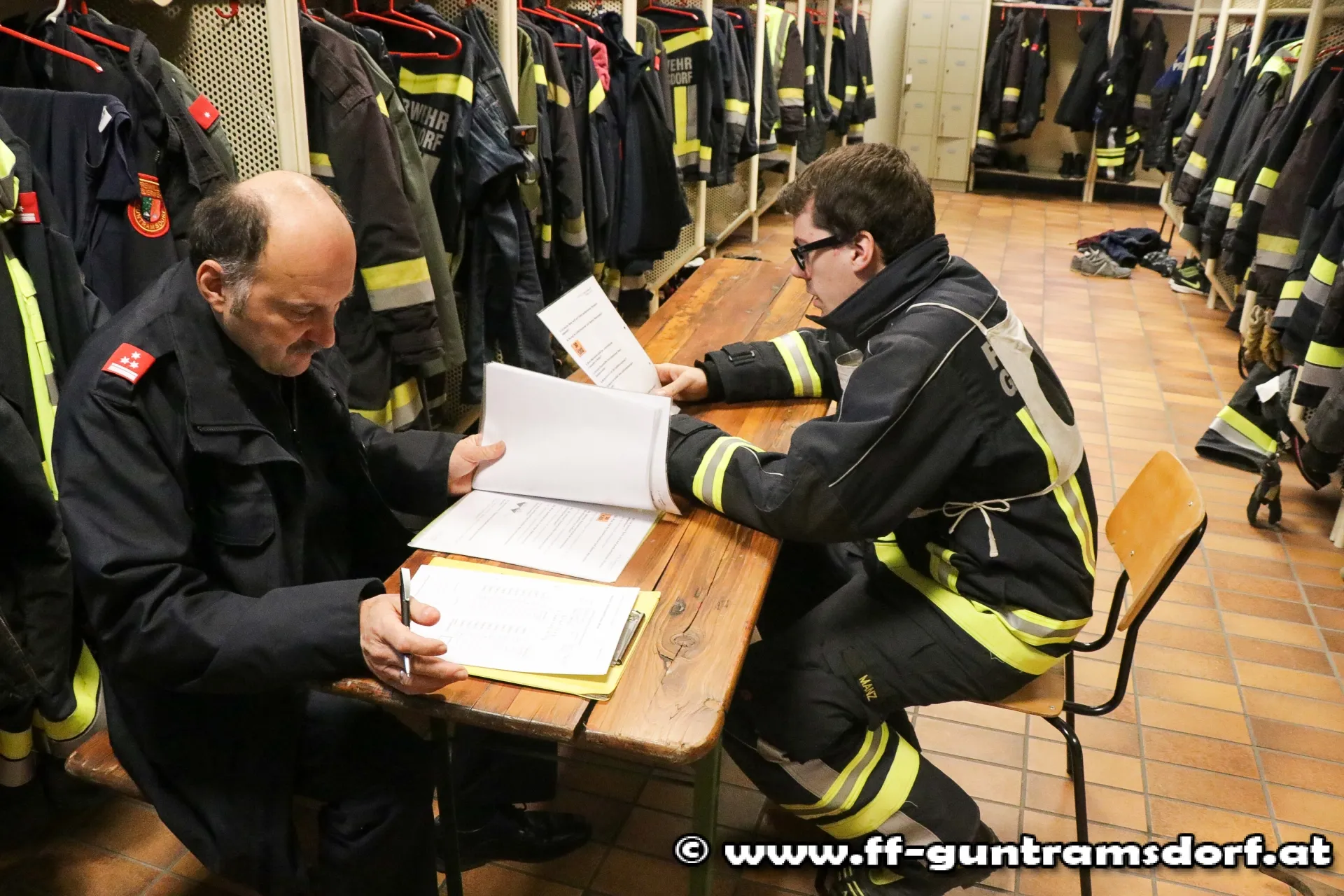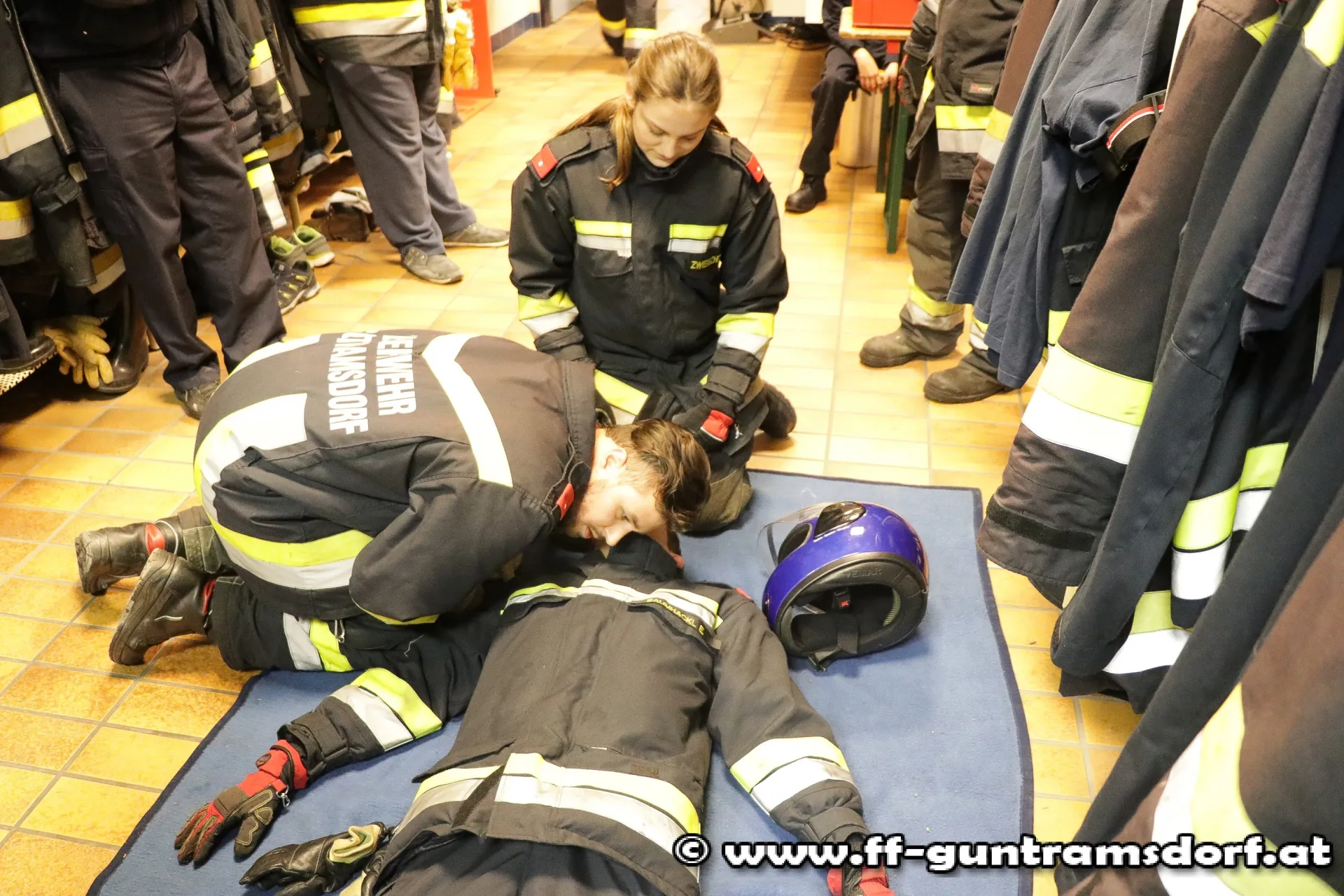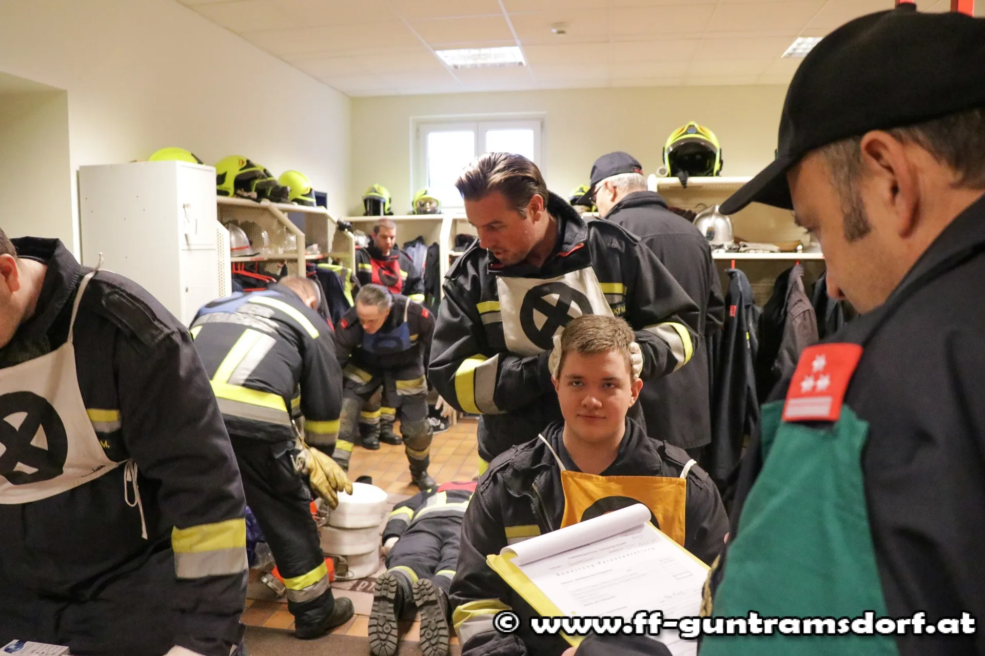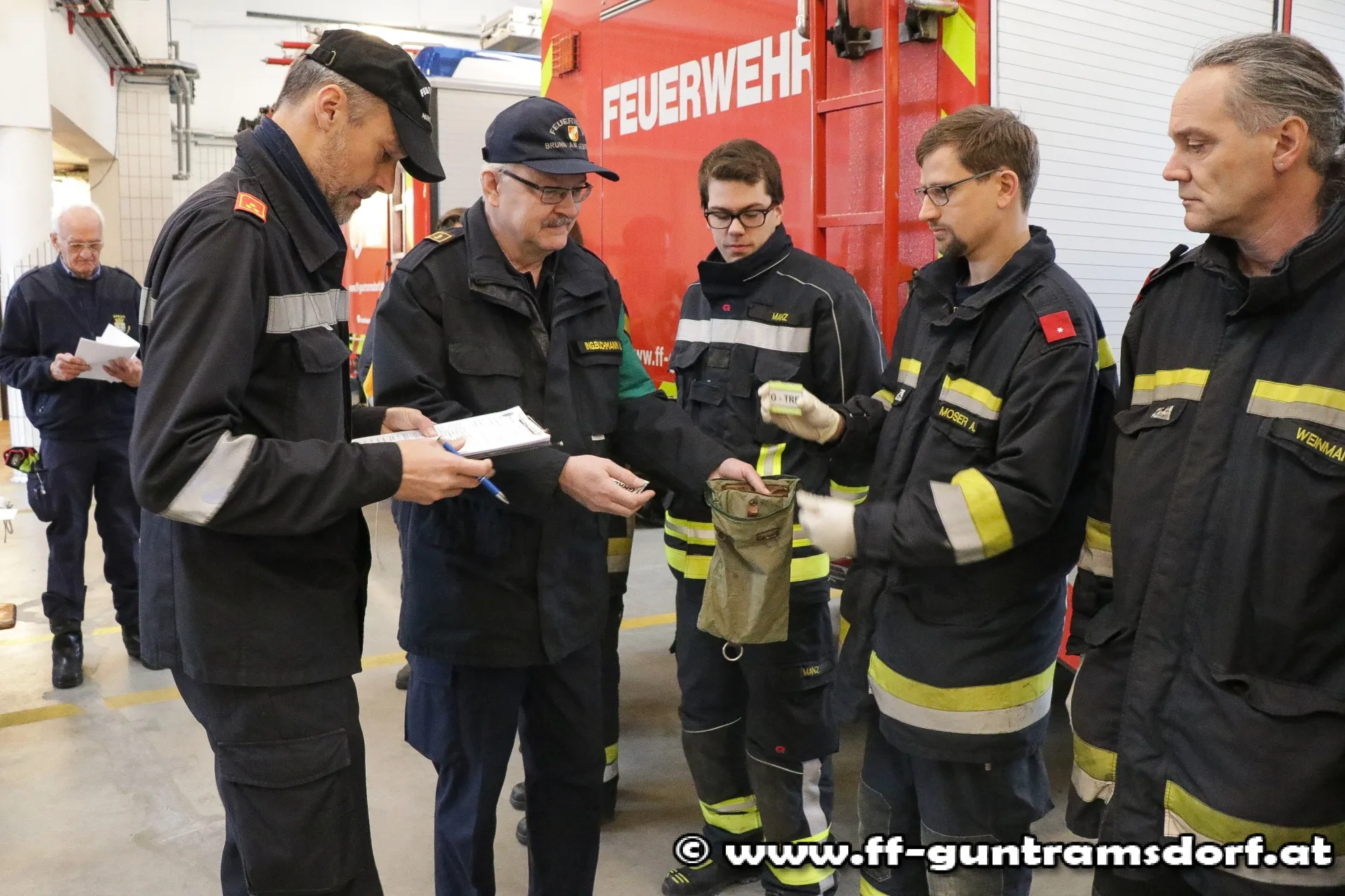 Beim theoretischen Teil der Prüfung geht es einerseits um das Vorzeigen diverser Erste- Hilfe-Maßnahmen und anderseits um Gerätekunde. Dabei zieht jedes Mitglied aus einer Vielzahl von Gerätekärtchen (die nahezu alle im Fahrzeug befindlichen Geräte umfassen), je 2 Kärtchen, muss dem Prüfer (bei geschlossenen Rollläden) zeigen, wo dieses Gerät im Fahrzeug gelagert ist und dieses kurz erklären.