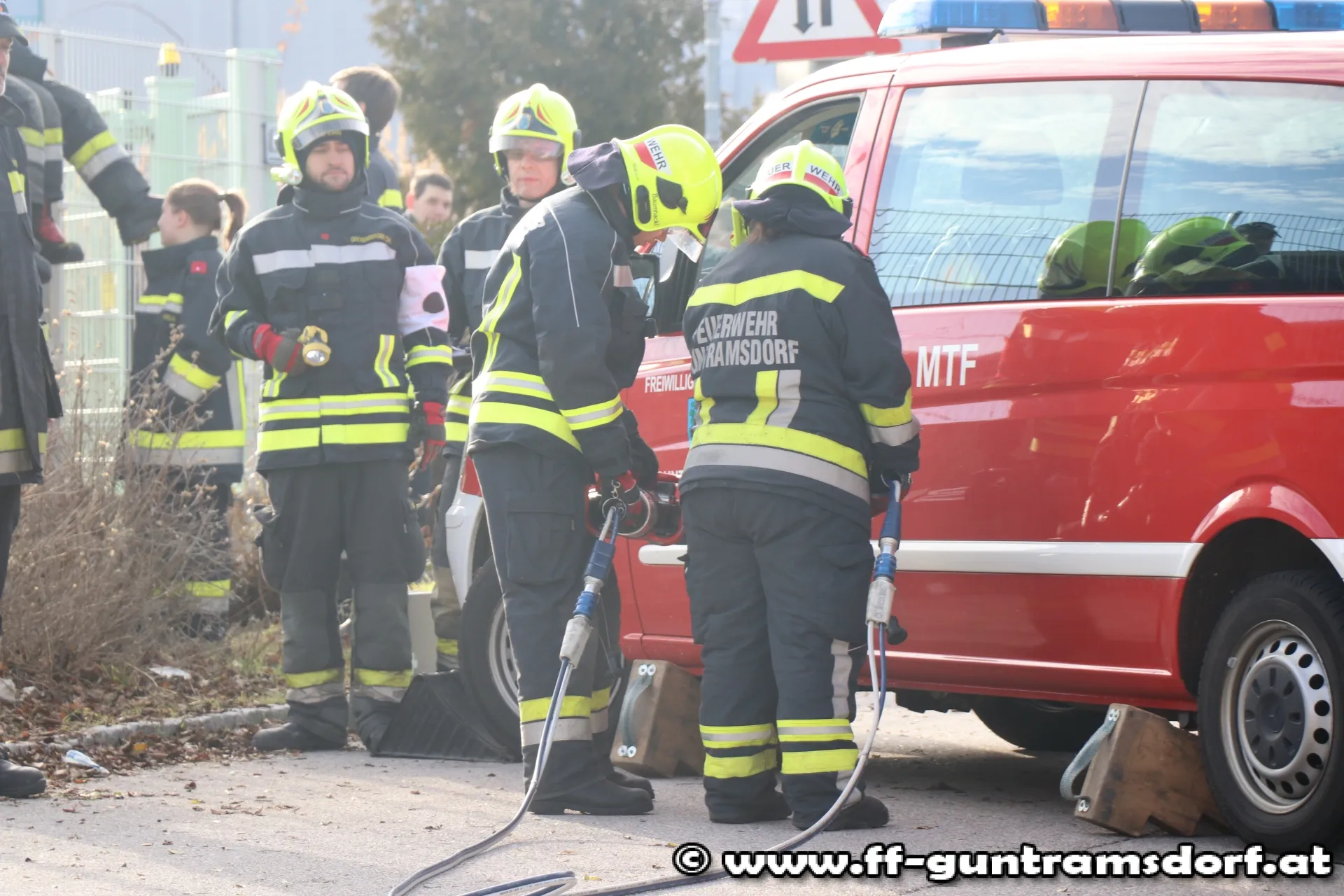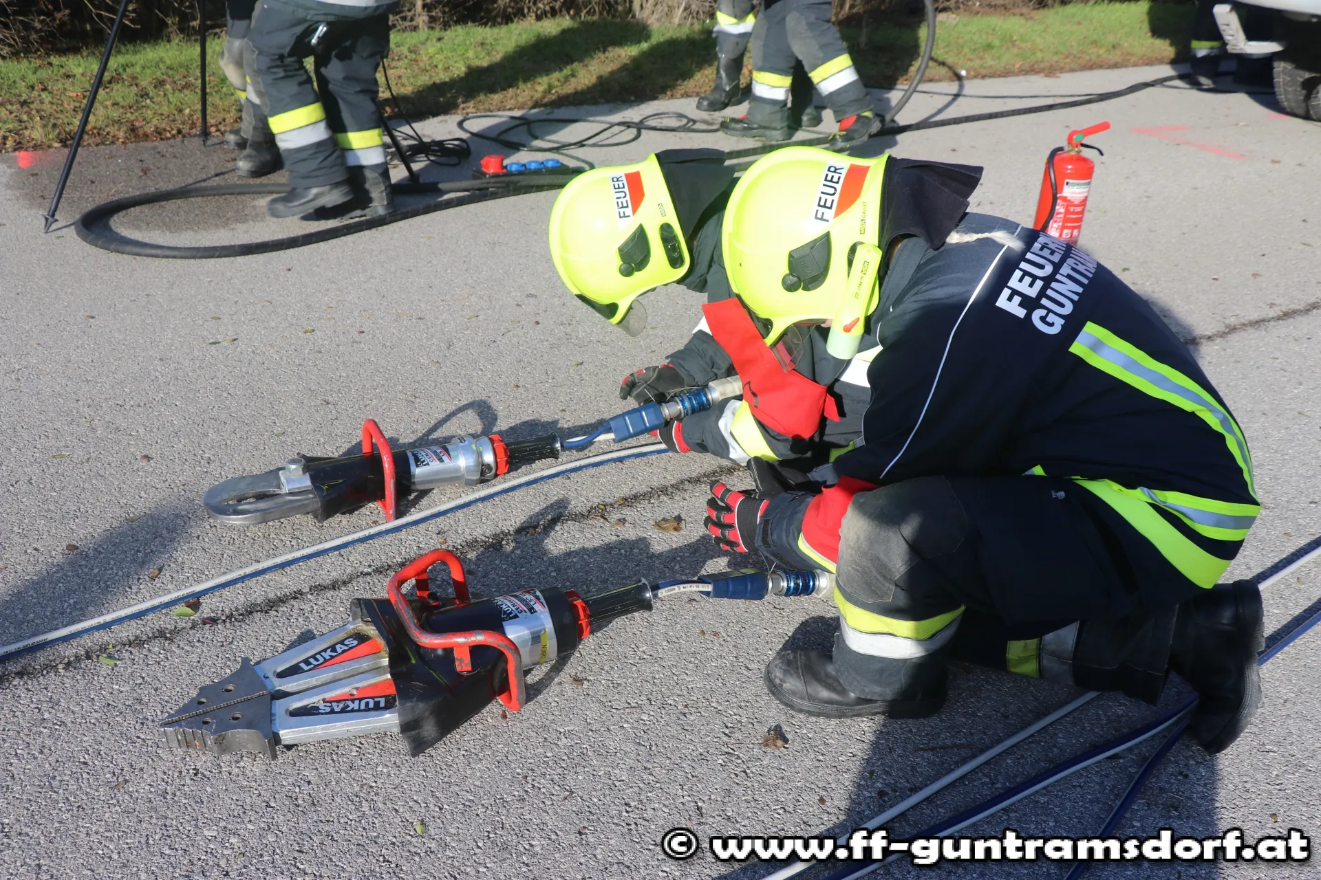 Im praktischen Teil dieser „Prüfung“ muss eine aus 10 Mitgliedern bestehende Gruppe, einen fiktiven „Verkehrsunfall mit eingeklemmter Person“ abarbeiten. Dabei hat jeder Trupp (das sind je 2 Mann) vordefinierte Aufgaben zu erfüllen. Abgesehen davon, dass die Prüfer die richtliniengemäße Ausführung der Arbeiten bewerten, müssen alle vorgegebenen Tätigkeiten (Absichern und Beleuchtung der Einsatzstelle, Sichern des Unfallfahrzeuges und die Menschenrettung) innerhalb eines vorgegebenen Zeitrahmens erledigt werden.