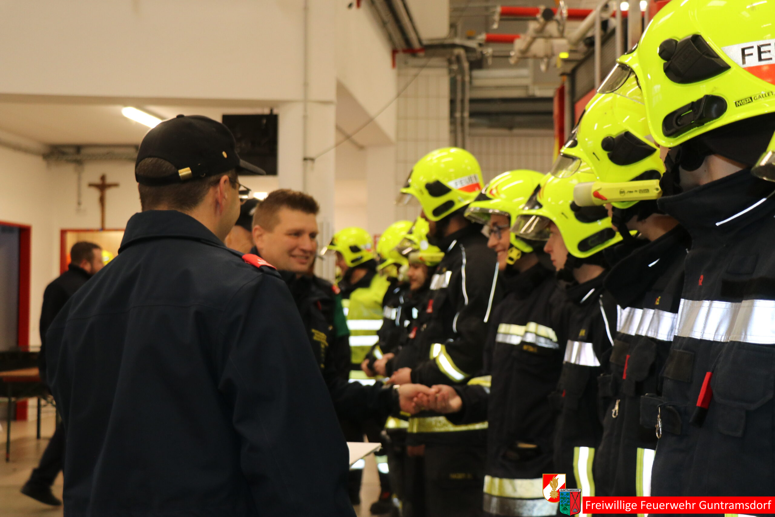 Schließlich konnte das Prüferteam und der ebenfalls anwesende Kommandant-Stv. ABI Michael Schinko den Guntramsdorfer Kräften zur bestandenen Ausbildungsprüfung gratulieren und die Abzeichen übergeben.