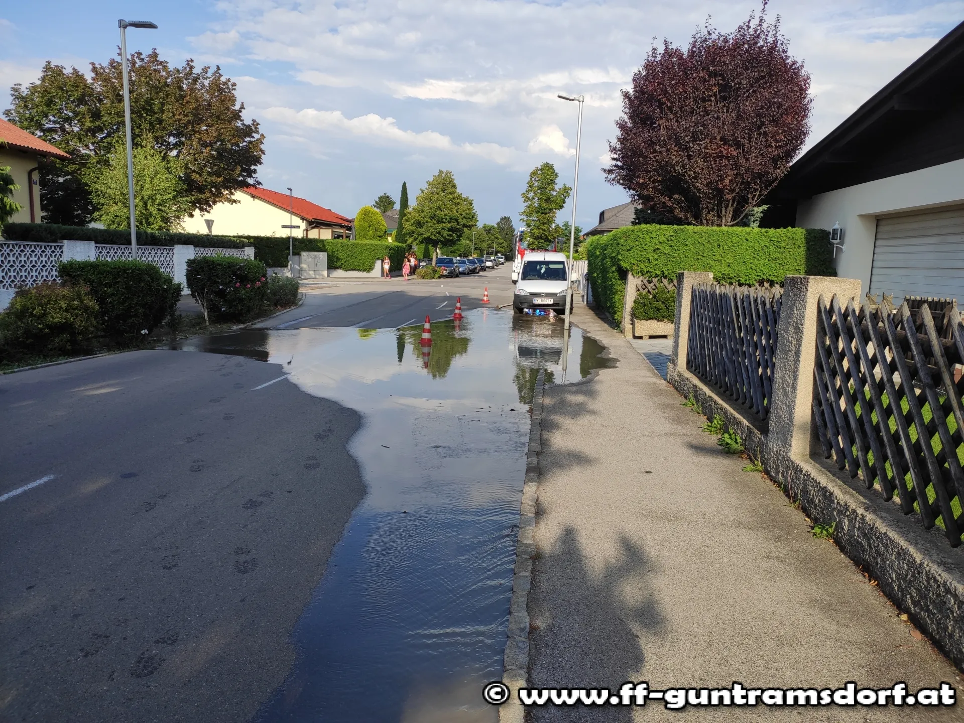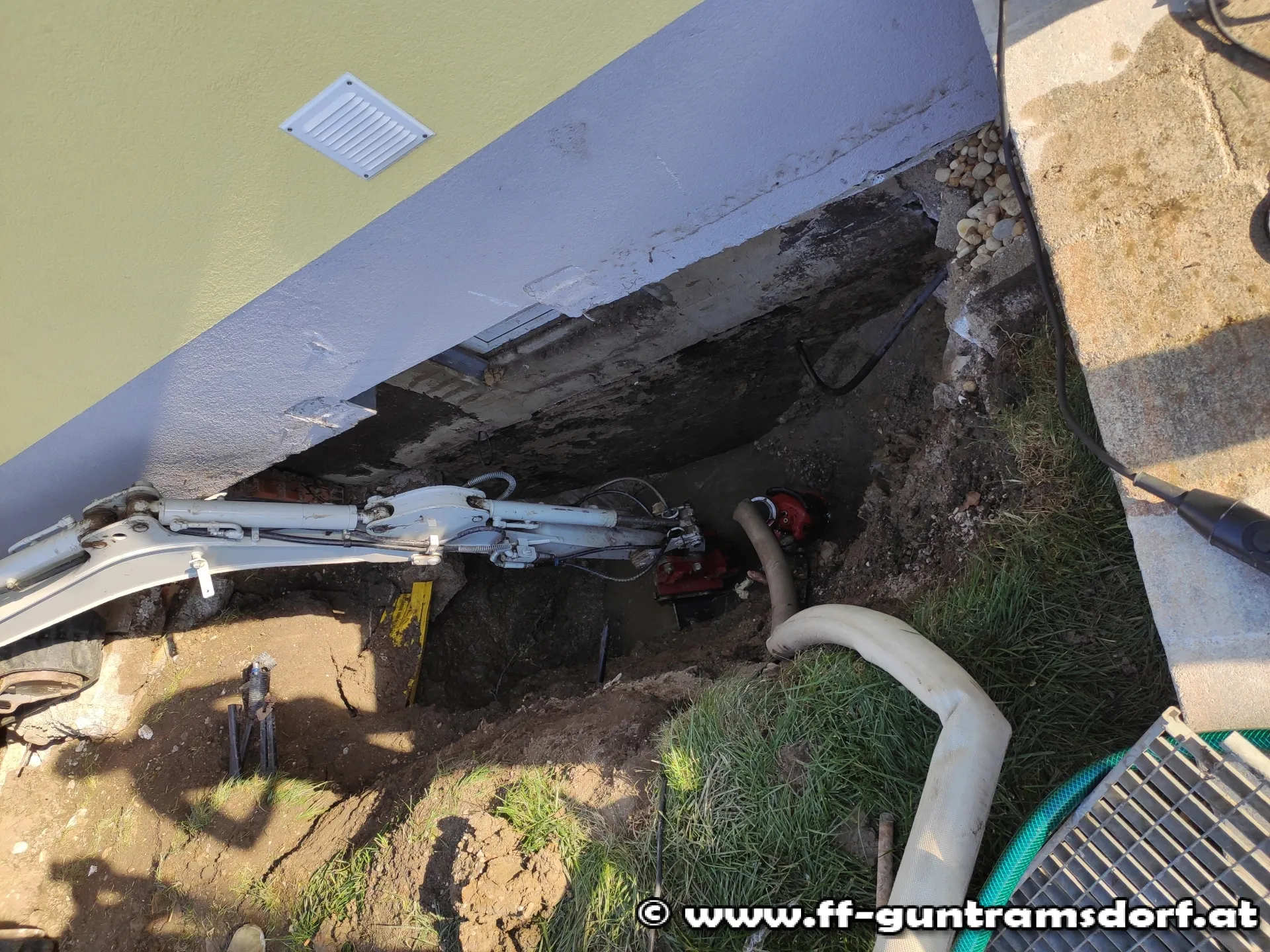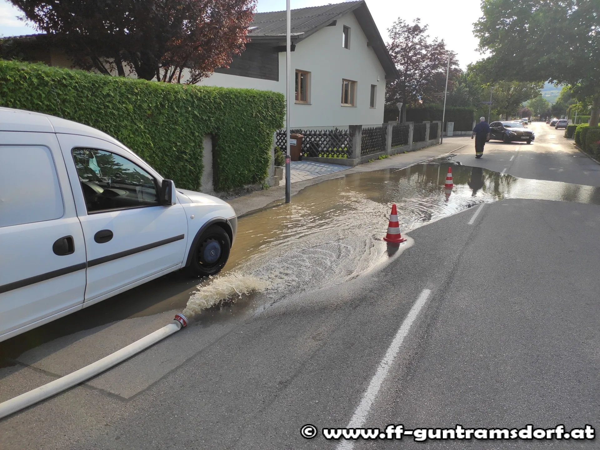 Bis zum Eintreffen des Wasserwerkes, das für die Absperrung der Leitung sorgte, wurde das Wasser mit einer Tauchpumpe in den Regenwasserkanal gepumpt, wodurch das Eindringen des Wassers in den Keller verhindert werden konnte.