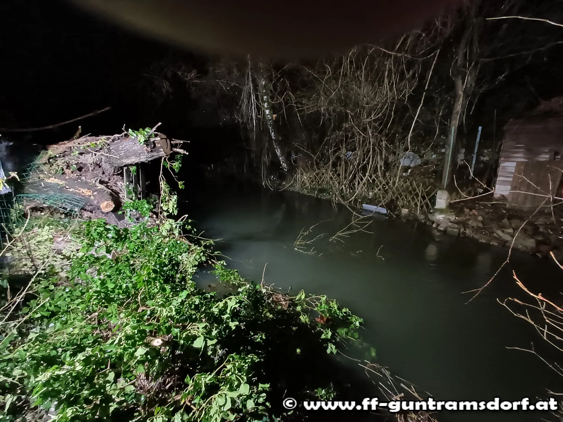 Im Zuge der Erkundung stellte sich heraus, dass eine Weide umgebrochen und über die gesamte Breite des Wiener Neustädter Kanals zu liegen gekommen war.