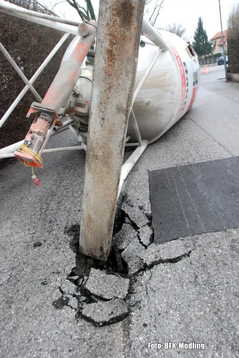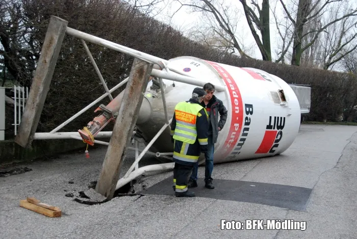 Aus bislang ungeklärten Umständen stürzte am Ostersonntag, dem 31. März 2013, am Clematisweg ein Baustoffsilo um. Die Bezirksalarmzentrale alarmierte um 10:47 Uhr die Freiwillige Feuerwehr Guntramsdorf zur technischen Hilfeleistung.