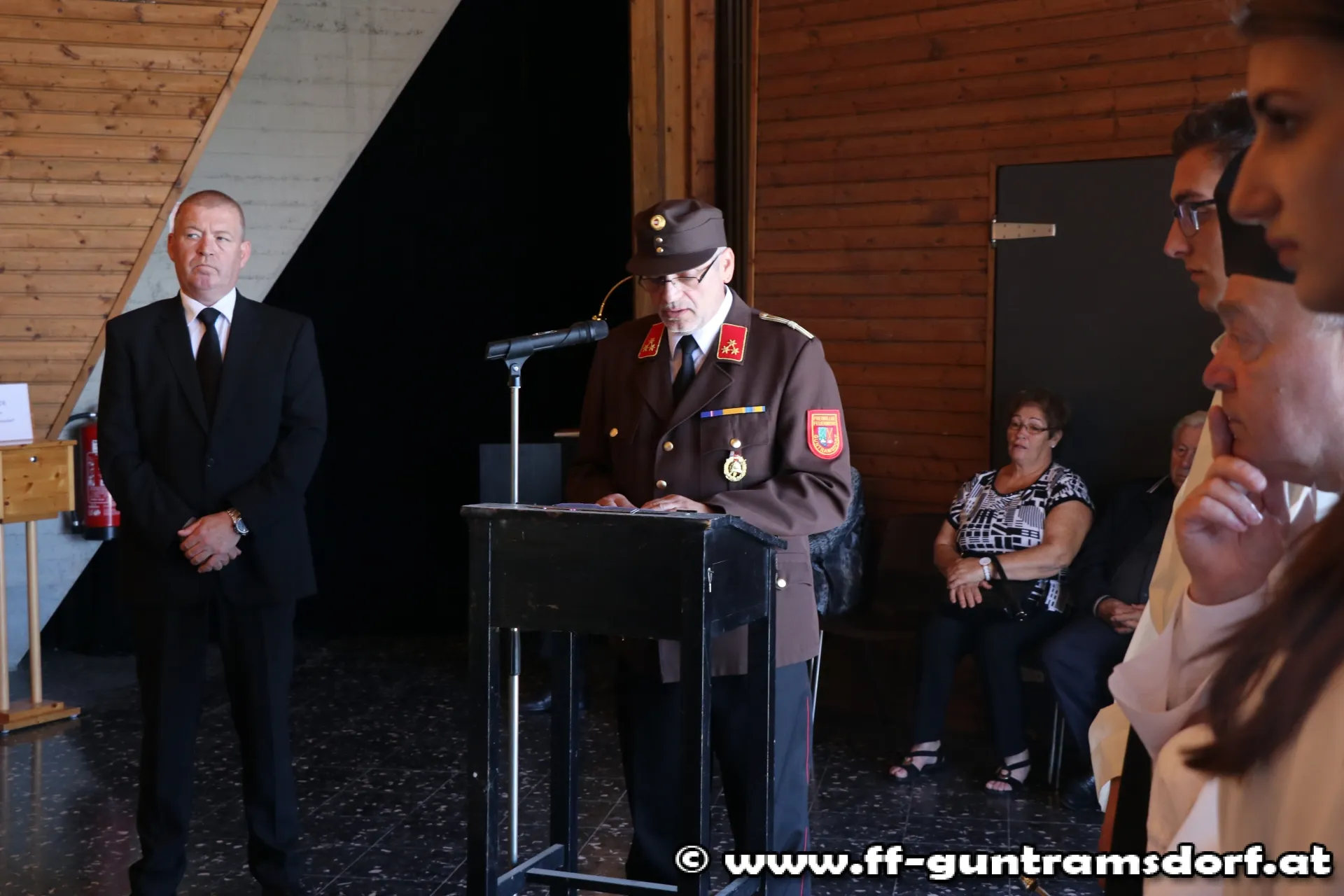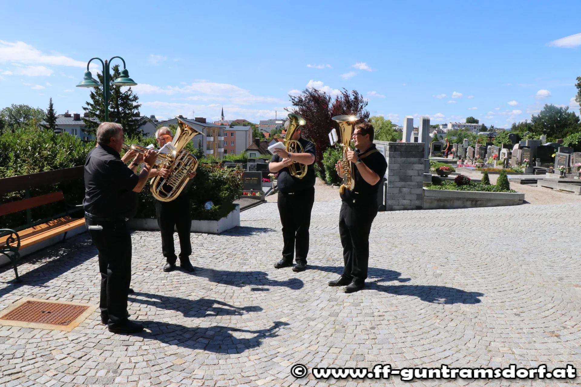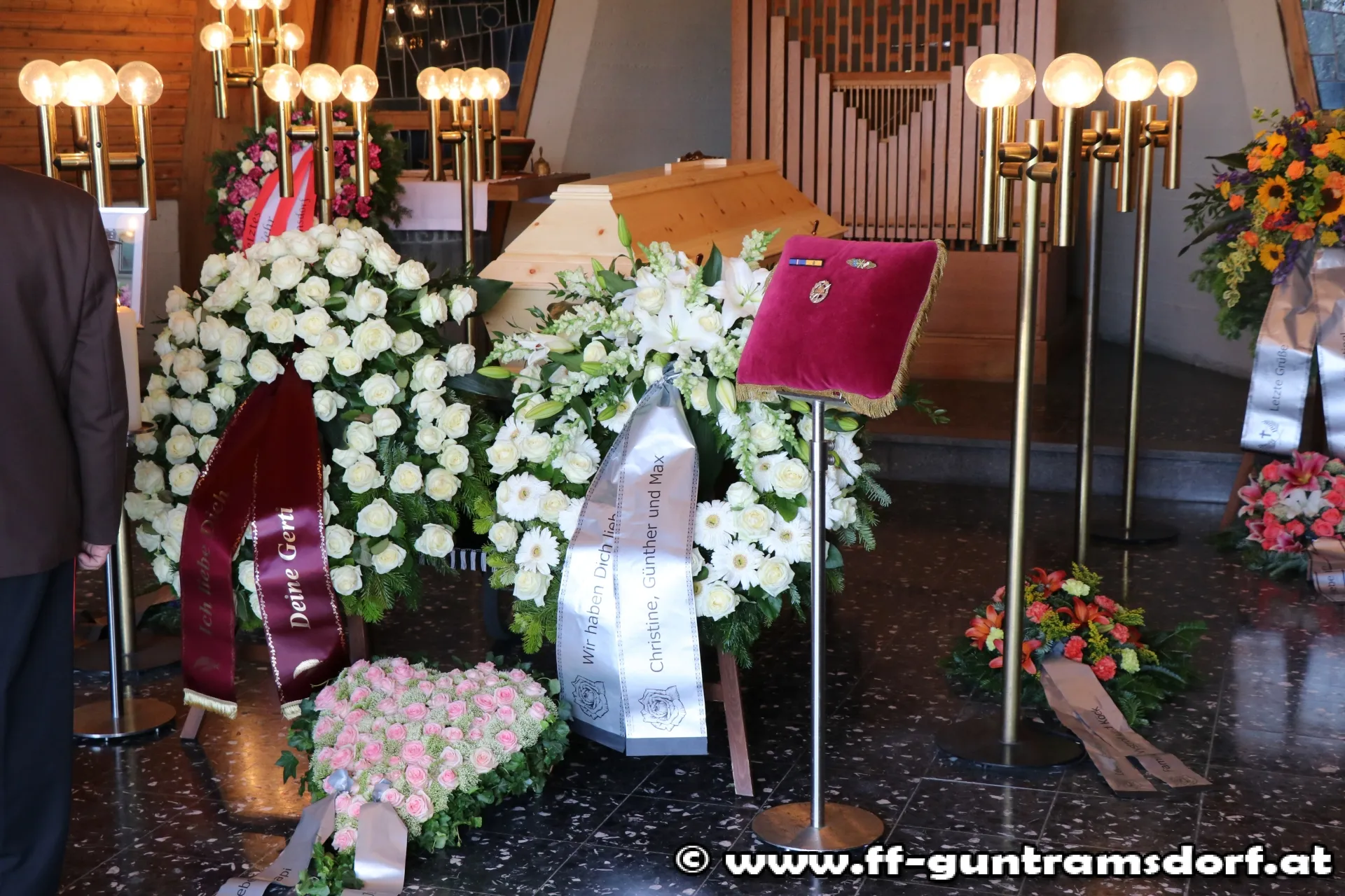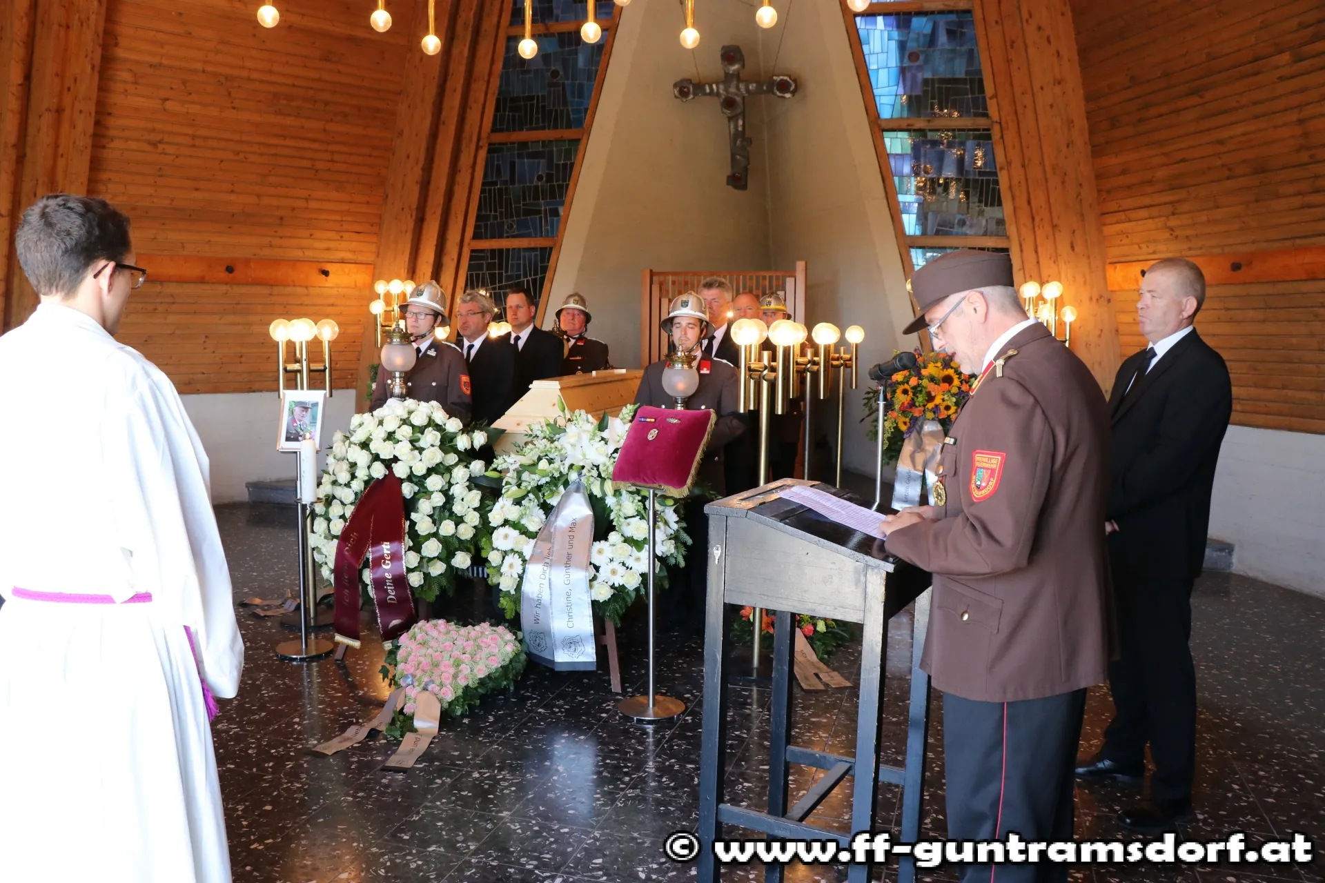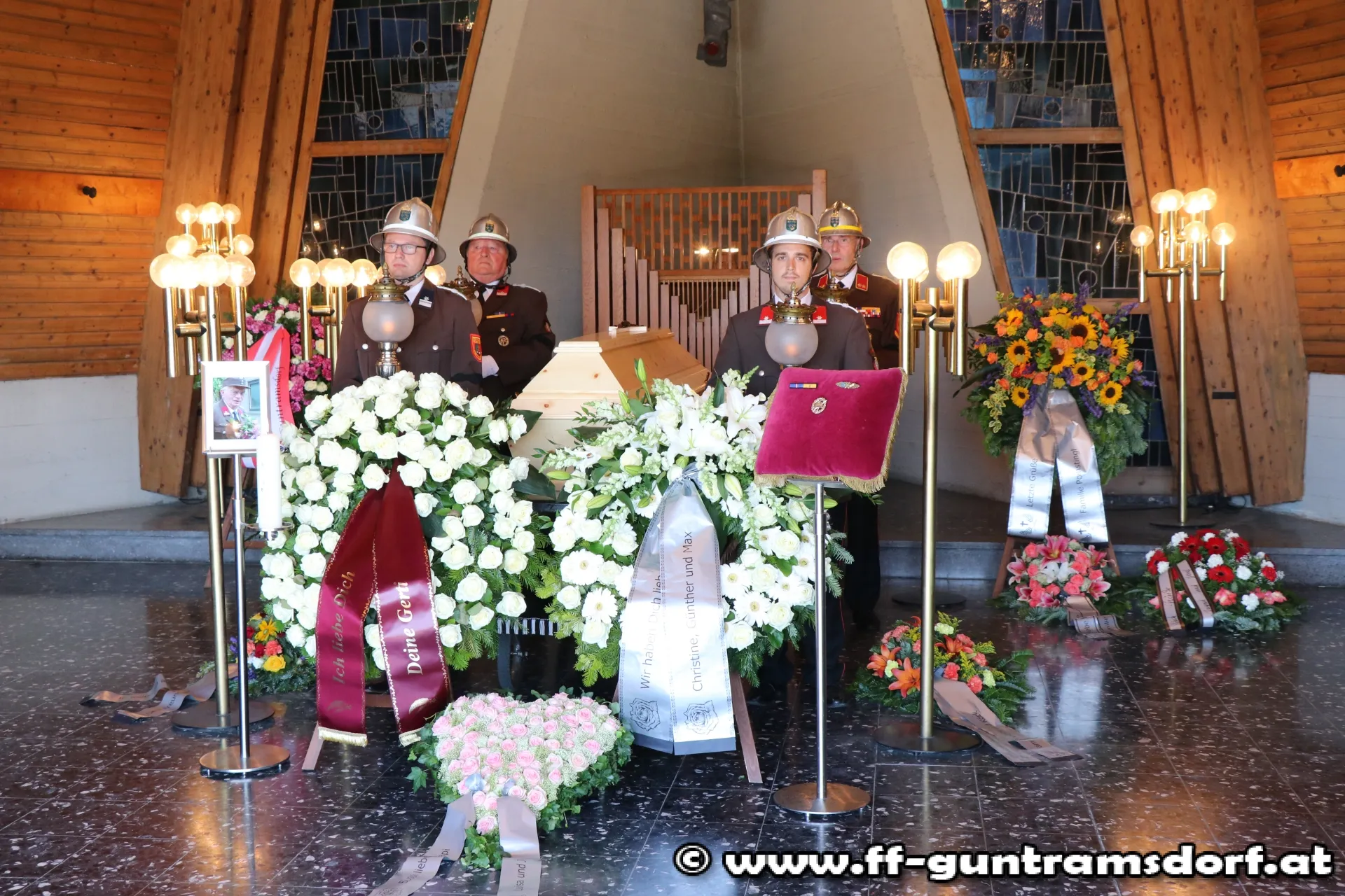 Die Trauerfeier am Samstag, den 1. Juli wurde zum eindrucksvollen Beweis von Feuerwehrkameradschaft: Nicht nur alle Guntramsdorfer Bewerbsteilnehmer, die noch in den frühen Morgenstunden beim Landesfeuerwehrleistungsbewerb in St.Pölten teilgenommen hatten, sondern auch die Einsatzmannschaft, die bei einem Brandeinsatz die FF Gumpoldskirchen unterstützt hatte, waren direkt vom Brandeinsatz zum Begräbnis gekommen. Insgesamt nahmen 76 Kameraden am Friedhof in Guntramsdorf von Franz Wokacek Abschied.
