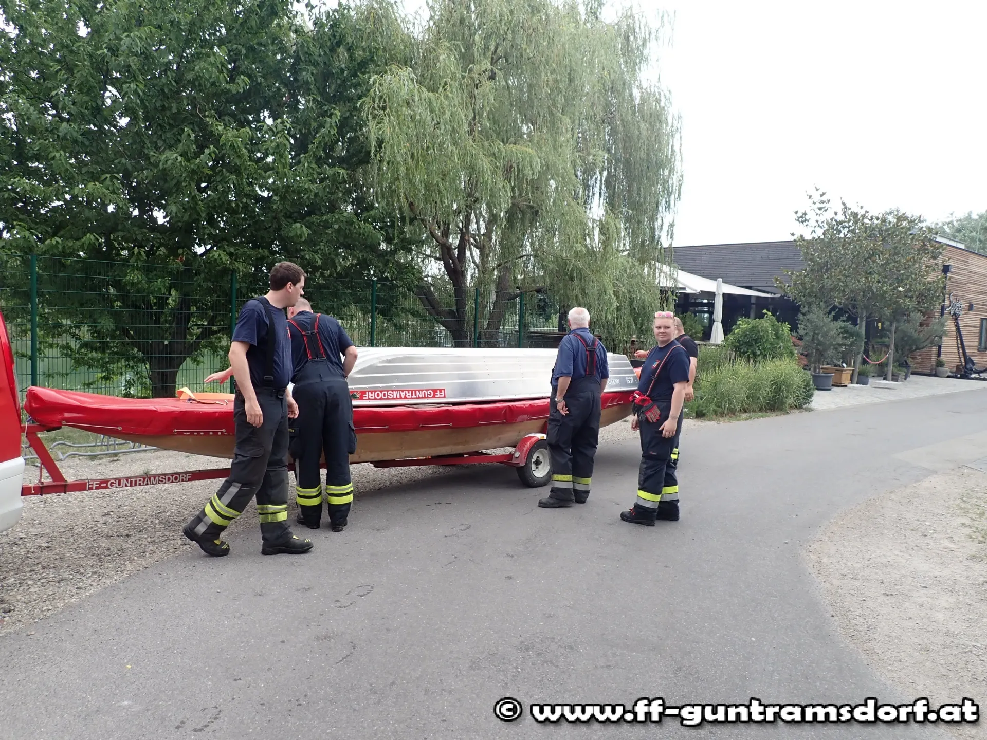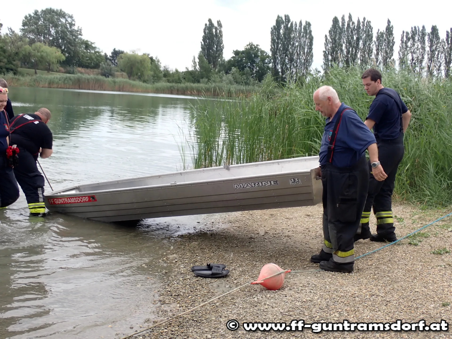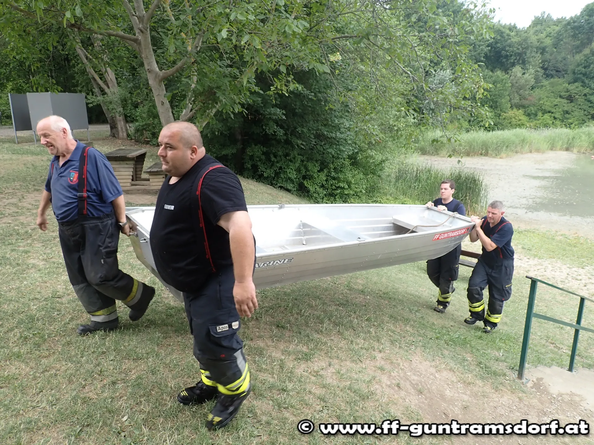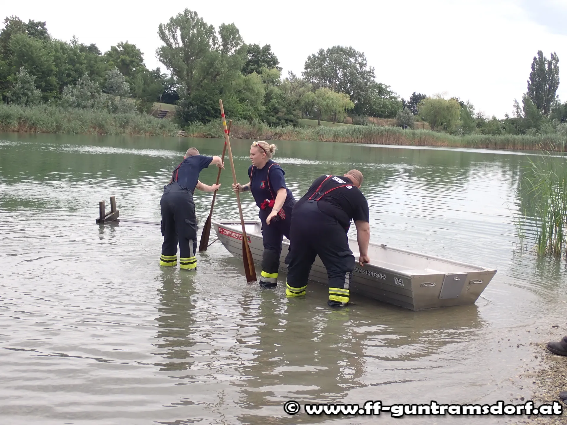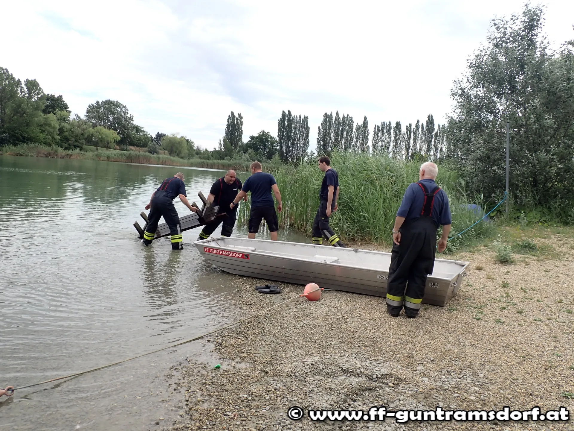 Die Teichaufsicht verständigte das Gemeindeamt davon, dass Unbekannte offenbar eine Bank in den Teich geschmissen hatten, die nun im Wasser treibt. Da die FF Guntramsdorf über eine Zille und ein leicht und rasch einsetzbares Aluboot verfügt, wurde diese ersucht, die Bank aus dem Teich zu bergen.