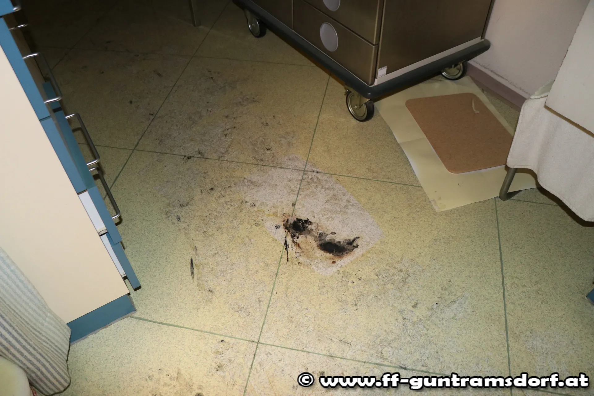 Als die letzten Kräfte von der Einsatzstelle abrücken wollten, informierte uns der Wohnhausbesitzer, dass er das selbe Mittel in einem nahegelegenen Lokal verwendete und sich die Reinigungstücher im Wäschetrockner befinden. Tank 1, Tank 2 und das Kommandofahrzeug fuhren zur Sicherheit mit dem Besitzer die Örtlichkeit an. Zum Glück verlief hier die Kontrolle negativ und die Putztücher wurden zur Sicherheit im Freien deponiert.