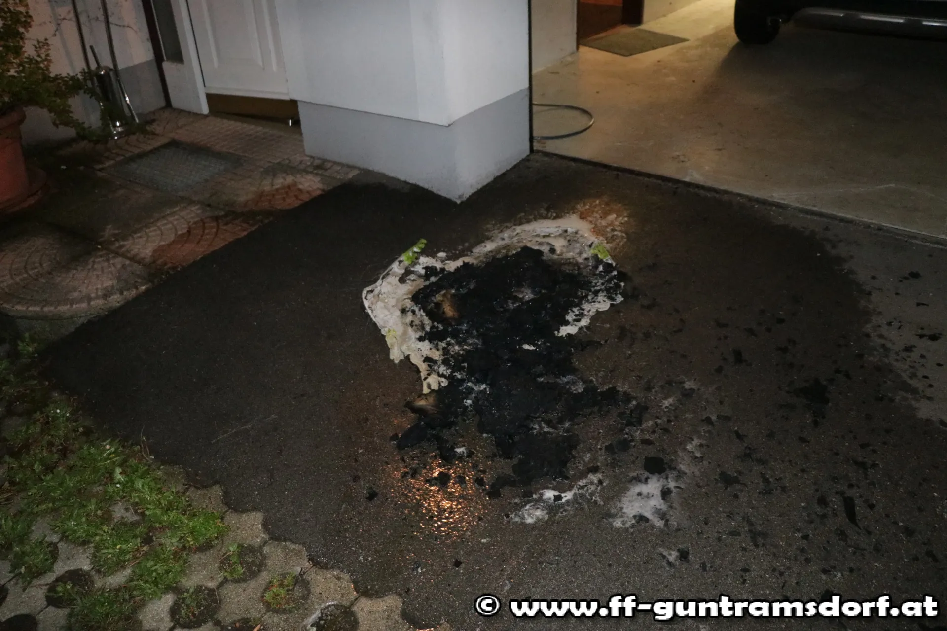 Der Besitzer reagierte Vorbildlich, brachte den brennenden Wäschekorb mit den Reinigungstüchern ins Freie und löschte dort den Brand mit mehreren Handfeuerlöschern ab.