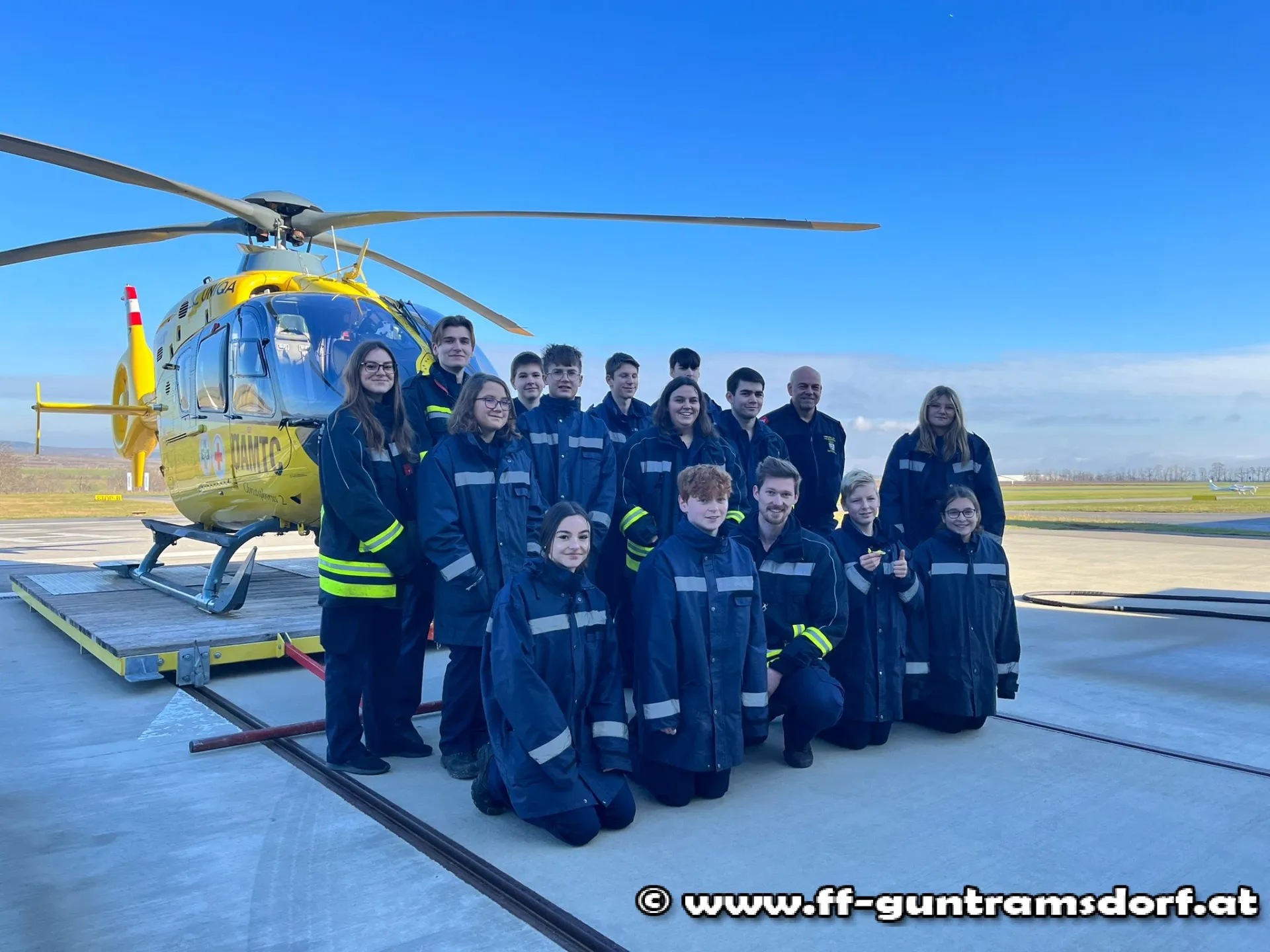 Am Sonntag, 27.11.2022, unternahm die Feuerwehrjugend und das Betreuerteam eine Exkursion zum Stützpunkt des Notarzthubschraubers Christophorus 2 in Krems. Hier durften der anwesenden Besatzung fragen zum Einsatzablauf gestellt und der Hubschrauber aus nächster Nähe betrachtet werden. Während der Verabschiedung wurde die Flugrettung zu einem Einsatz alarmiert, so konnte als krönender Abschluss der Start des Hubschraubers miterlebt werden.
