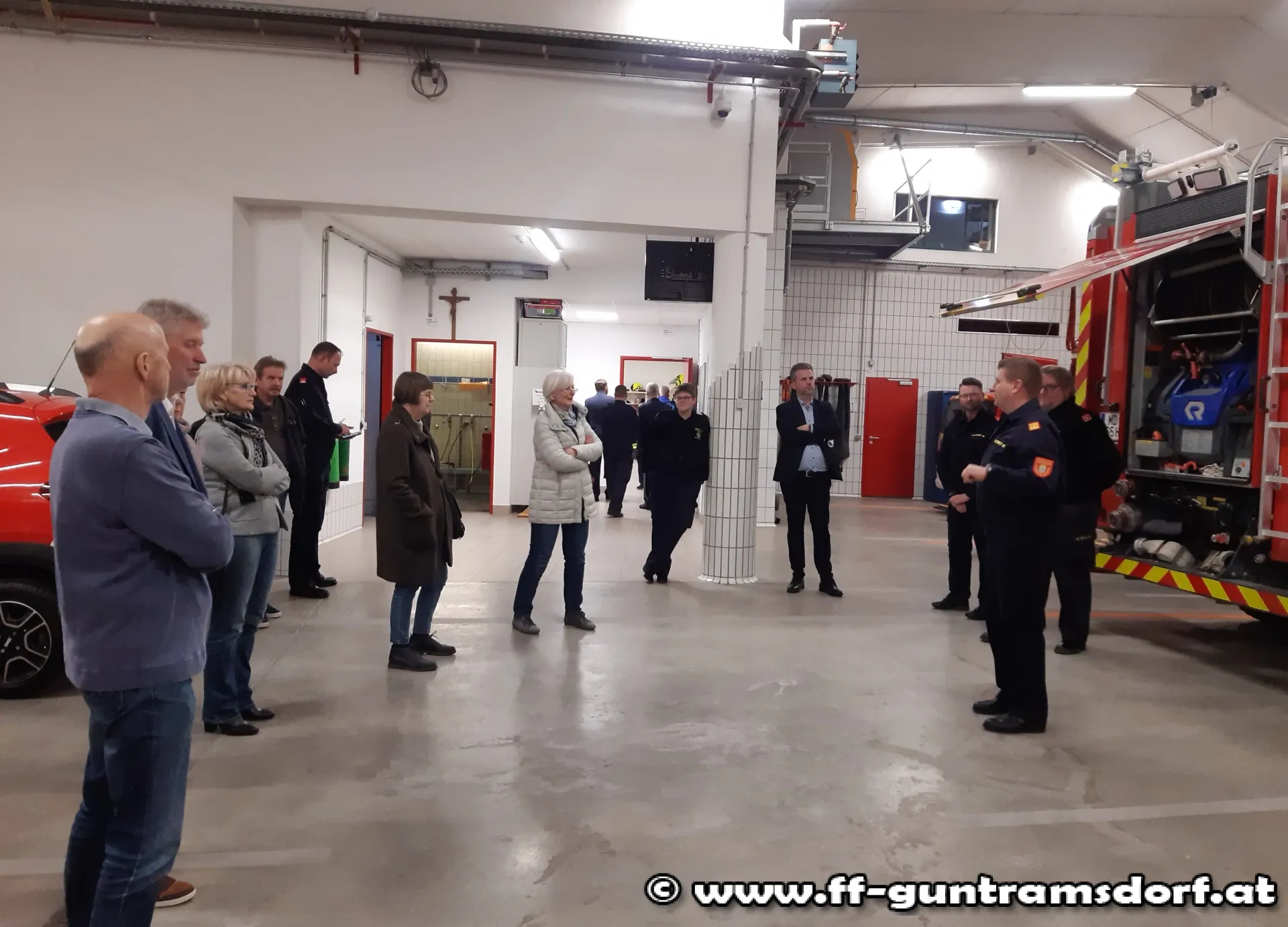 Bei einer Führung durch das Feuerwehrhaus erhielten die Besucher Informationen über die Ausrüstung und Gerätschaften der Feuerwehr, die Abläufe im Einsatzfall sowie die Neuerungen im Feuerwehrhaus, wie z. B. Notstromversorgung bei einem Blackout, Katastrophenlager, Funktion des Einsatzleitraumes, etc.