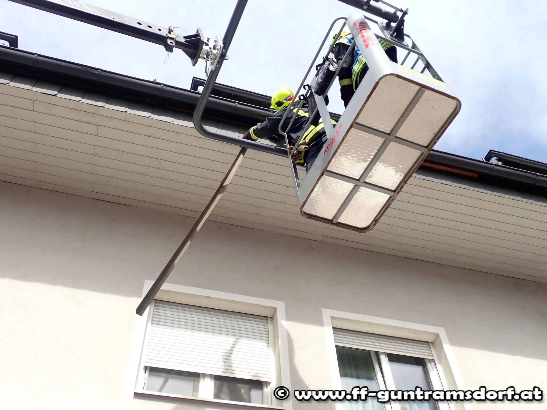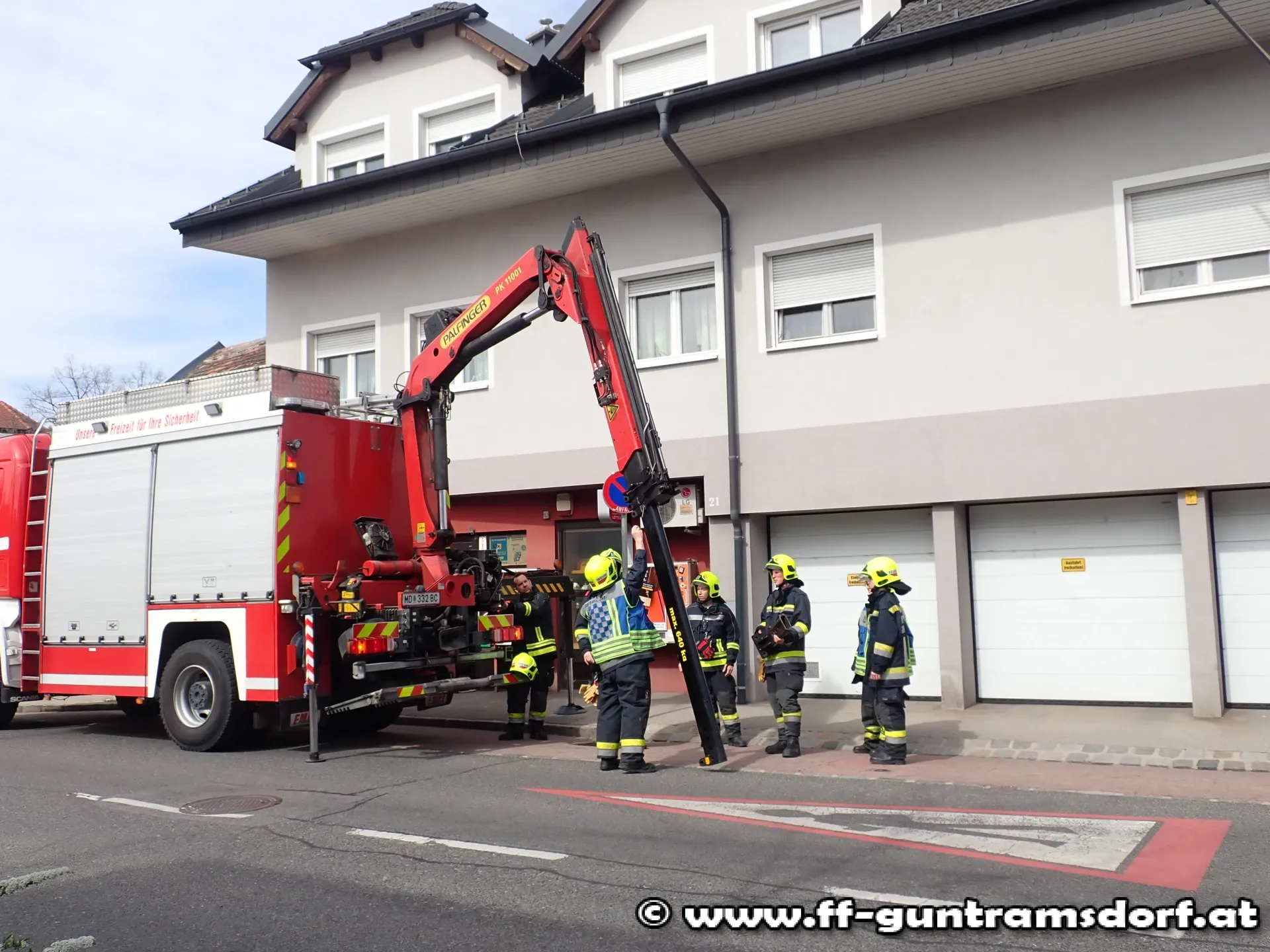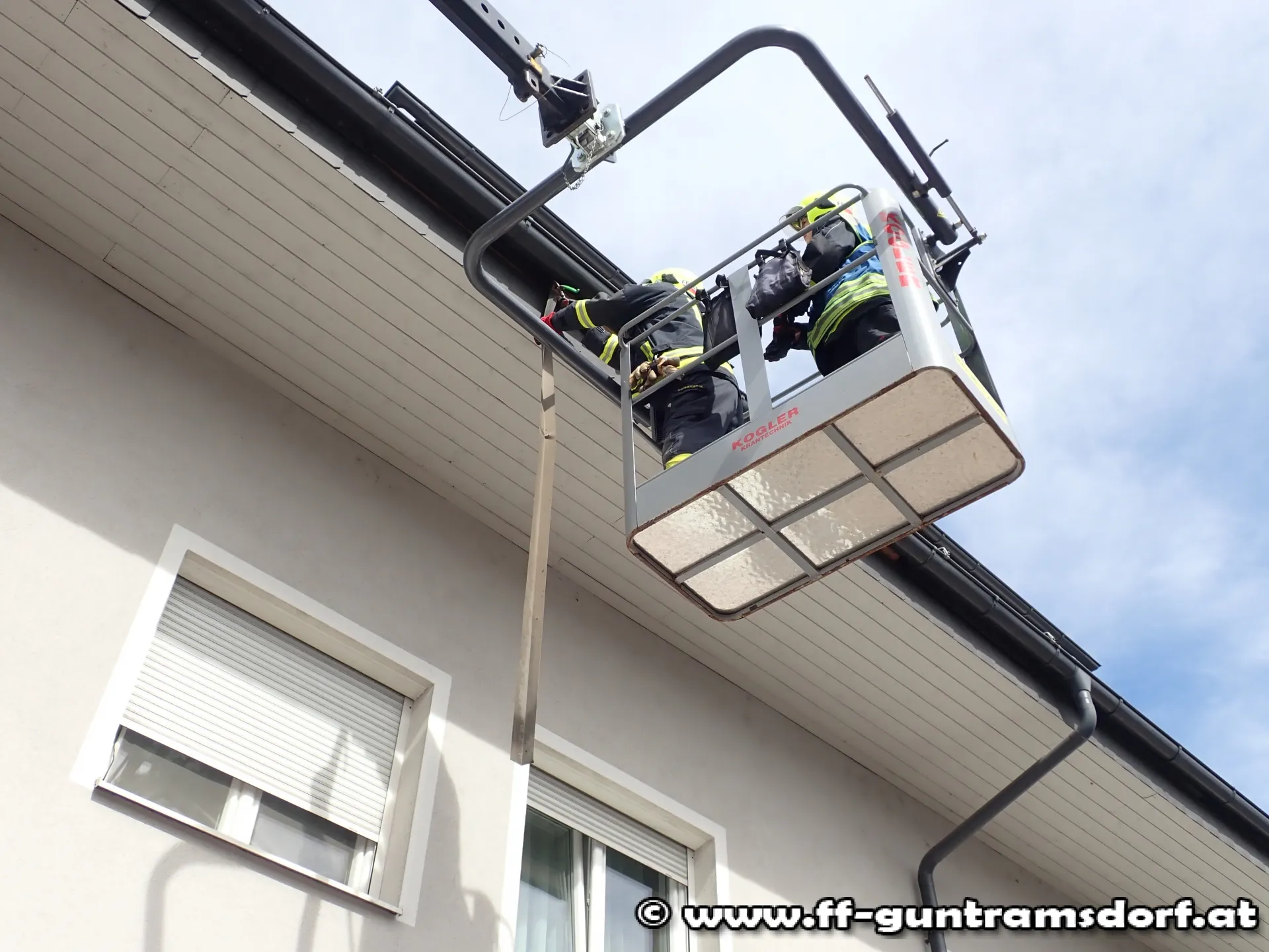 Bei einem Haus in der Hauptstraße drohte ein Blechteil, das vermutlich vom starken Wind losgerissen worden war, auf den unmittelbar darunter vorbeiführenden Gehsteig abzustürzen. Um die drohende Gefahr für Passanten zu beseitigen, wurde kurz vor Mittag die FF Guntramsdorf alarmiert.