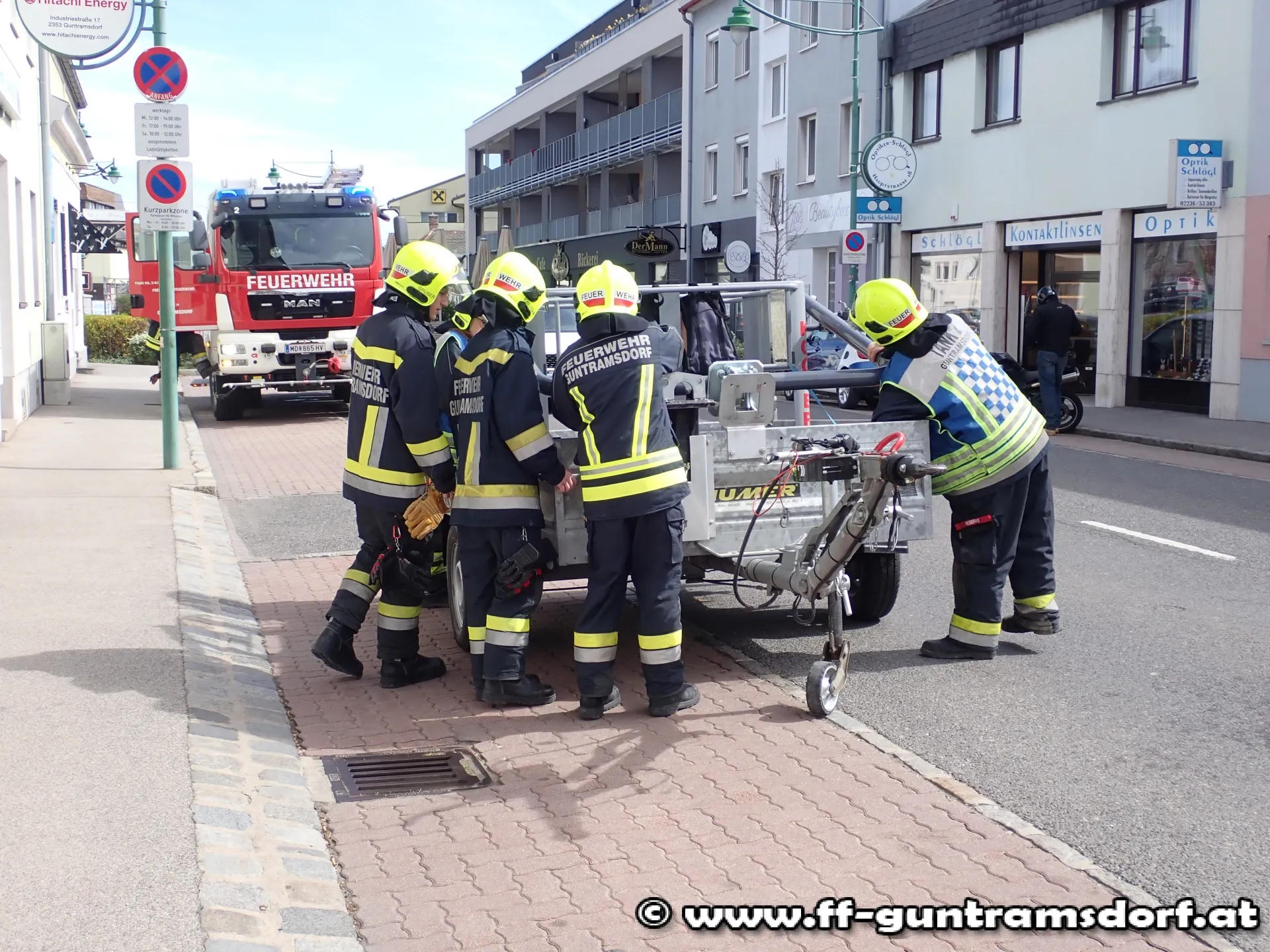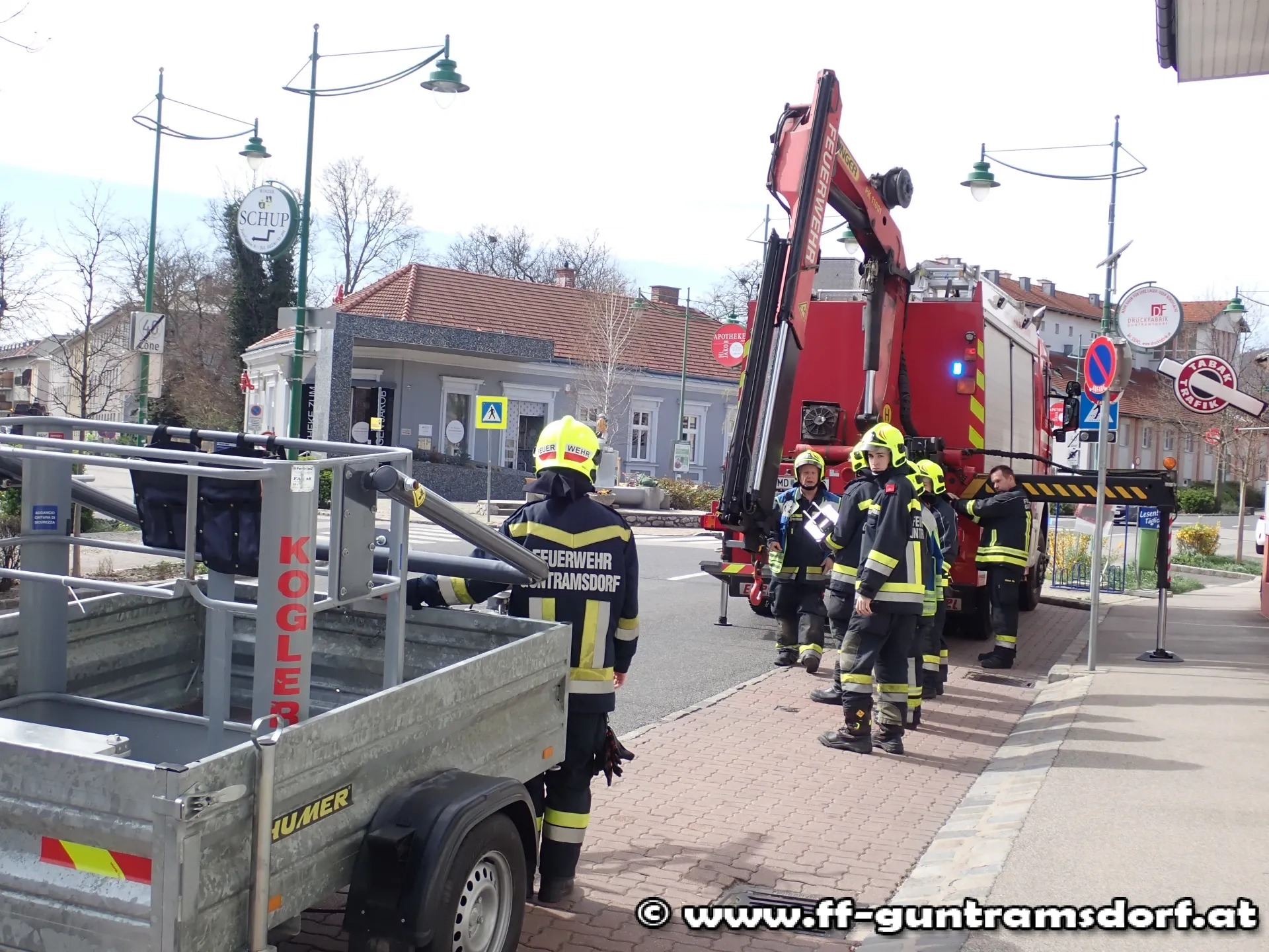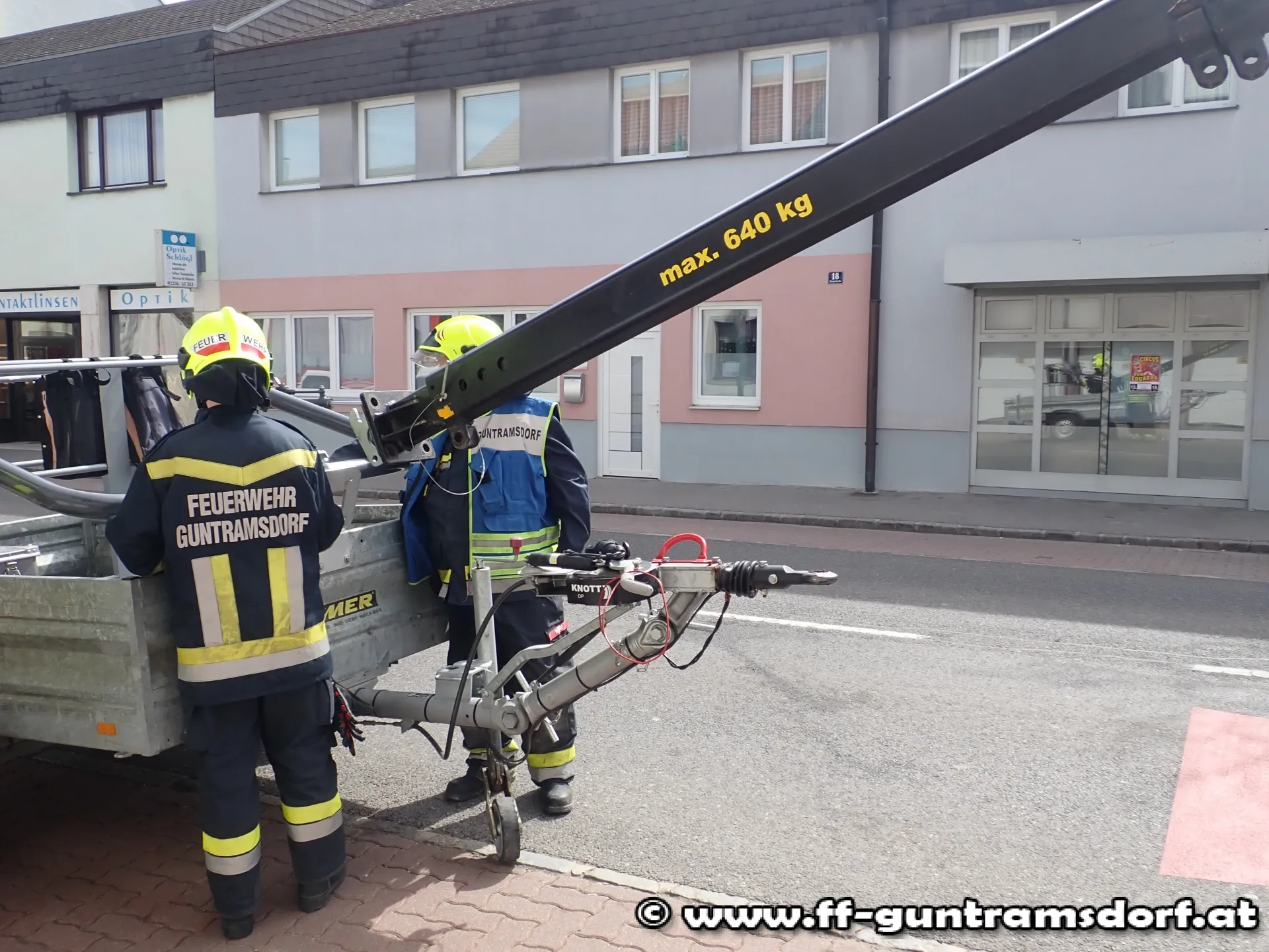 Bei einem Haus in der Hauptstraße drohte ein Blechteil, das vermutlich vom starken Wind losgerissen worden war, auf den unmittelbar darunter vorbeiführenden Gehsteig abzustürzen. Um die drohende Gefahr für Passanten zu beseitigen, wurde kurz vor Mittag die FF Guntramsdorf alarmiert.