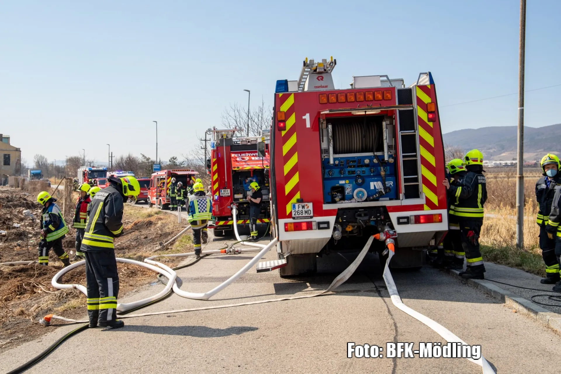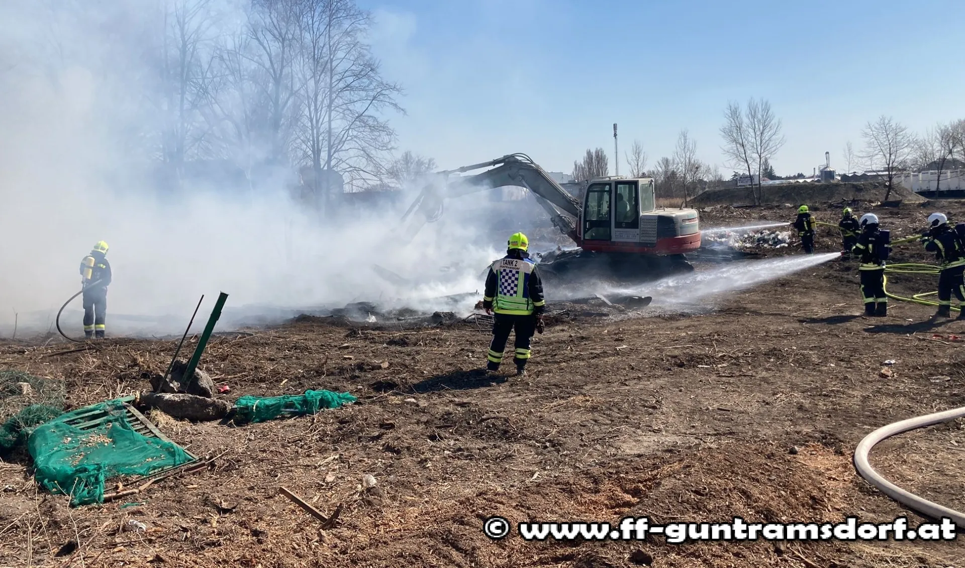 Um 11:43 Uhr wurde die FF Guntramsdorf mit Pager und Sirene zu einem Scheunen- oder Schuppenbrand in der Münchendorferstraße, beim Lagerhaus, alarmiert. Nur zwei Minuten später erfolgte eine neuerliche Alarmierung – wieder mit Pager und Sirene – diesmal allerdings mit der richtigen Einsatzadresse am Kanal, in Gumpoldskirchen (Klingerstraße).