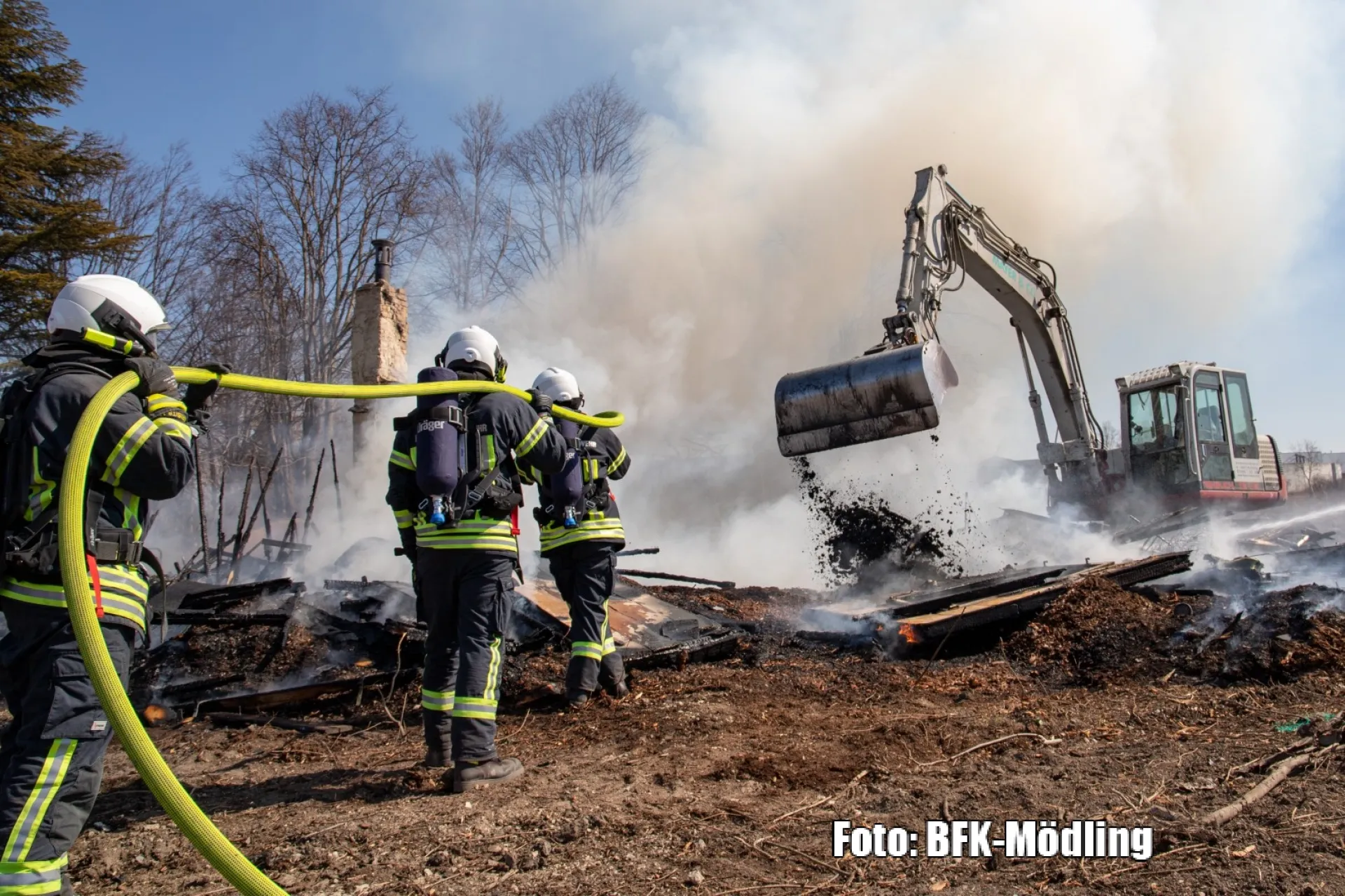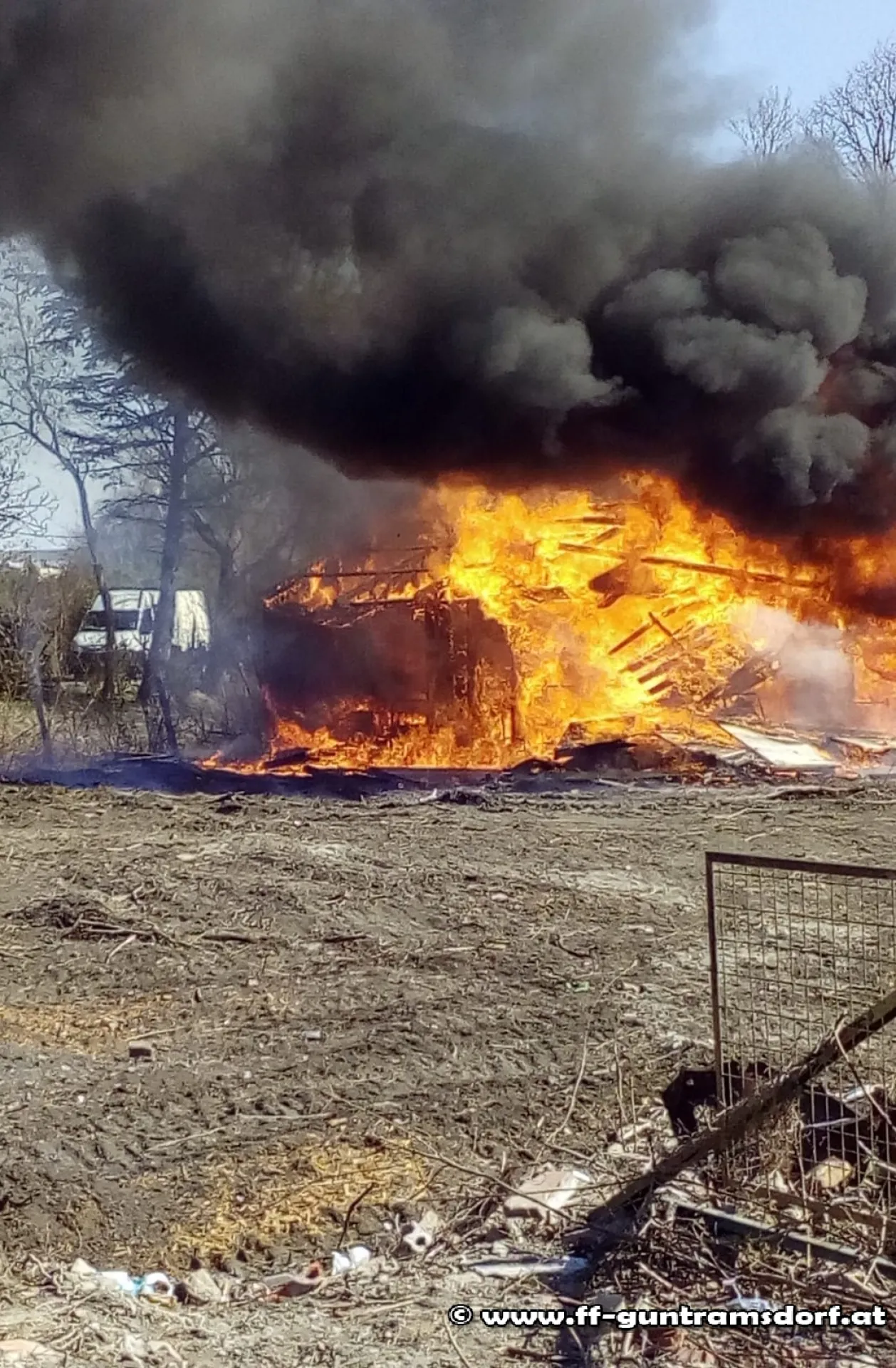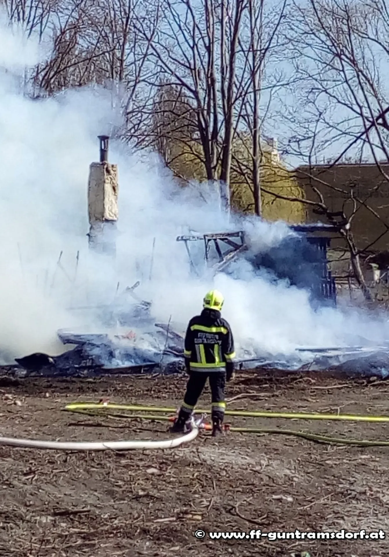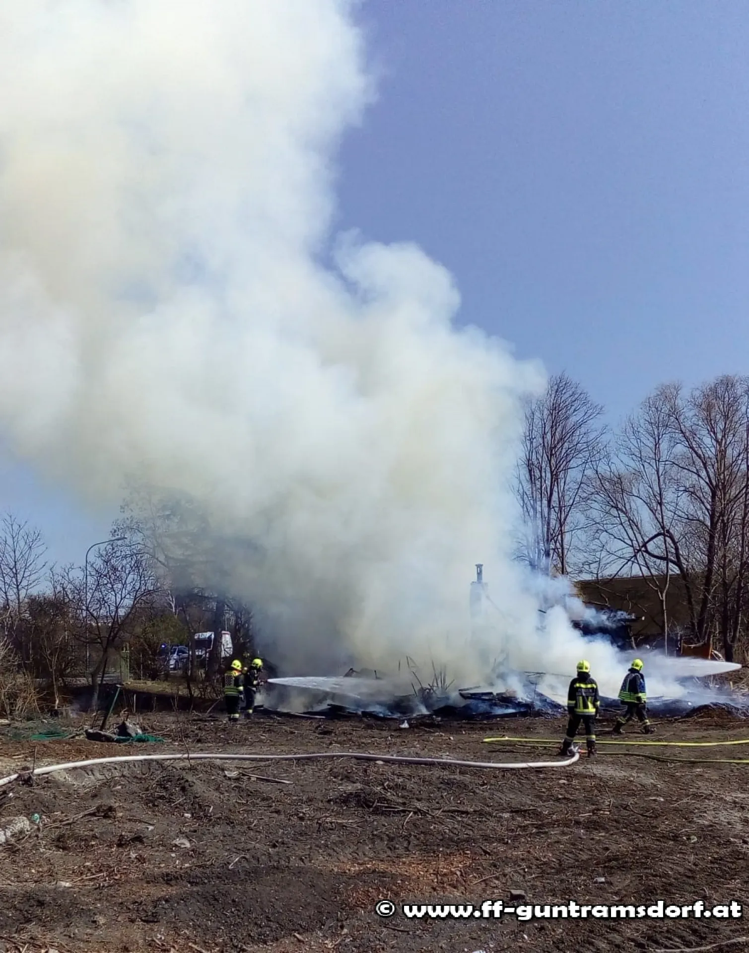 Da durch den unmittelbar daneben vorbeifließenden Wiener Neustädter Kanal die Wasserversorgung sichergestellt war, konnte die Brandbekämpfung rasch mit 4 Löschleitungen vorgenommen werden. Um auch letzte Glutnester löschen zu können, wurden die Reste der bereits eingestürzten Hütte mit einem Bagger auseinandergezogen.