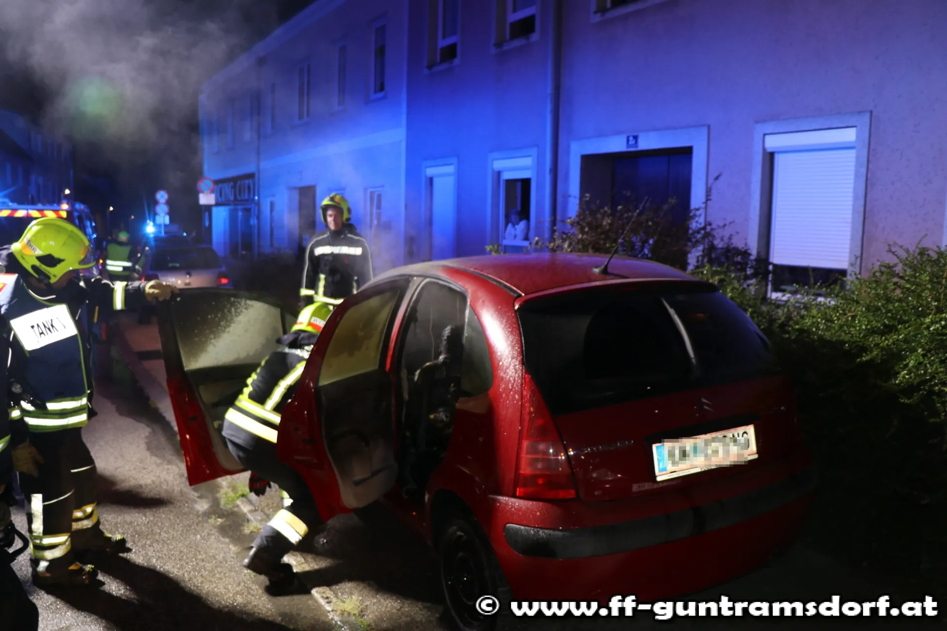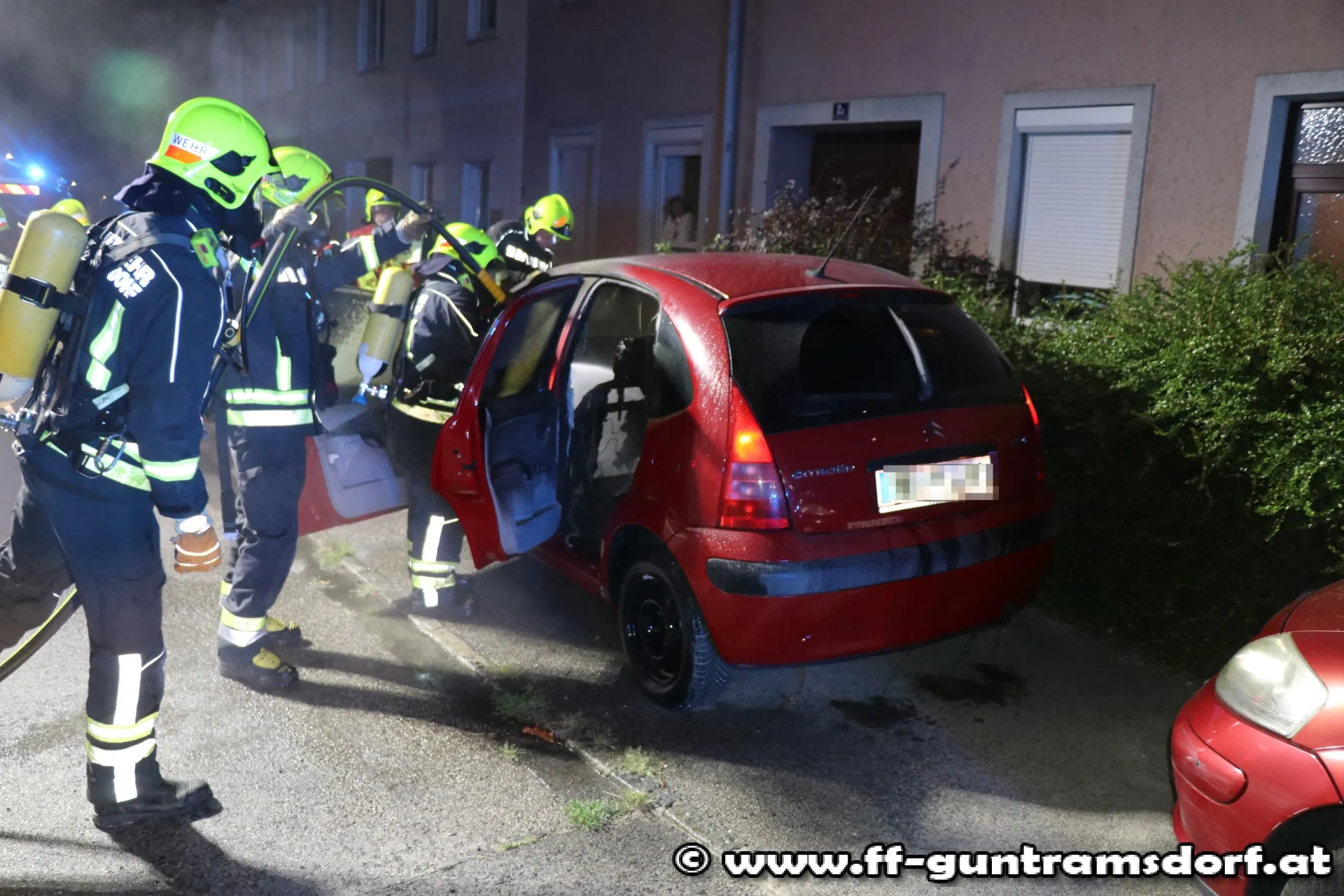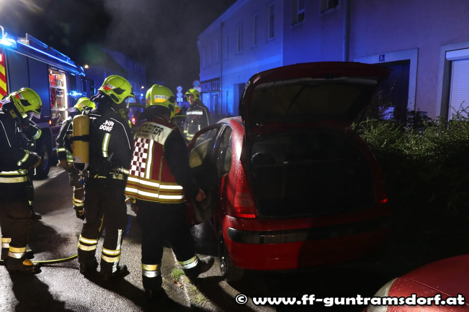 Um (fast) Punkt Mitternacht (00:00 Uhr) wurde die FF Guntramsdorf mit Sirene und Pager zu einem Fahrzeugbrand in der Mödlingerstraße alarmiert.