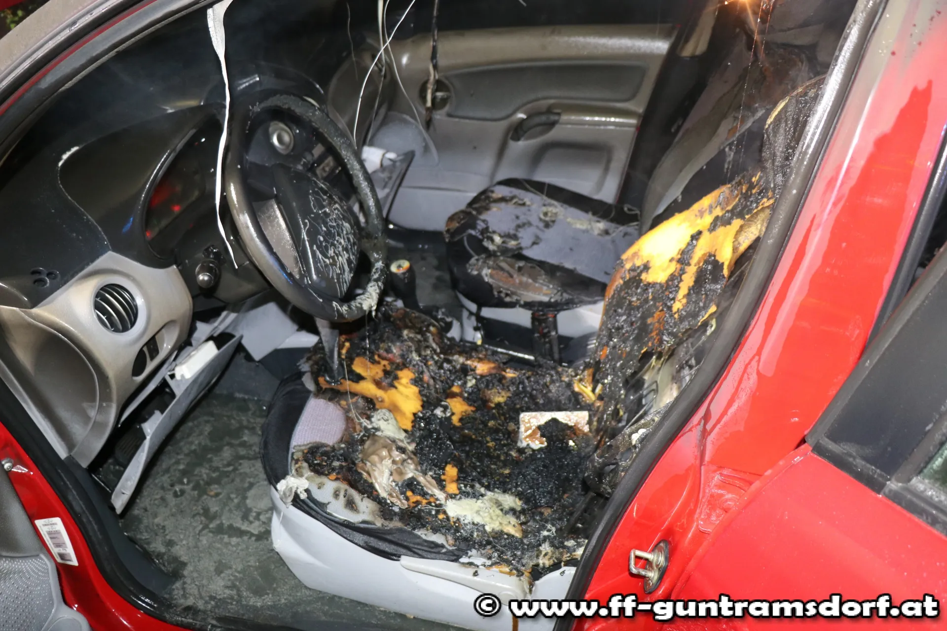 Obwohl durch den raschen Einsatz von Polizei und Feuerwehr das komplette Ausbrennen des Fahrzeuges verhindert werden konnte, erlitt der Wagen beträchtlichen Schaden.