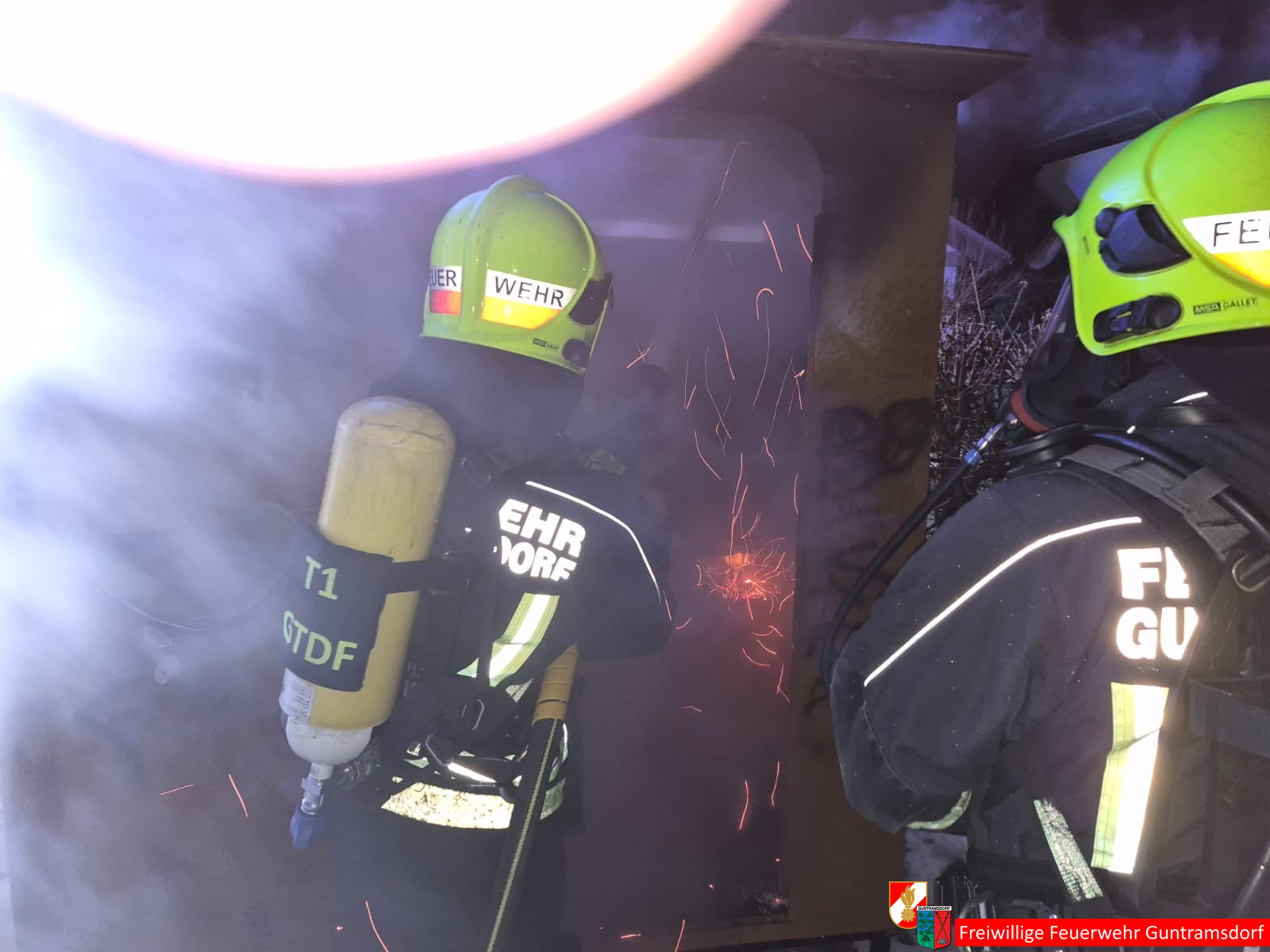 Vor Ort bestätigte sich diese Meldung und die Feuerwehr Guntramsdorf führte Nachlöscharbeiten durch. Das „Ökoklo“, gefüllt mit Sägespänen, musste komplett ausgeräumt werden, um die letzten Glutnester zu bekämpfen.