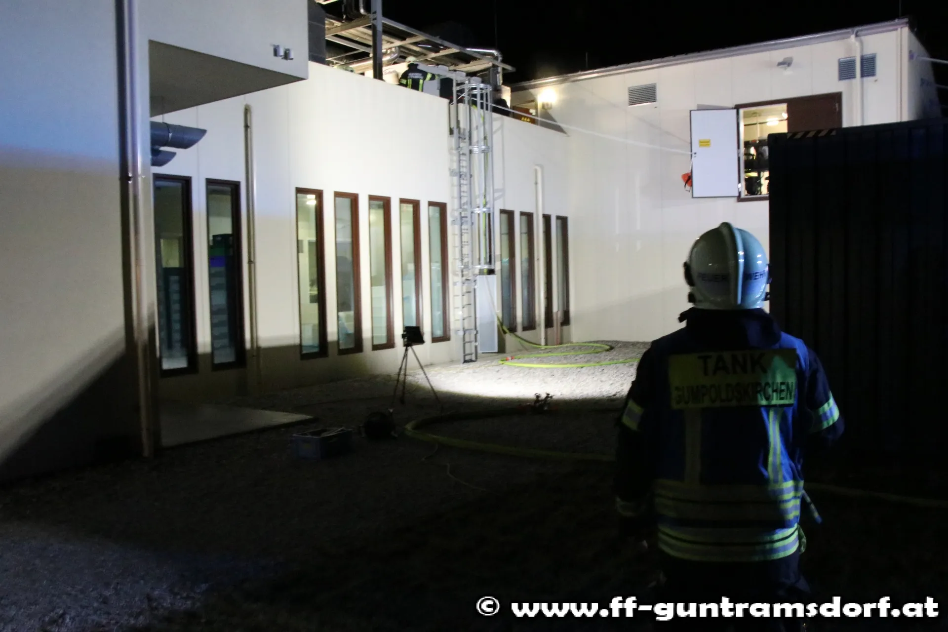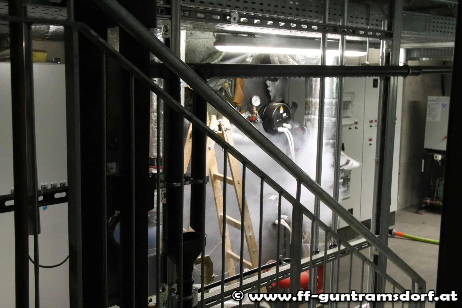 Noch bevor die Sirenen verstummten, waren die ersten beiden Fahrzeuge ausgerückt. Die zuständige Feuerwehr Gumpoldskirchen traf als Erstes am Firmengelände ein und führte die Erkundung durch. Brandgeruch und eine Verrauchung wurden festgestellt. Nachdem ein Atemschutztrupp die Ursache ausmachte – ein Heizkessel war defekt und die Dämmung war verschmort – bestand keine Gefahr mehr. Nach der Belüftung des Gebäudes und der Abschaltung des Heizkessels, konnten alle Einsatzkräfte einrücken.