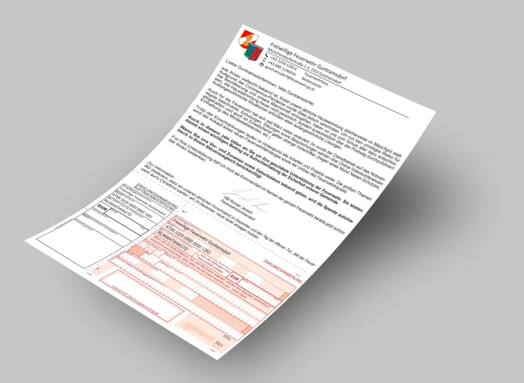 Wie uns mitgeteilt wurde, sind die Spendenzahlscheine der Feuerwehr, die der letzten Ausgabe der „Auslese“ beigelegt waren, für die Überweisung am Überweisungsterminal der Raiffeisen Regionalbank Mödling bedauerlicherweise NICHT geeignet! Falls sie keine andere Möglichkeit haben, uns eine Spende zu überweisen: – oder – wenden Sie sich an die MitarbeiterInnen der Bank. Auch wenn uns derzeit […]