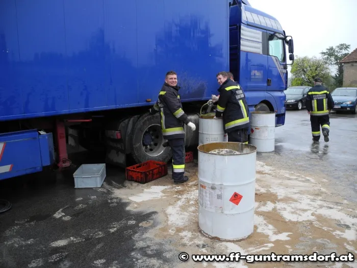Um 11:52 Uhr wurde die FF Guntramsdorf zu einem Dieselaustritt in die Bahnstraße alarmiert. Beim Eintreffen der Feuerwehr stellte sich heraus, dass sich ein Sattelschlepperfahrzeug in einem Betrieb bei einem Fahrmanöver den Dieseltank beschädigte. Durch ein fast faustgroßes Loch trat nun ungehindert Treibstoff aus. Dank der schnellen Reaktion einiger Mitarbeiter der Fa. Sieber, welche noch […]