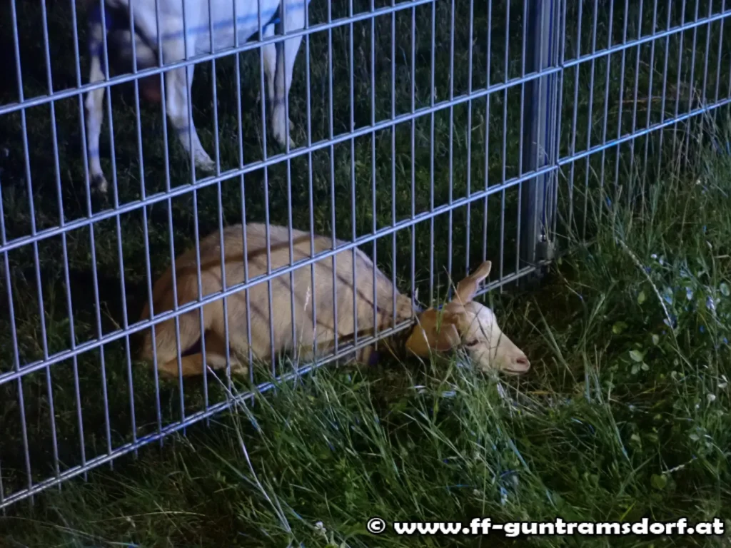 Wie bereits am Vortag, wurde die Feuerwehr Guntramsdorf um 23 Uhr zu einer Tierrettung „Ziege steckt unter Zaun fest“ in die Industriestraße alarmiert. Nicht unweit von der Einsatzstelle von Gestern, steckte dieselbe Ziege wieder unter einem Zaunelement mit dem Kopf fest. Wie es scheint, dürfte das Gras außerhalb des Geheges dem Jungtier besonders gut schmecken. […]