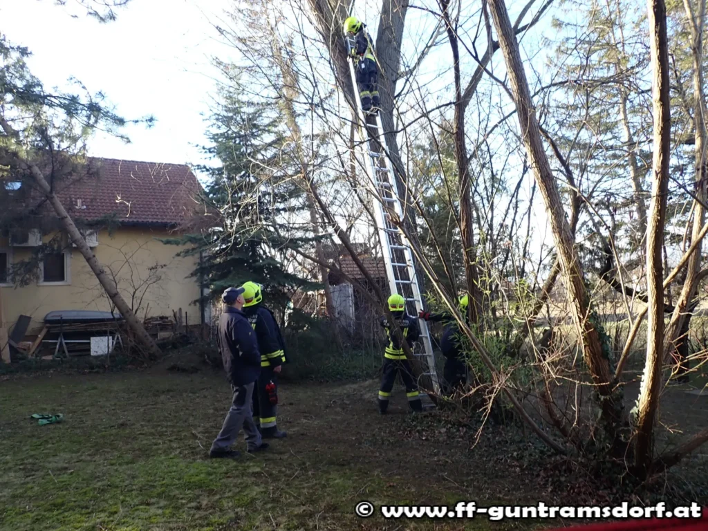 Kurz vor 9 Uhr wurde die Feuerwehr vom Eigentümer eines Einfamilienhauses in der Neudorferstraße davon verständigt, dass der Sturm eine Fichte umgerissen hatte und diese auf dem Haus des Nachbars zu liegen gekommen war. Um den umgefallenen Baum möglichst ohne Schaden anzurichten zu entfernen, wurde auf einem benachbarten Baum eine Umlenkrolle angebracht, um mit einer […]