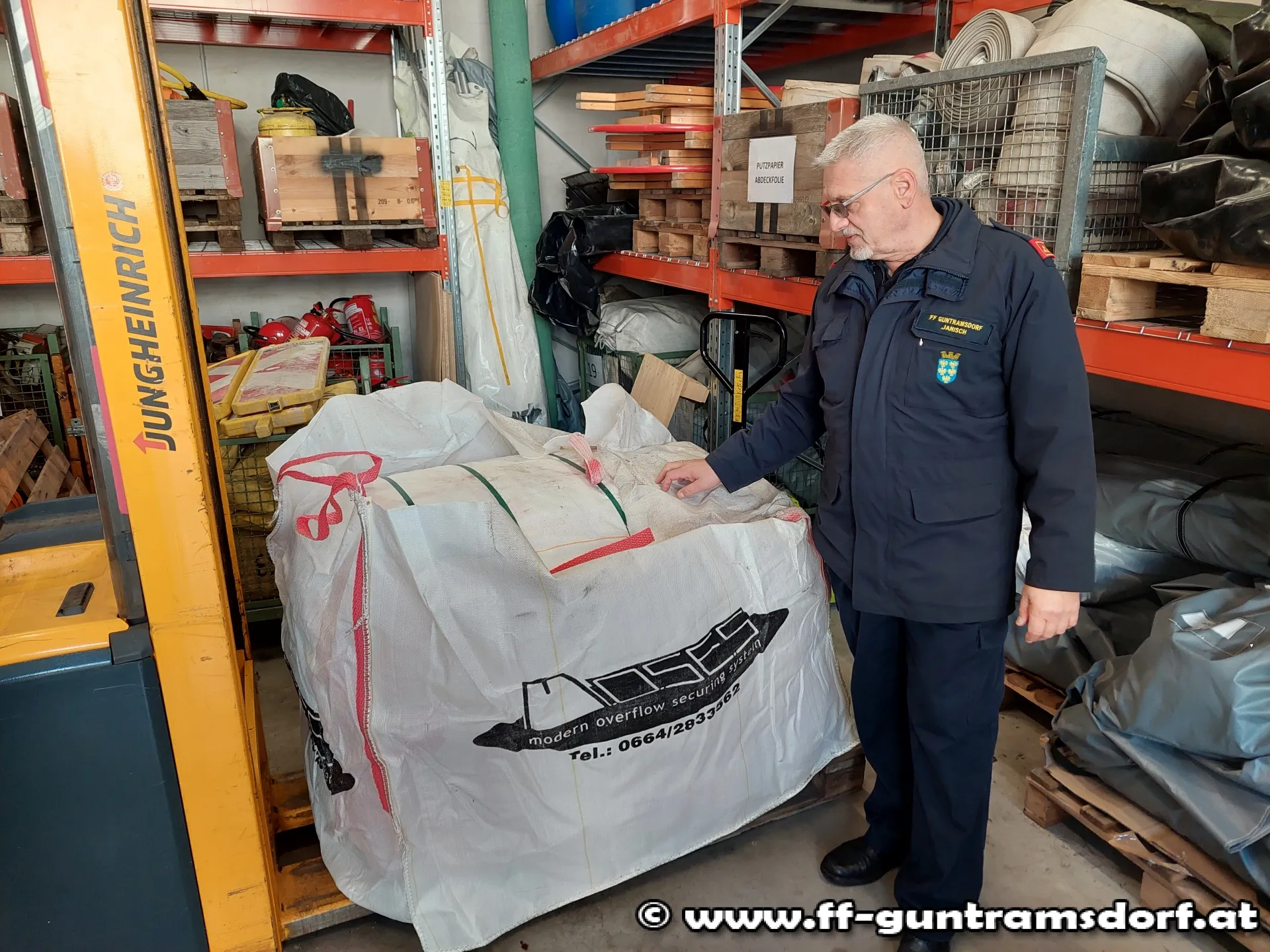 An dieser Stelle gebührt dem Geschäftsführer der Fa. Streit, Herrn Karl Simandl, großer Dank! Er ermöglichte nicht nur die Besichtigung, sondern erlaubt der Feuerwehr – wie schon beim jüngsten Hochwasserereignis – unbürokratisch und rasch auf Gerät und Material zuzugreifen.
