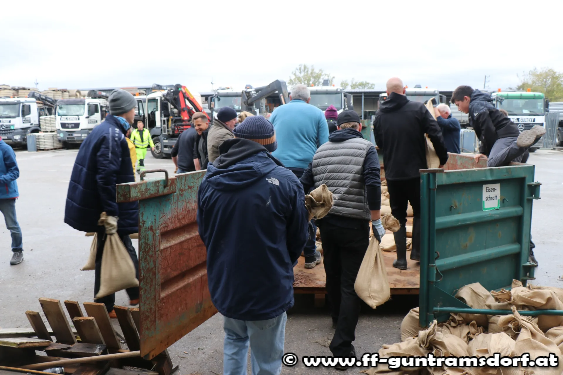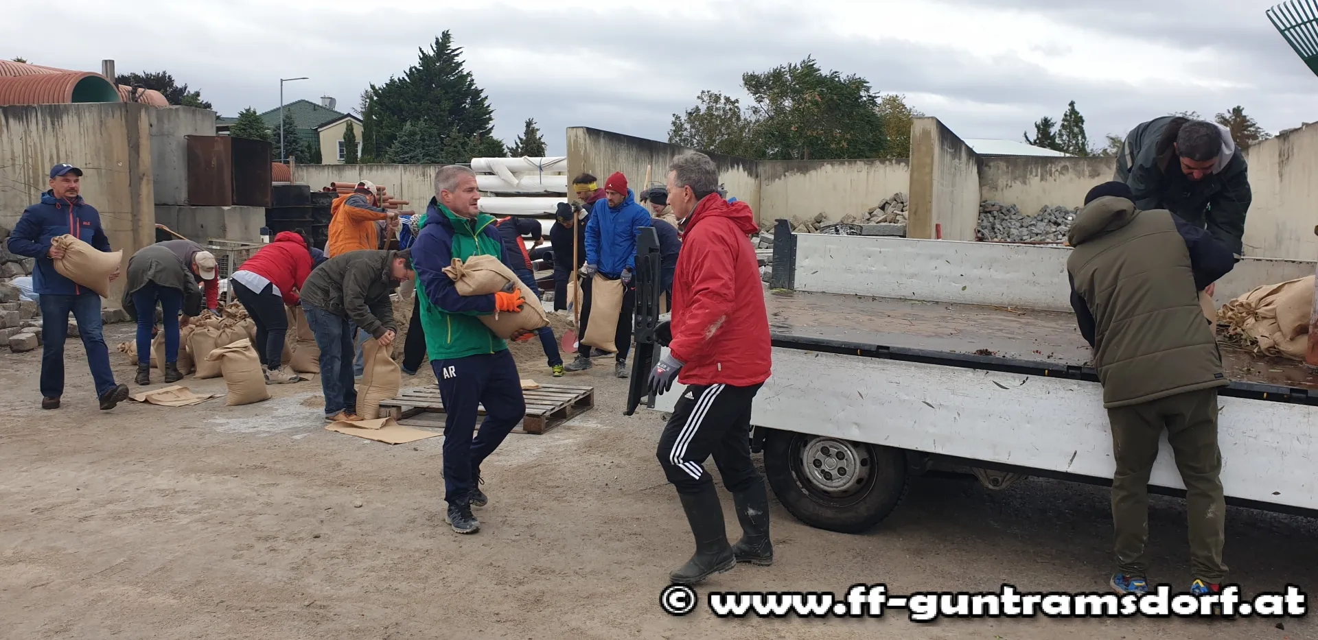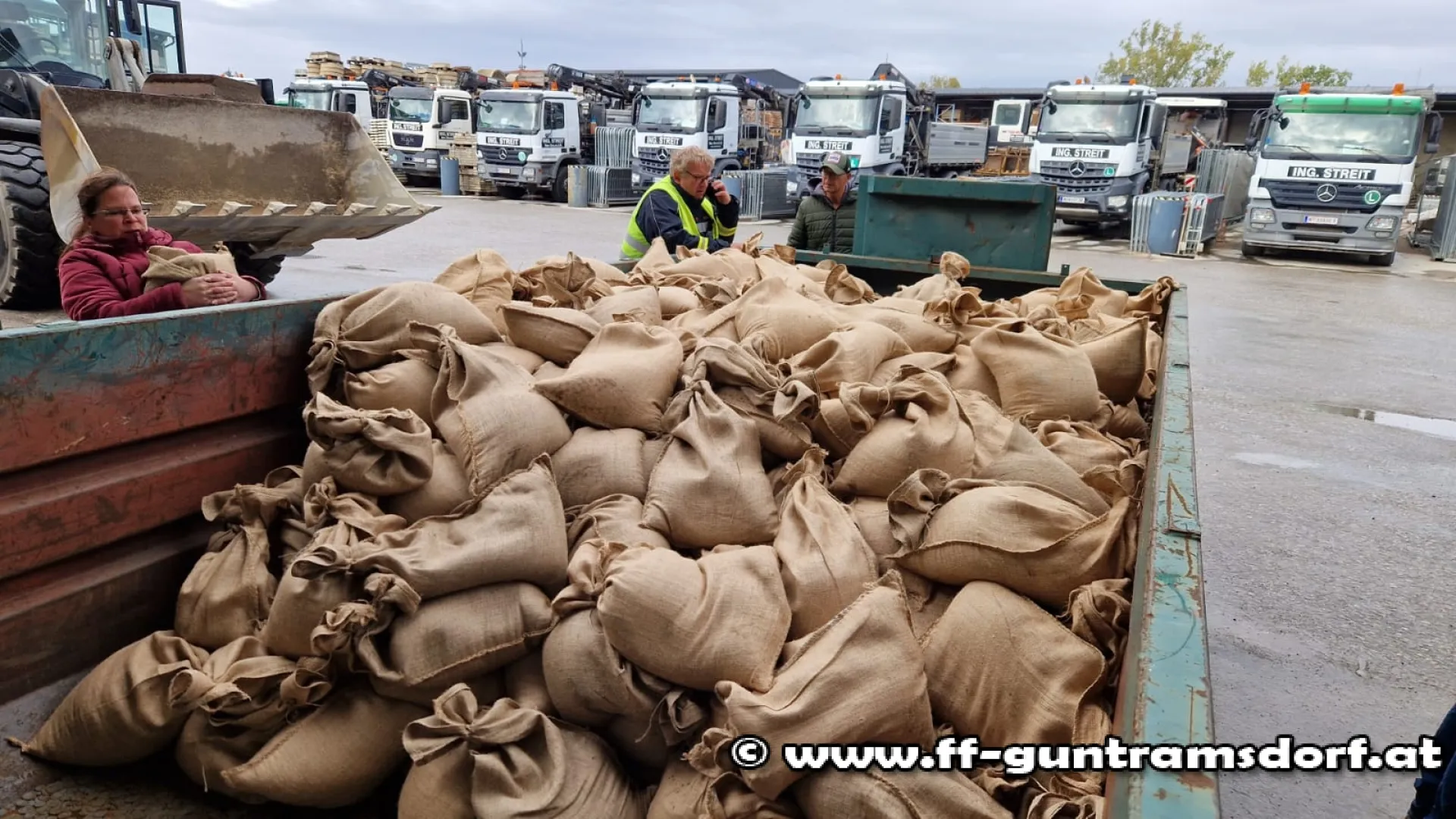 Ein großer Dank gilt auch den vielen ortsansässigen Firmen, die mit Pritschen, Anhängern, Radladern und anderem schweren Gerät zur Verfügung standen, um den Ort bestmöglich vor einem Hochwasser zu schützen!